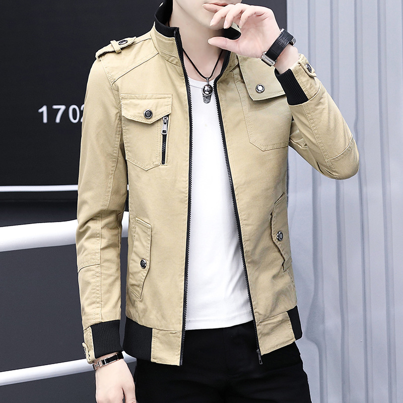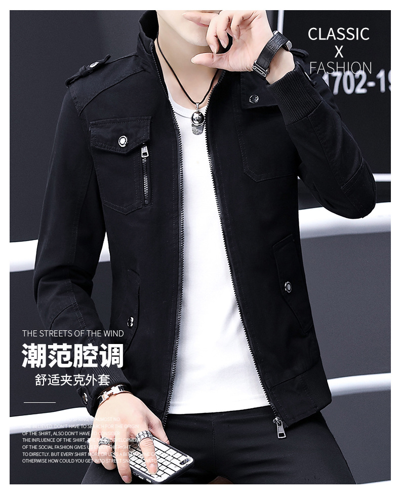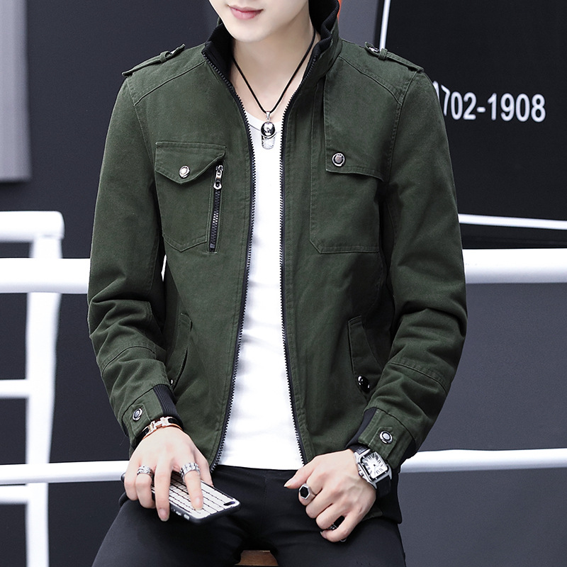 Spring and autumn new men’s casual jackets cotton water wash youth stand-up collar jacket Tide men’s frock coat