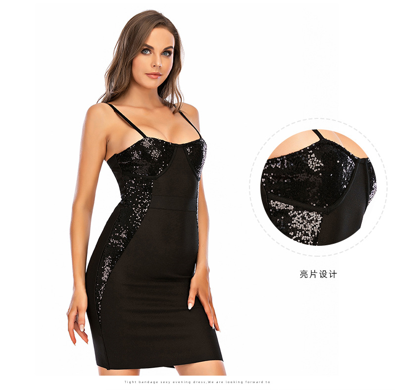 black solid color evening dress sequined sexy suspender tube top short skirt one piece replacement dress bandage skirt order
