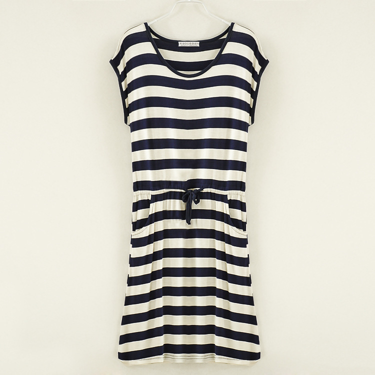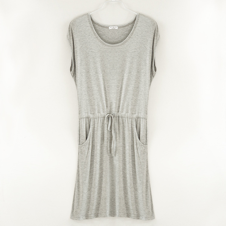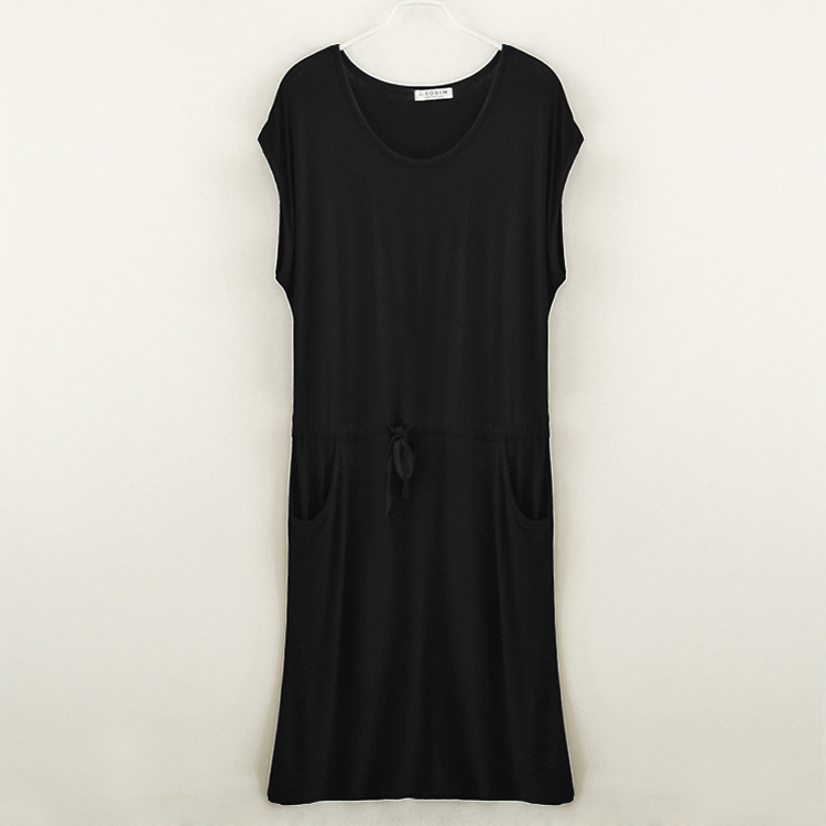 Clothes jewelry wholesale summer dress, ladies modal drawstring dress pockets large size was thin loose skirt