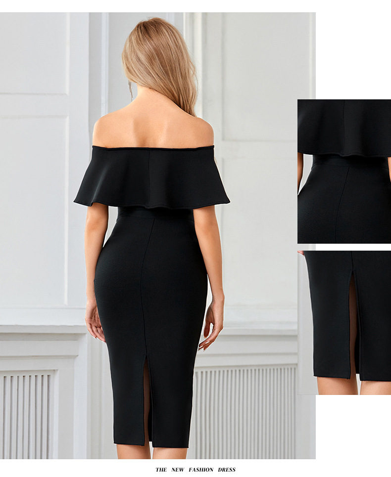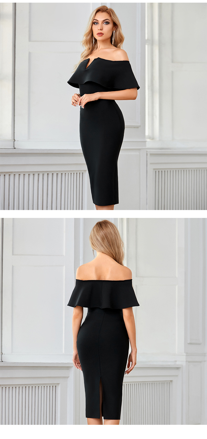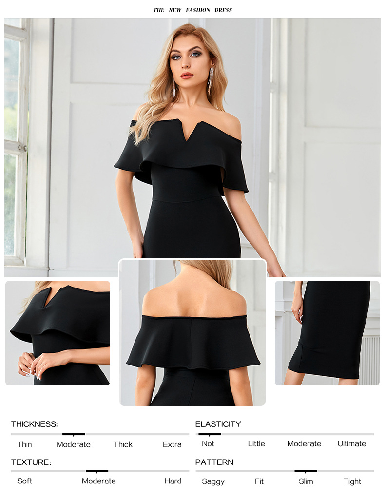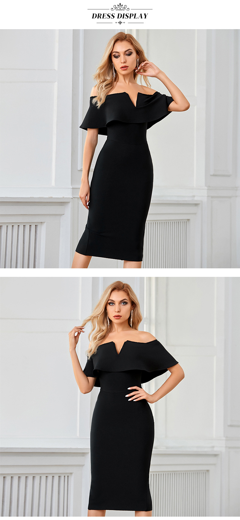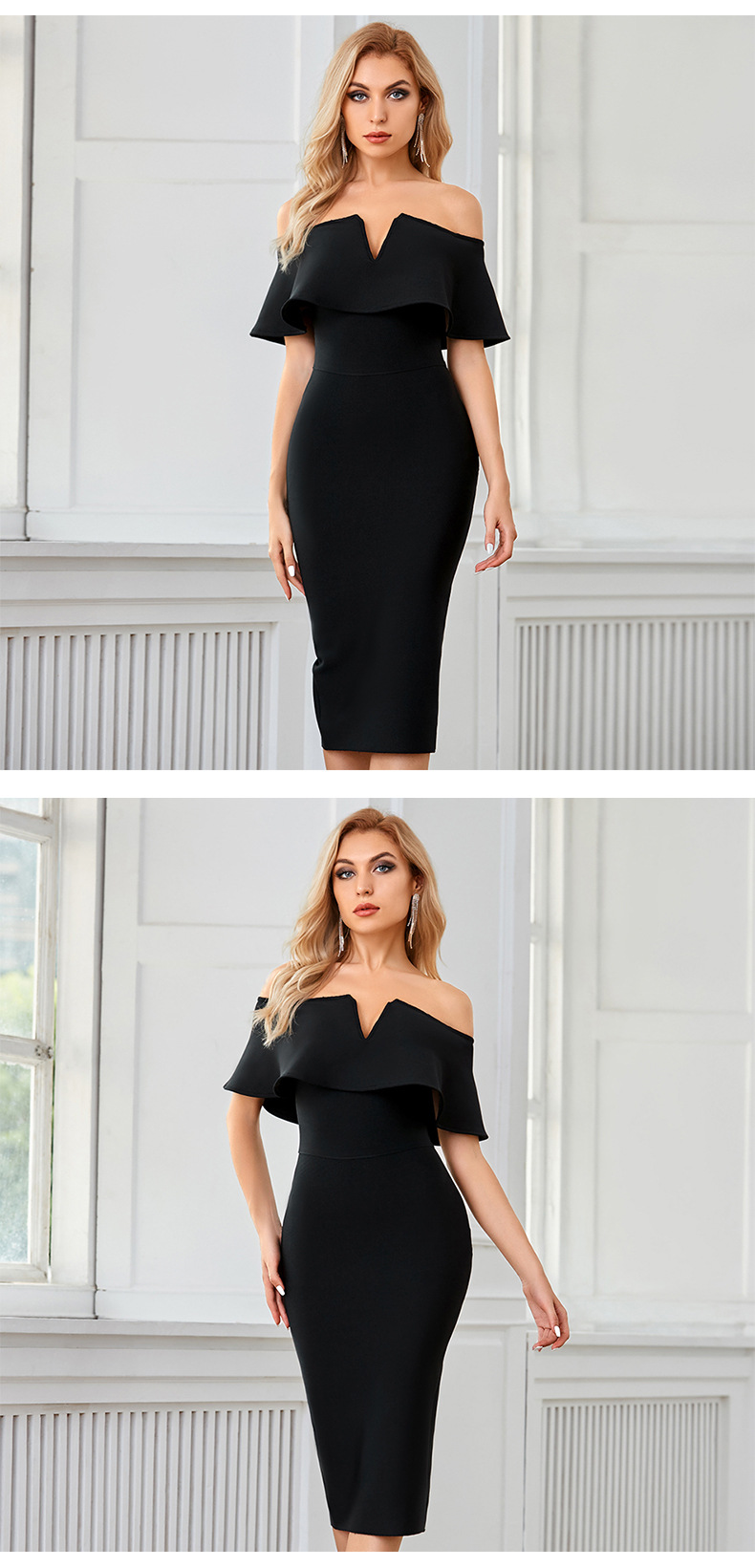 New style small V-neck solid color blue one-shoulder bandage dress elegant annual meeting host evening dress