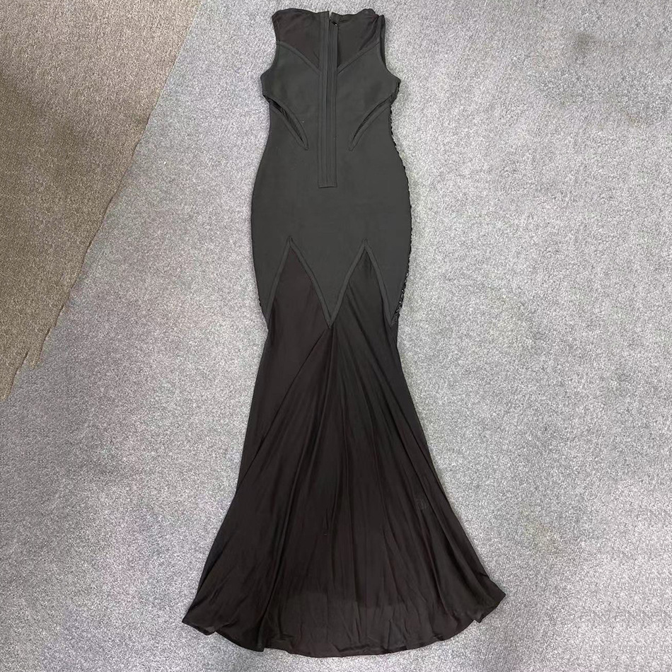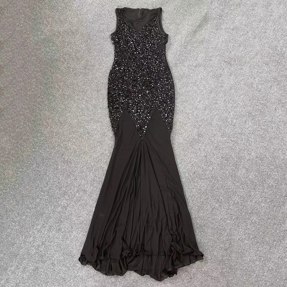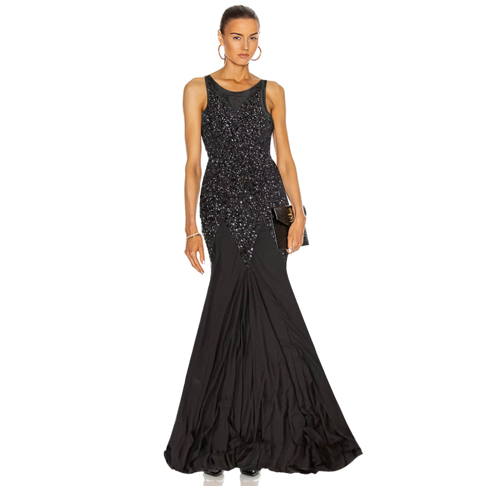 sexy quality dress sequined fishtail V-neck sleeveless bandage long temperament banquet evening dress