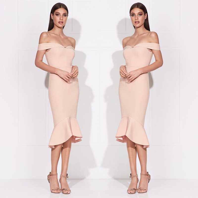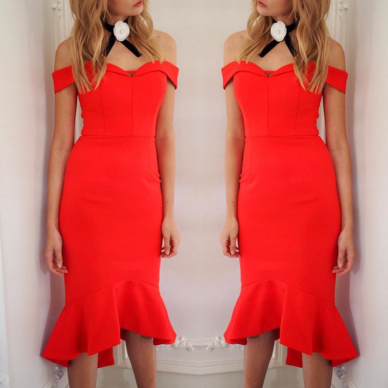 Summer new style women’s sexy tube top one-shoulder fishtail evening dress bandage dress