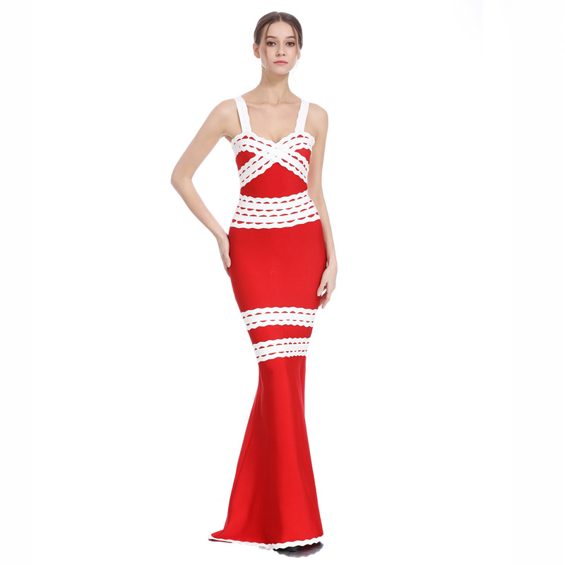 suspender jacquard bandage skirt tight red fishtail skirt annual meeting evening dress temperament mopping dress