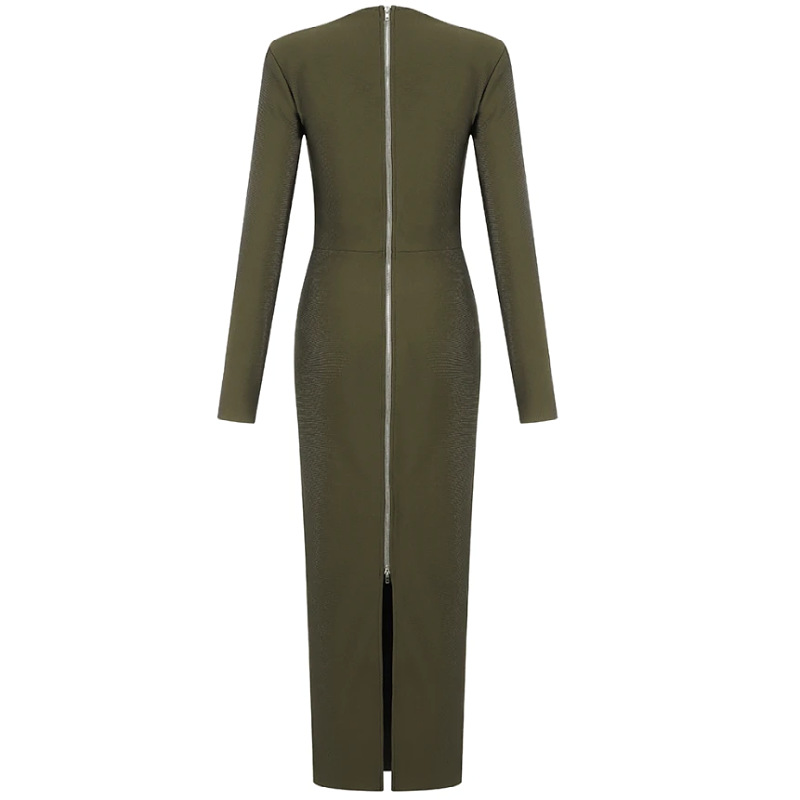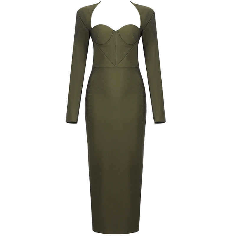 women’s autumn and winter new solid color square collar French bandage skirt low-cut long banquet evening dress