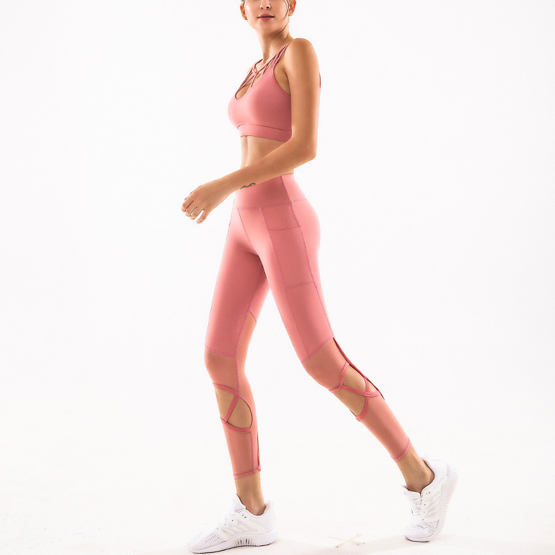 Net red yoga clothing female sports suit corset belt chest pad waist butt lift yoga pants designed for