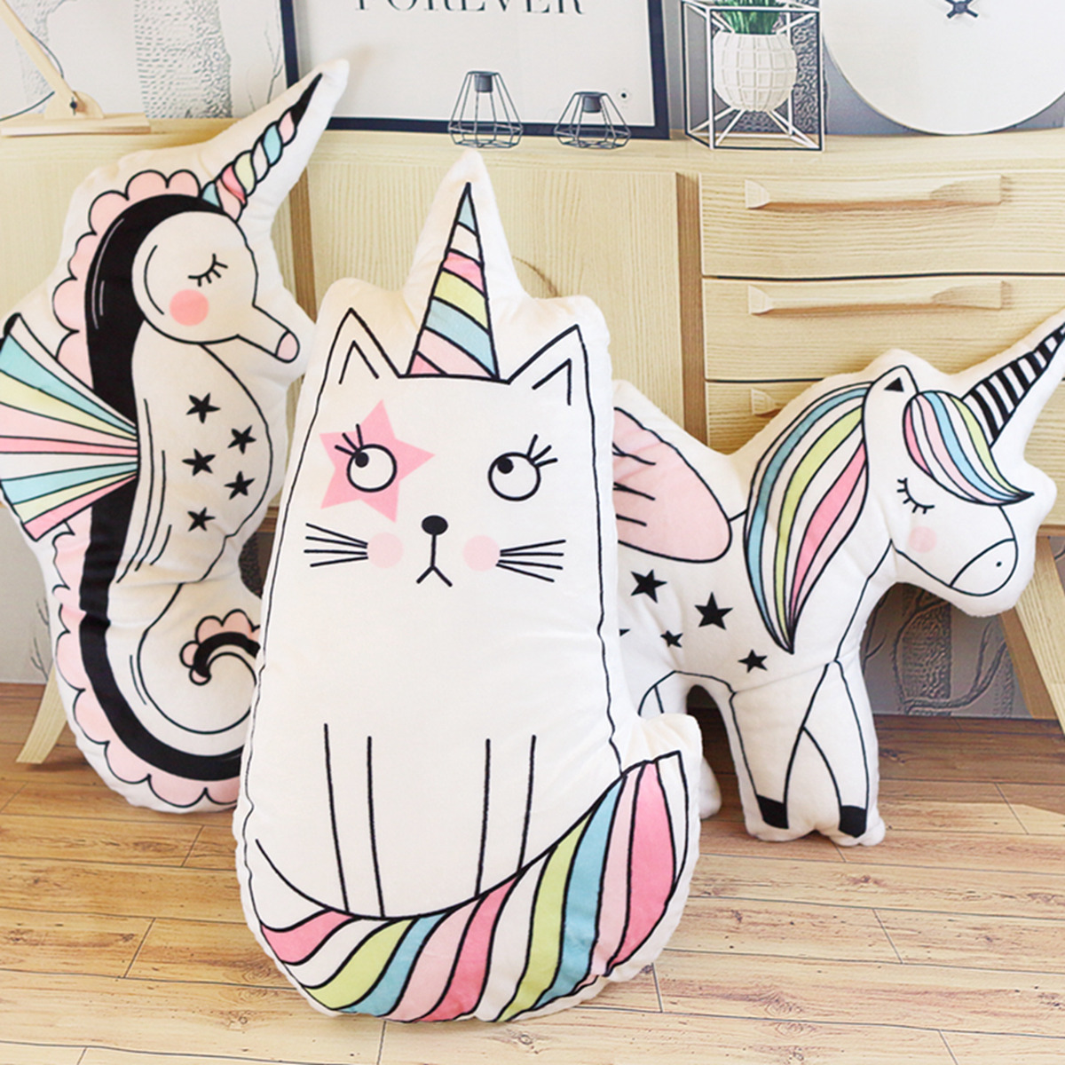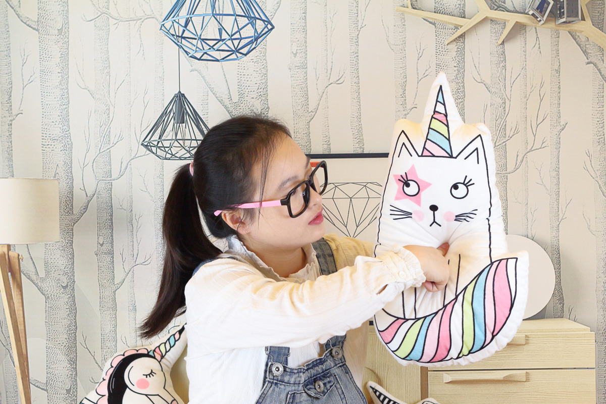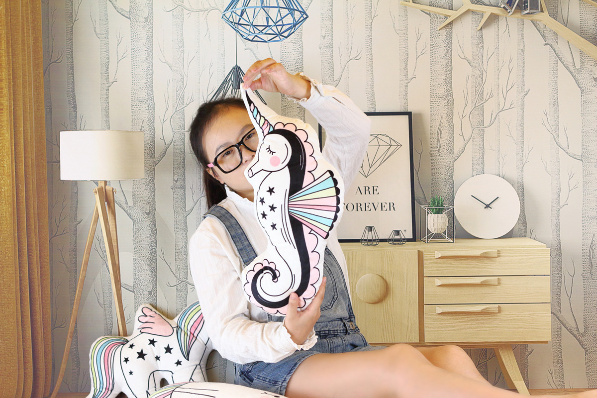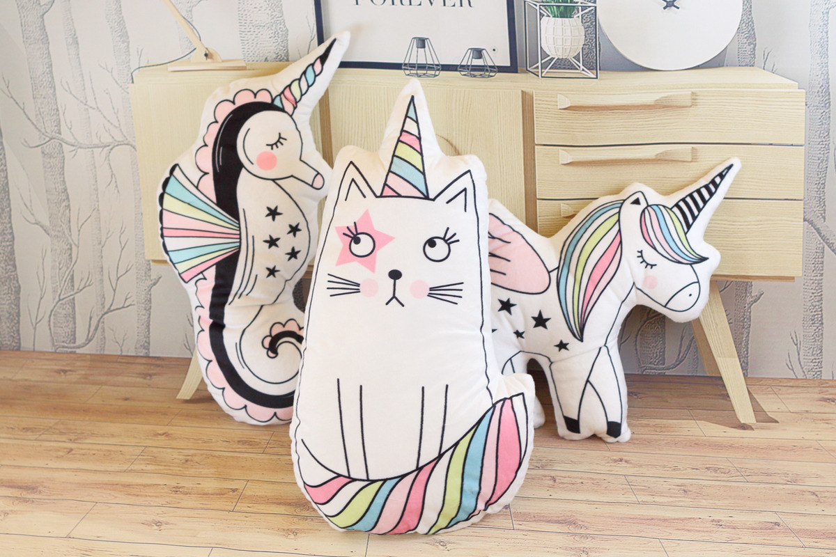 Wholesale macarons color unicorn doll seahorse cat pillow baby room photo decoration toy gift