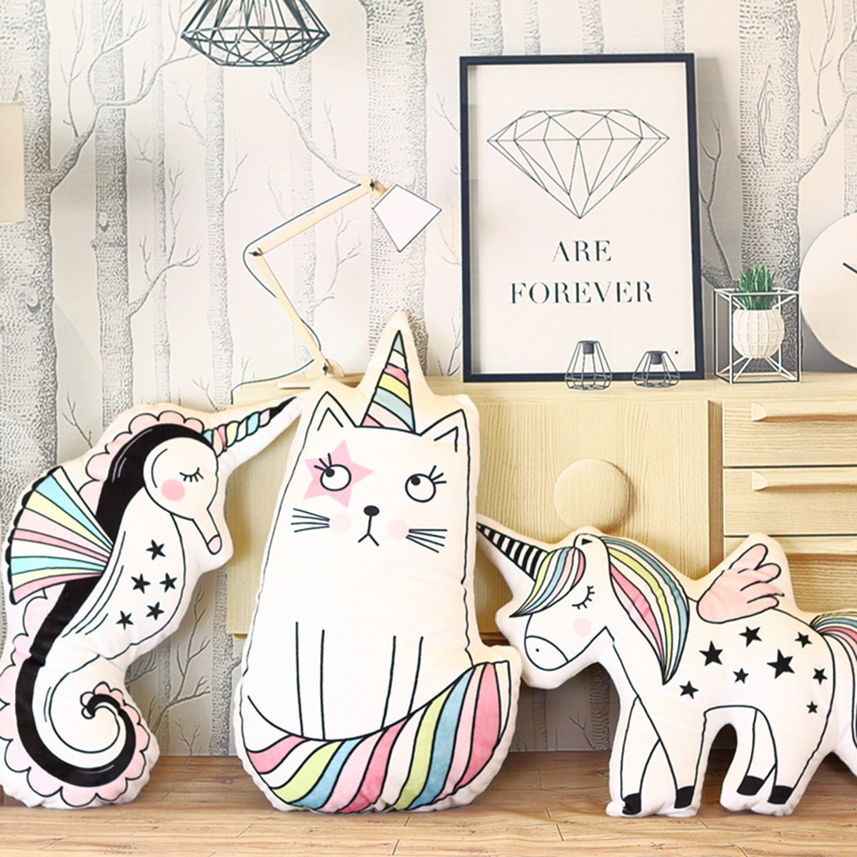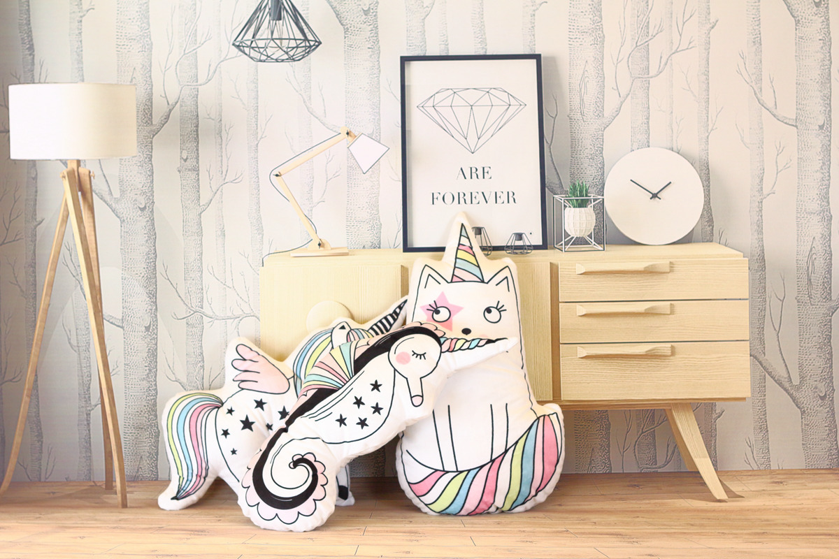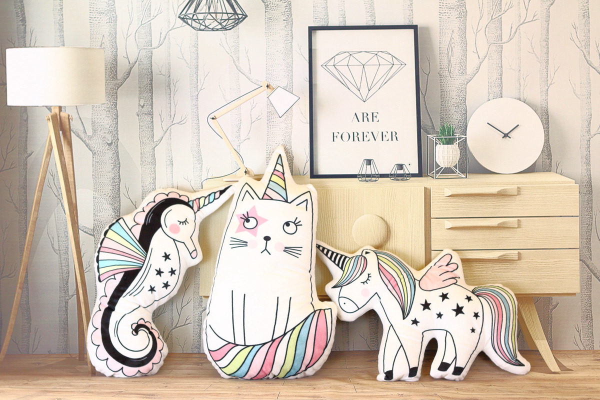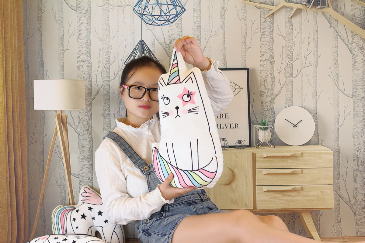 Wholesale macarons color unicorn doll seahorse cat pillow baby room photo decoration toy gift