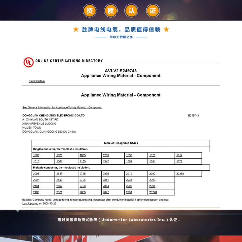 - Maximum outer diameter of wire: UL standard