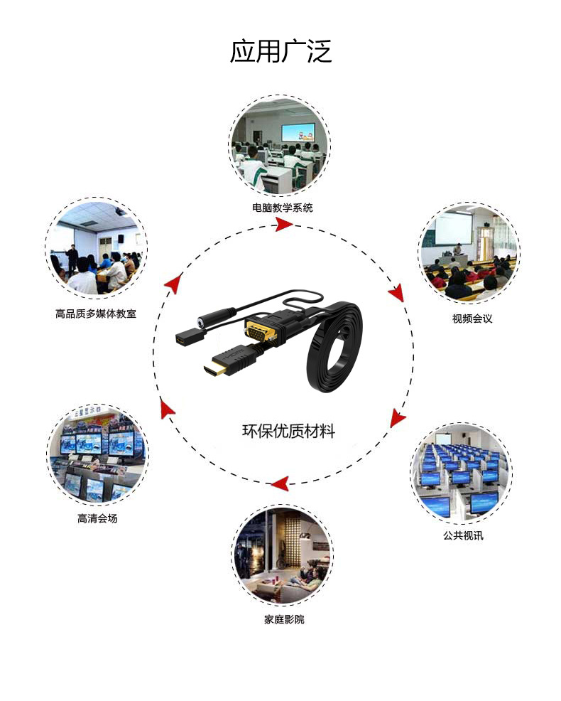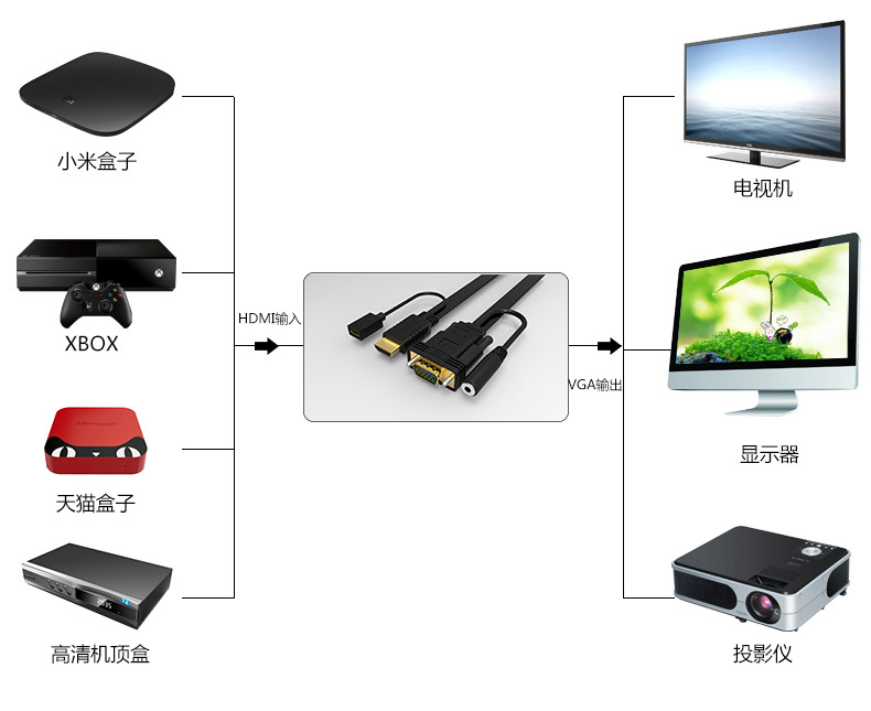 HDMI to VGA adapter cable with audio HD to vga interface video cable box projector