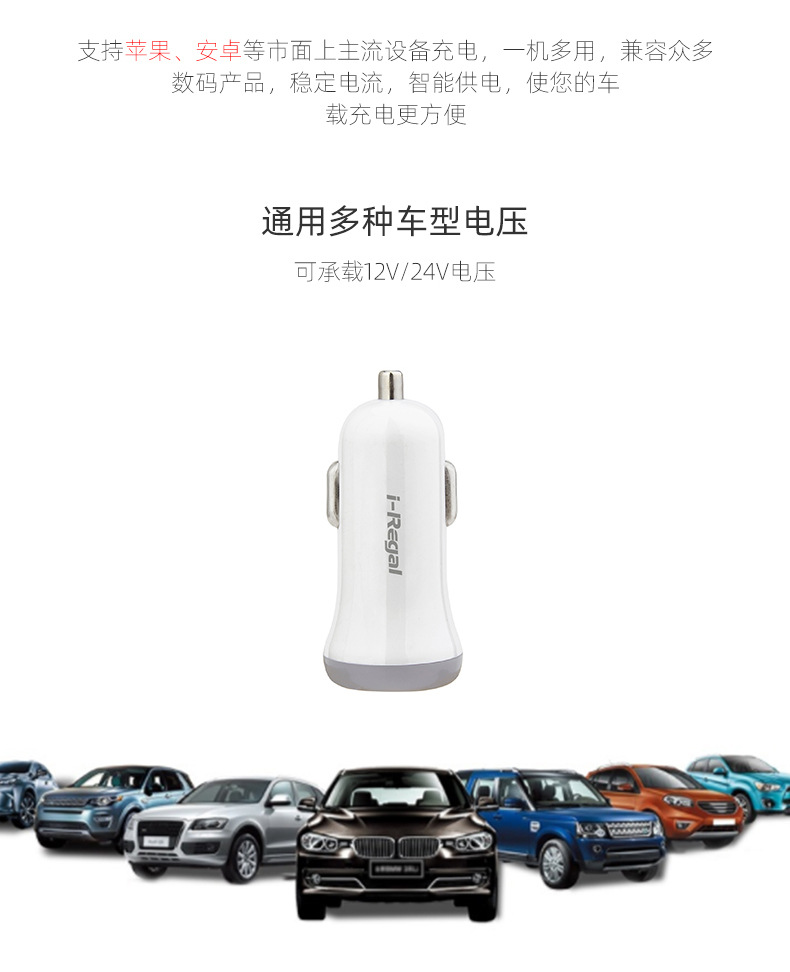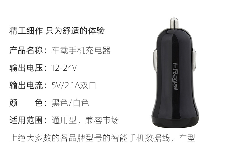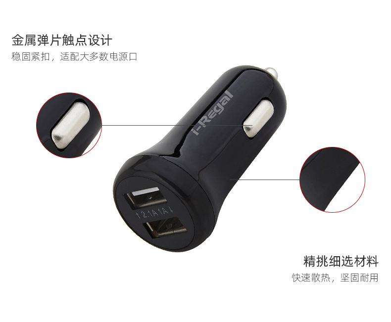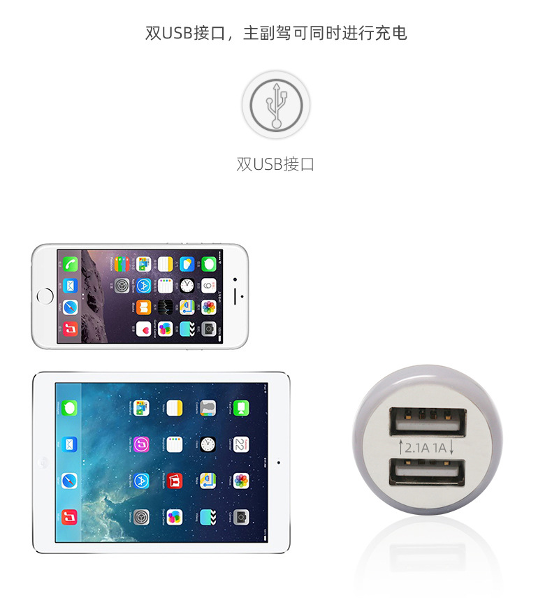 OEM new 5V2.1A car charger bullet dual USB car charger car phone charging head