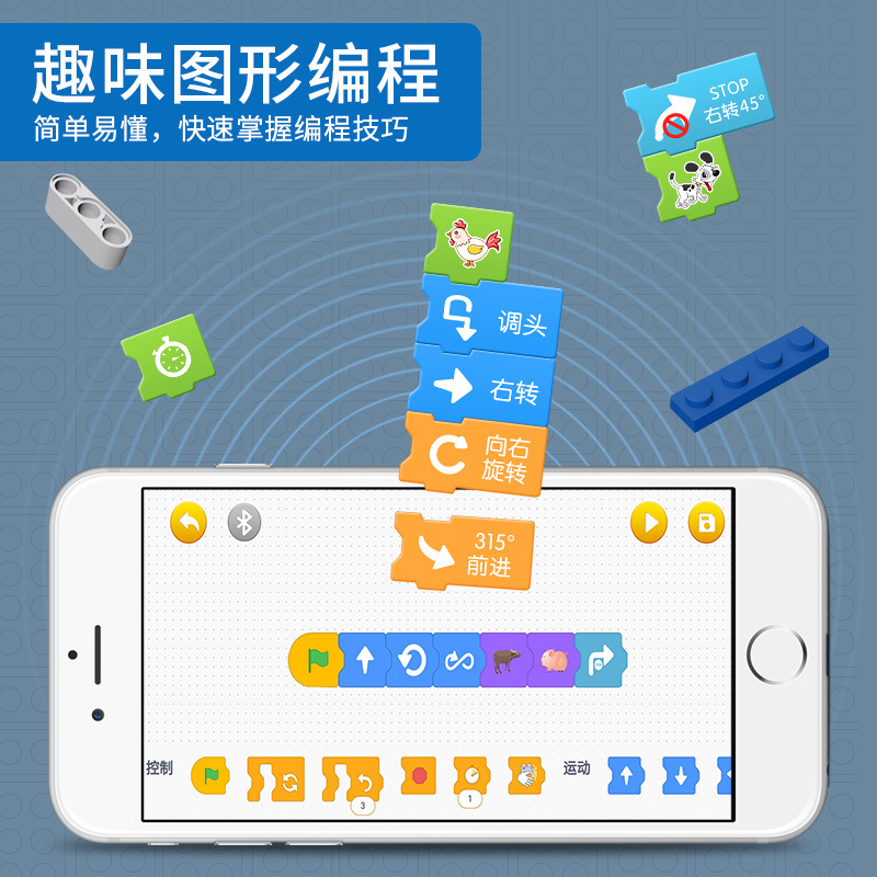Intelligent and innovative stunt animal toys Mobile APP programming remote control robot assembling building blocks learning teaching aids