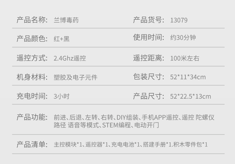 Yuxing 1309 red Rambo poison super sports car remote control electric racing APP version assembled building blocks programming toys
