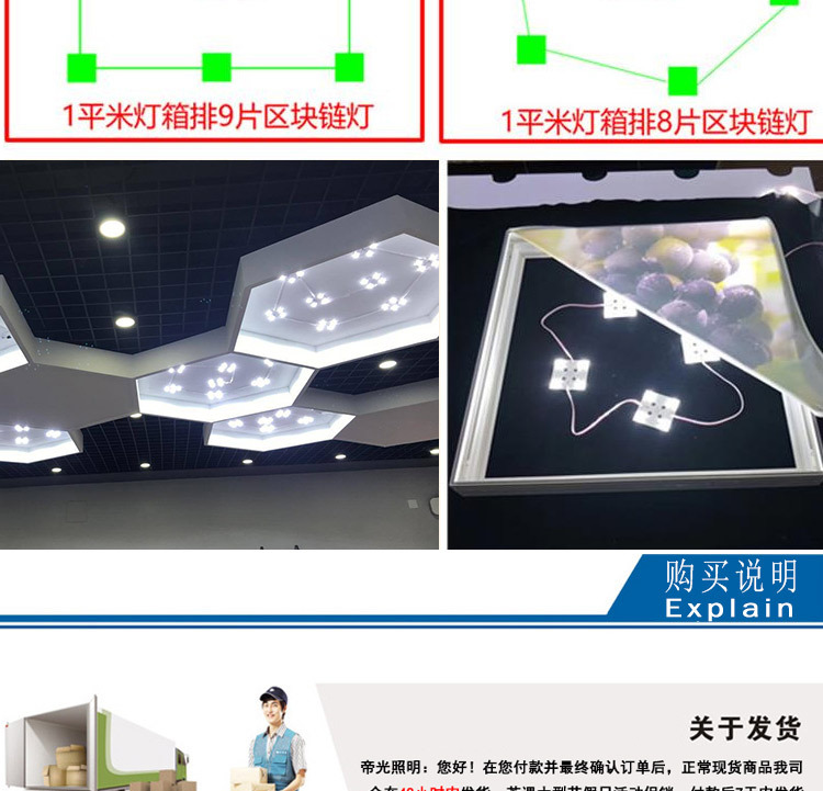 Soft film ceiling modification light blockchain LED diffuse reflection module wide angle lens square lamp lighting string light source