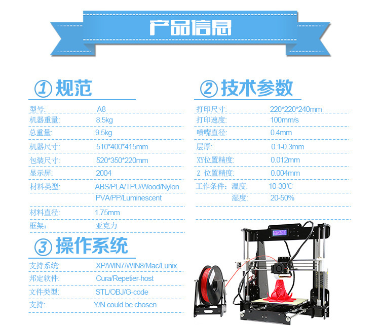 DIY kit high precision 3D printer 3D printer factory direct with LCD screen