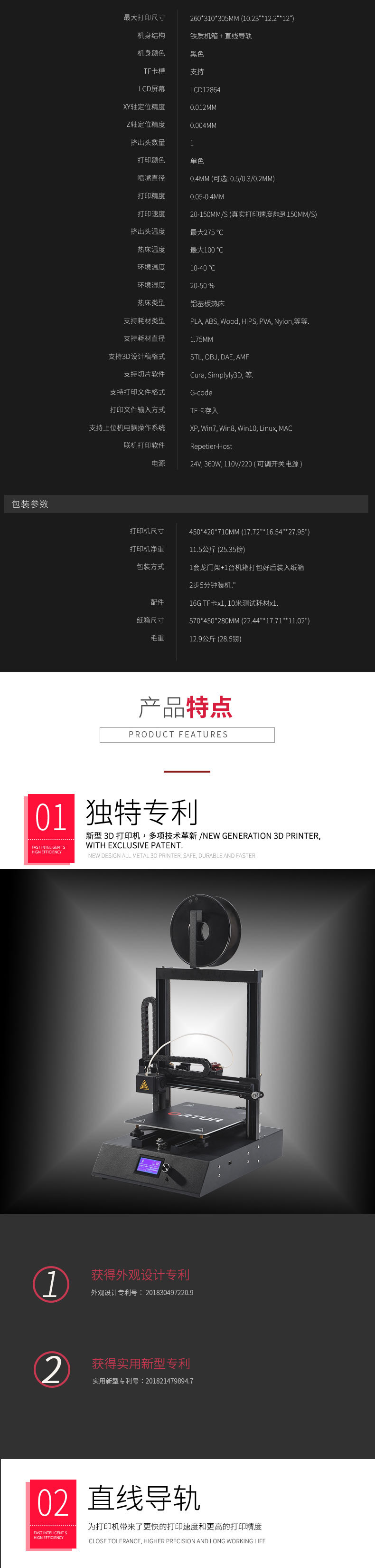 - Nozzle diameter: 0.4MM (Custom Options: 0.5/0.3/0.2MM)