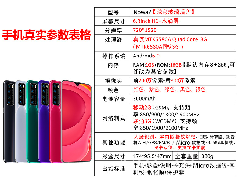 nowa7 spot 6. 5 inch 1+16G comprehensive low Smart large-screen mobile phone oem custom