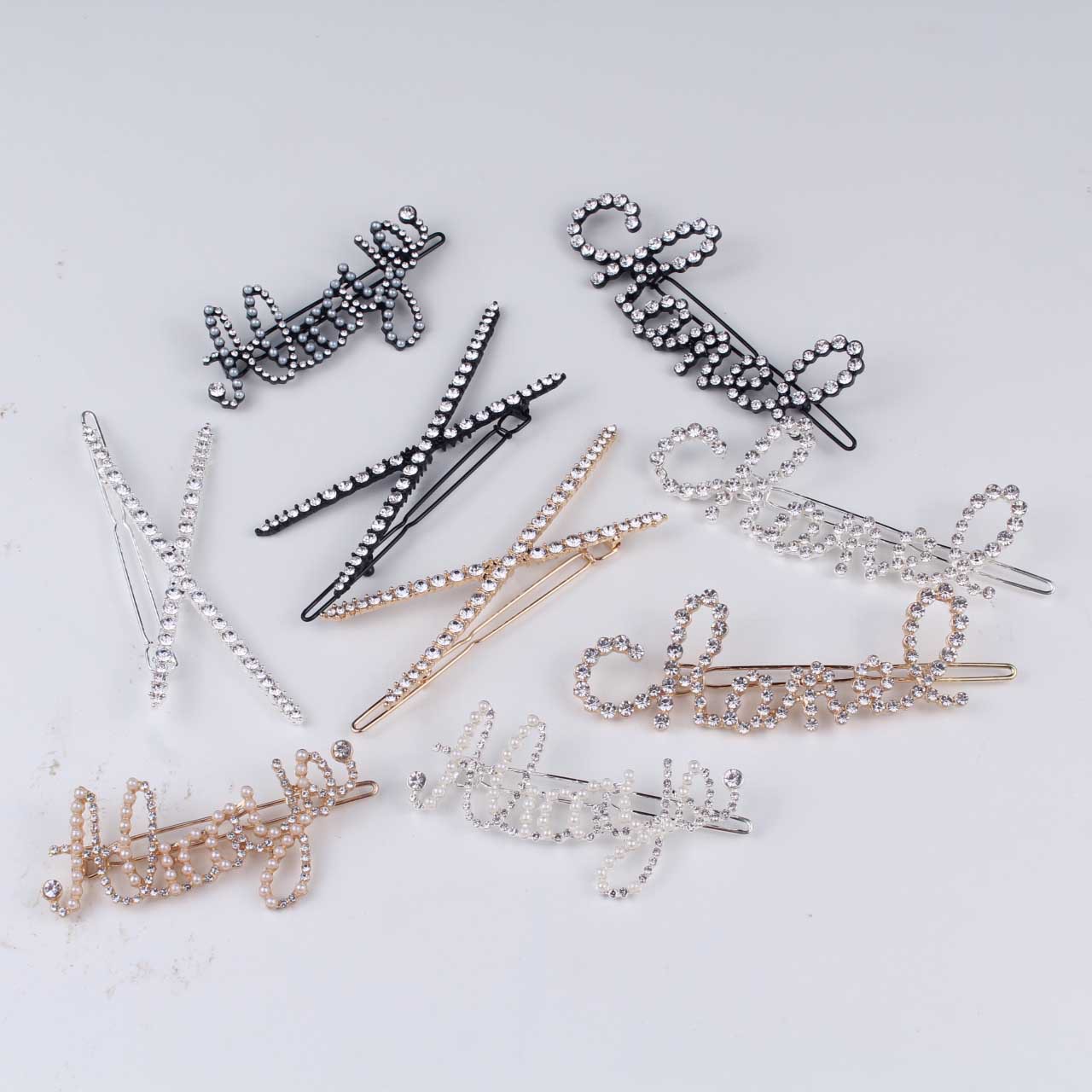 Summer new trendy temperament edge clip, diamond small fresh hair clip, fashion letter hair accessories