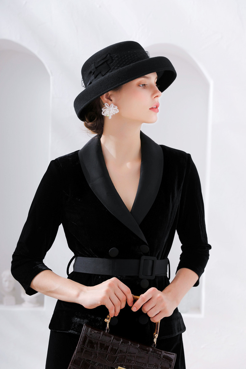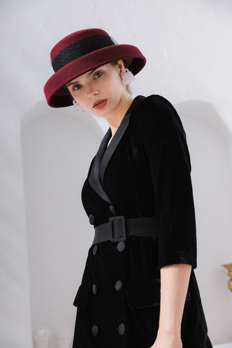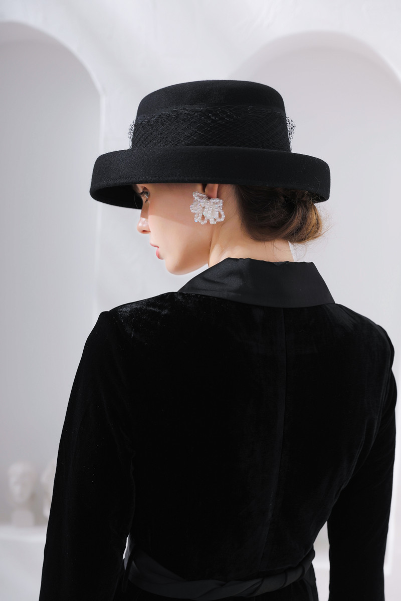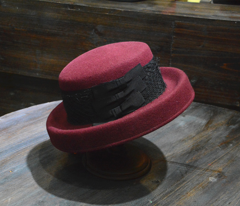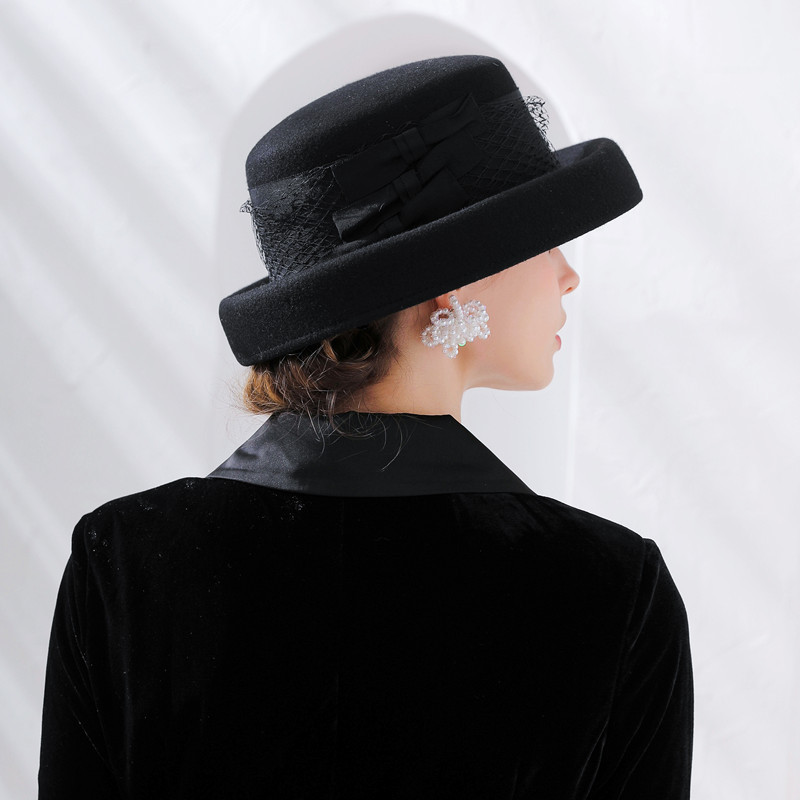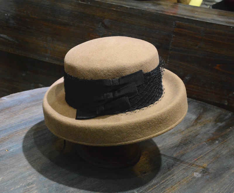 Hua Qiao early spring new extravagance hat female wool IT network shamao sub-simple English vintage bead topper