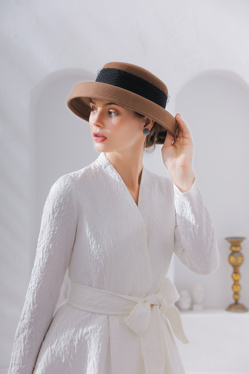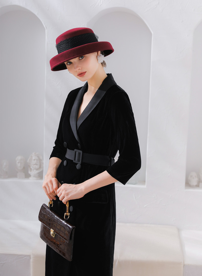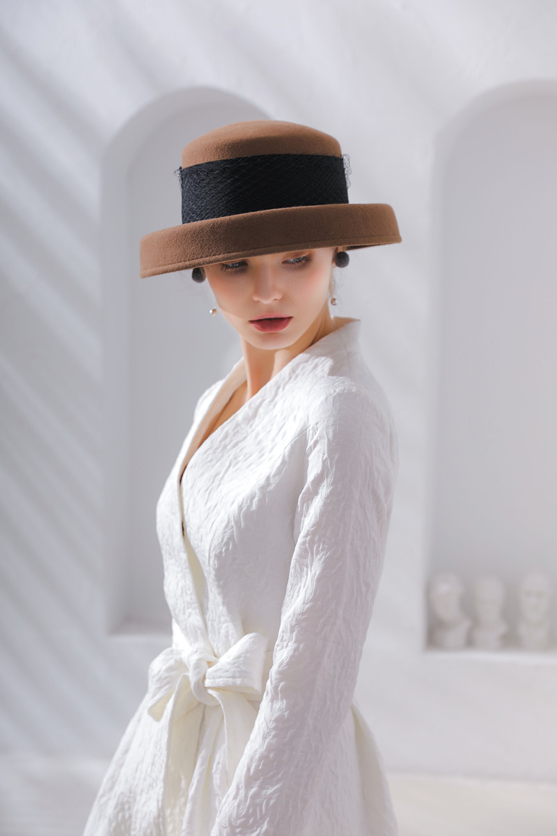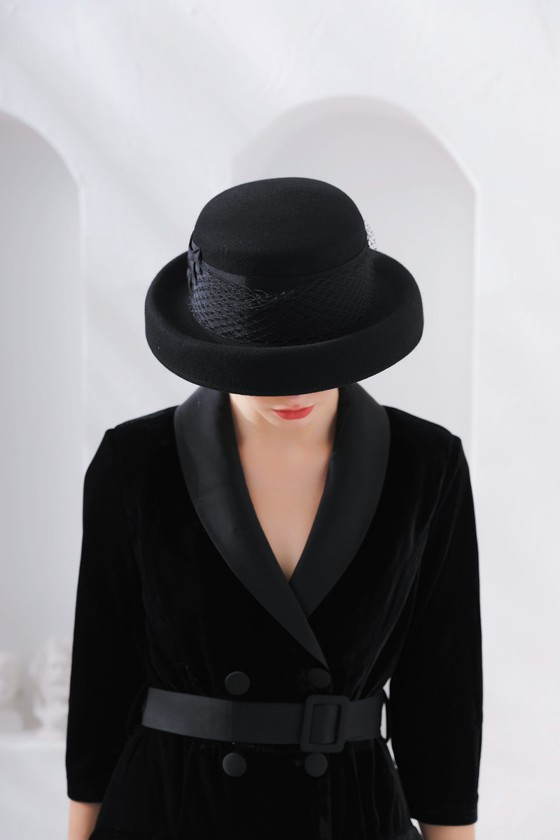 Hua Qiao early spring new extravagance hat female wool IT network shamao sub-simple English vintage bead topper