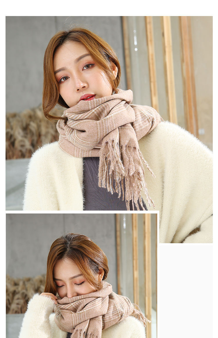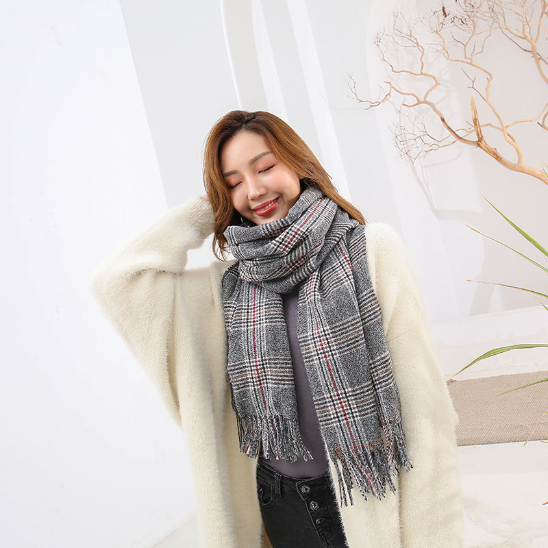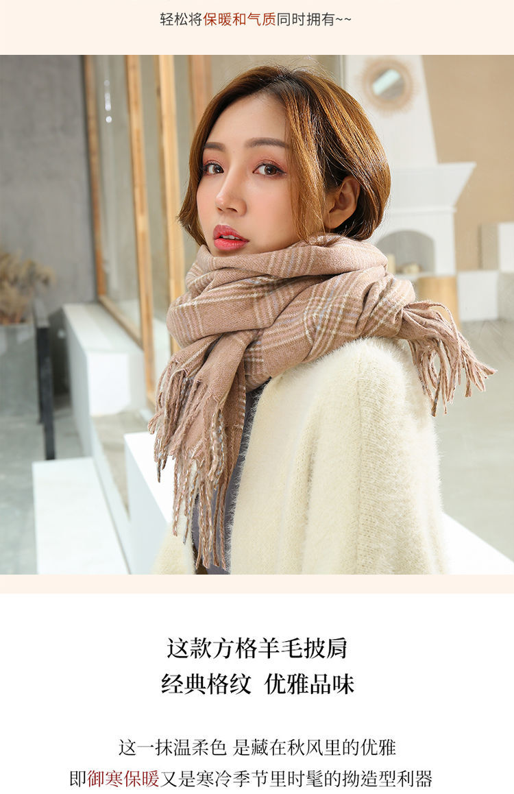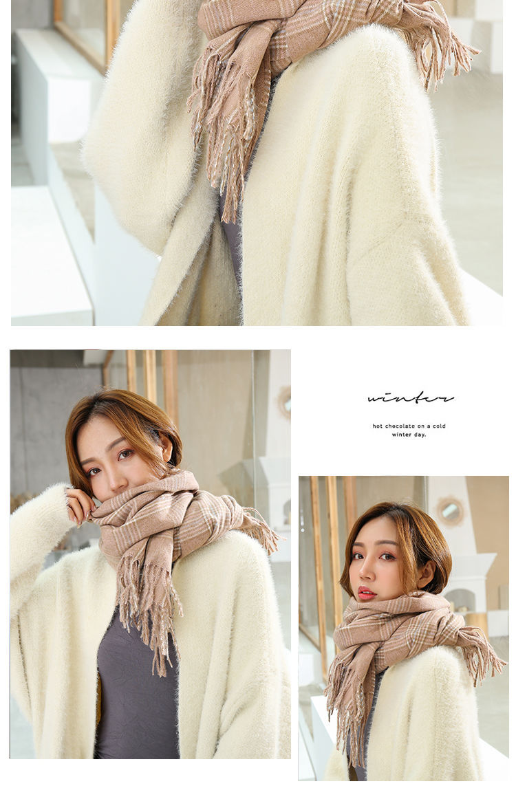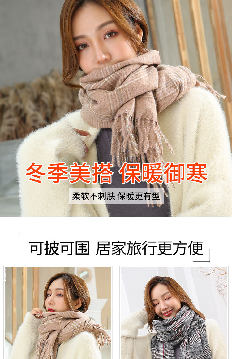A couple cashmere scarf female Winter student fashion Yang Mi the same paragraph grid scarf spell color Joker warm shawl