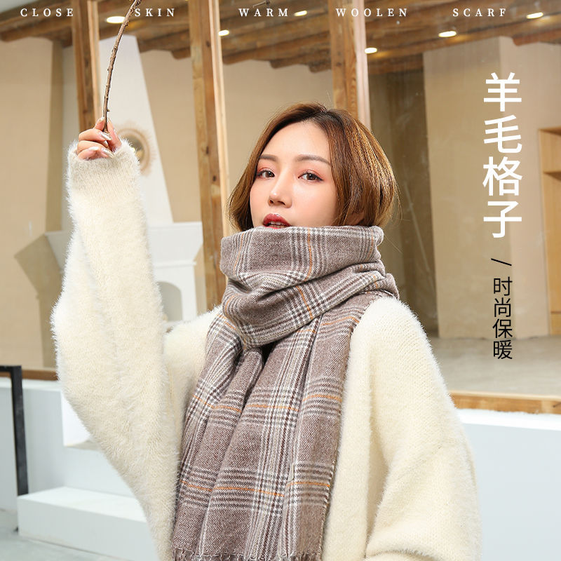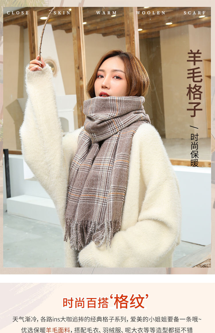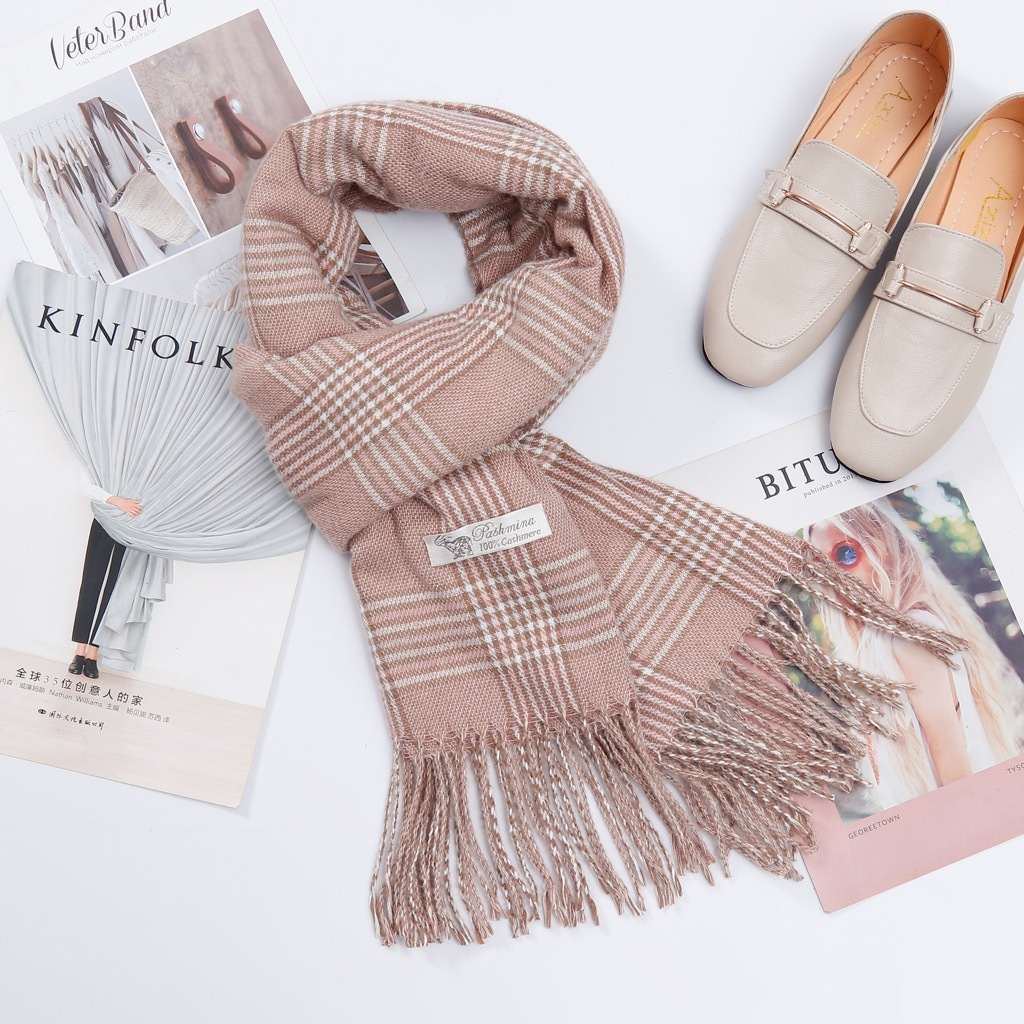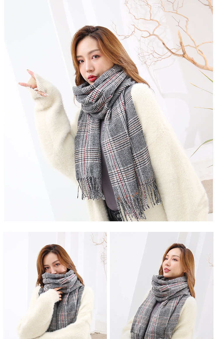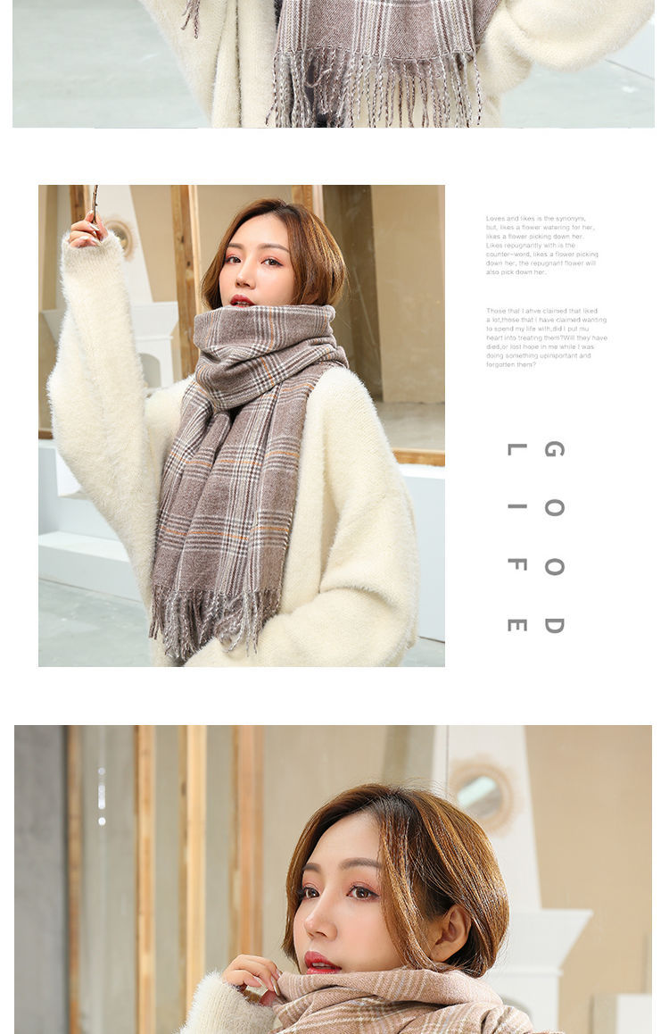 A couple cashmere scarf female Winter student fashion Yang Mi the same paragraph grid scarf spell color Joker warm shawl