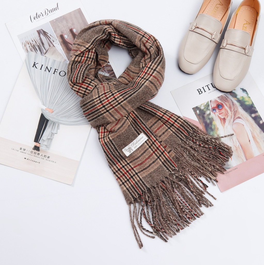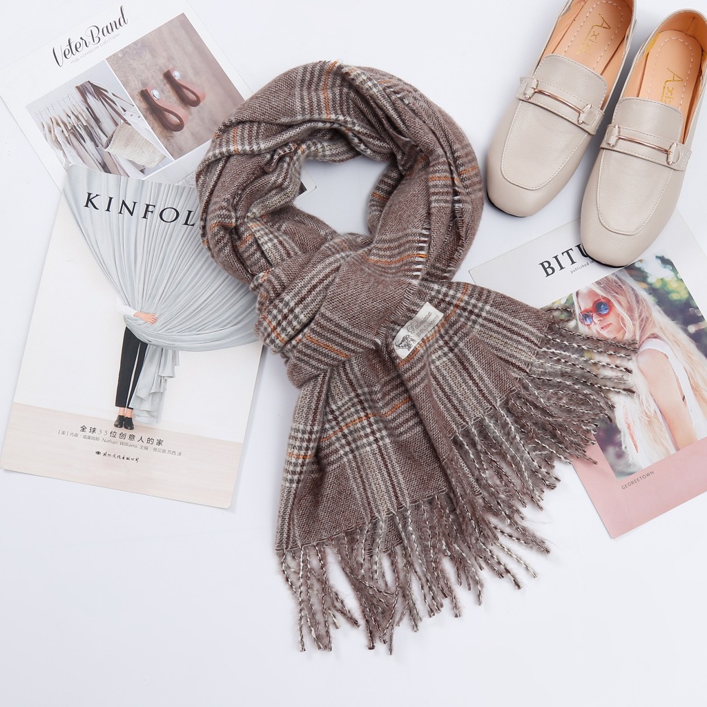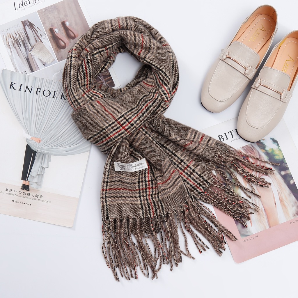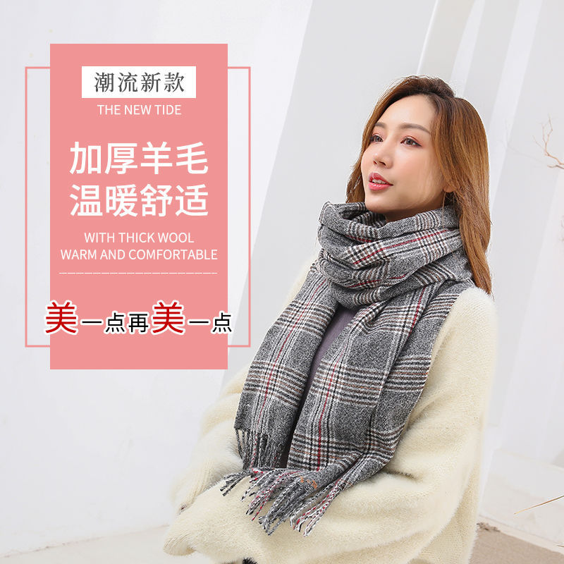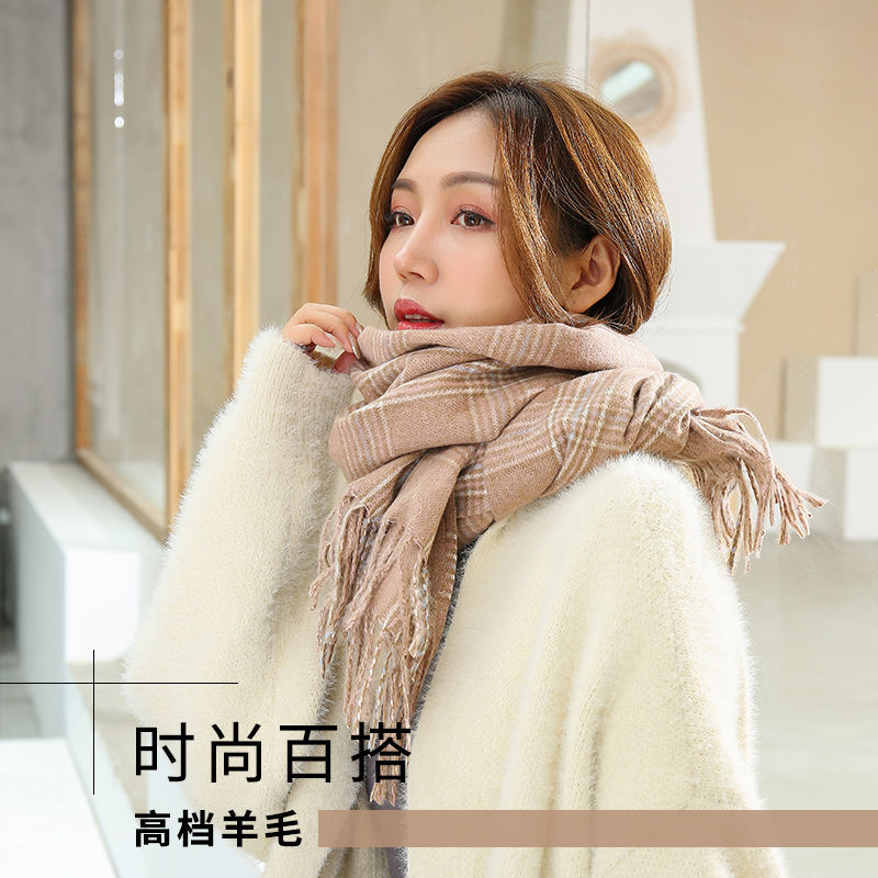 A couple cashmere scarf female Winter student fashion Yang Mi the same paragraph grid scarf spell color Joker warm shawl