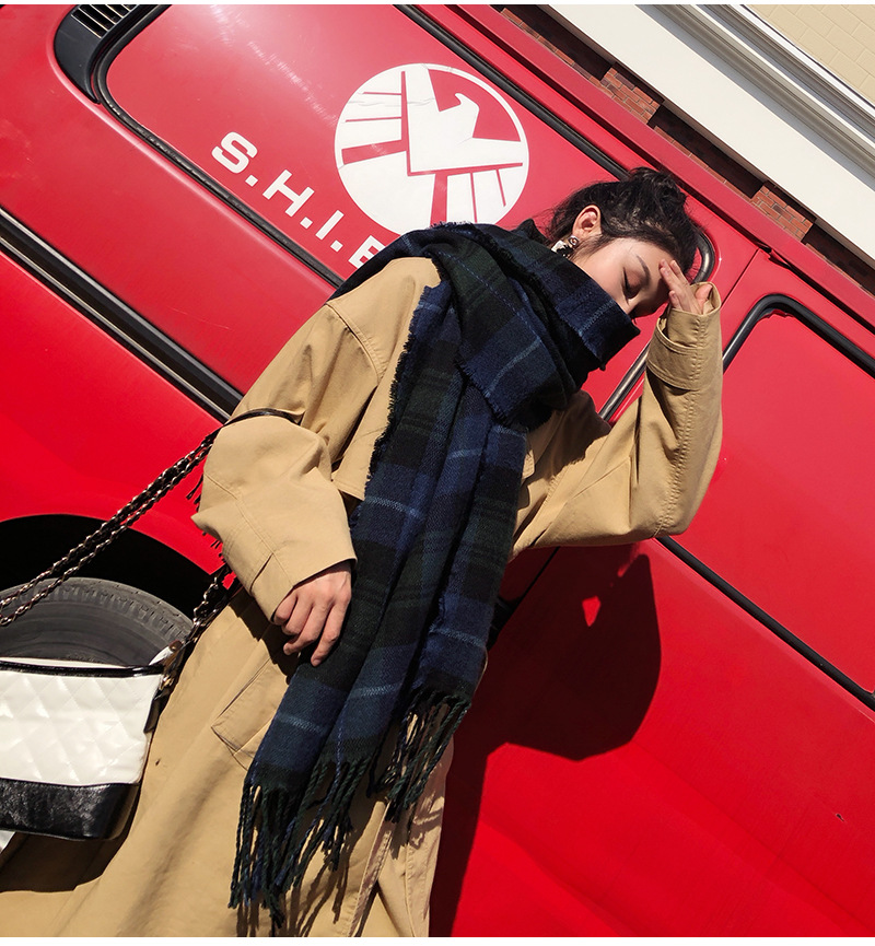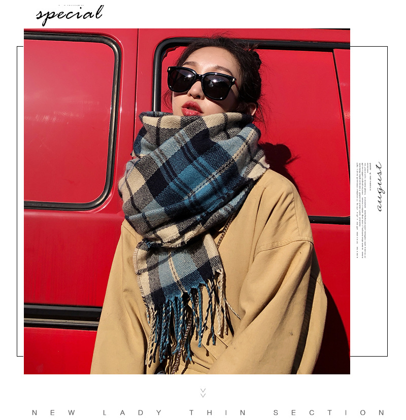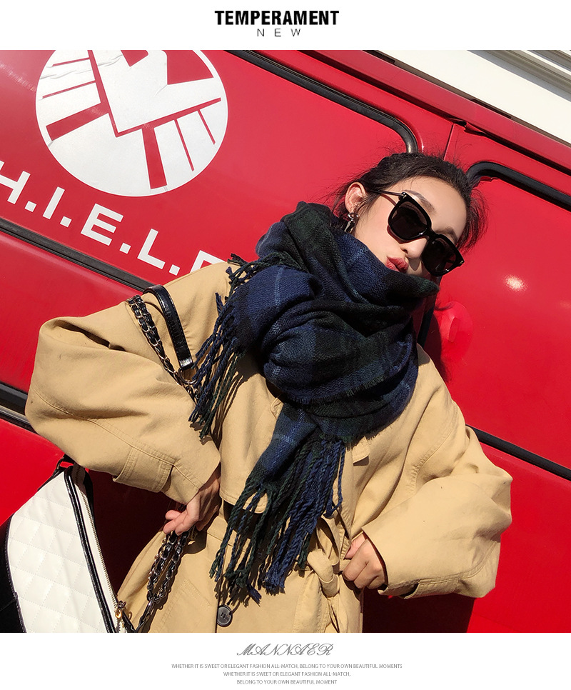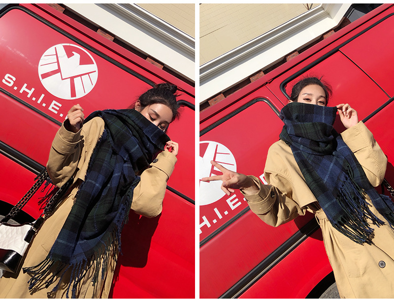 Autumn and winter imitation cashmere plaid scarf women new style Joker thick warm tassels shawl scarf dual-use