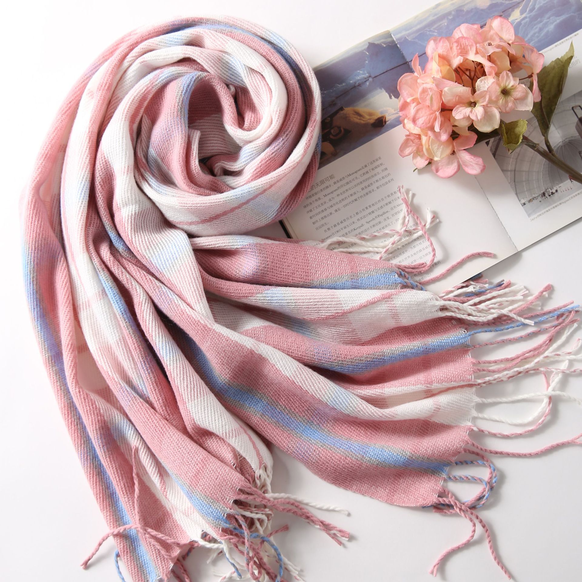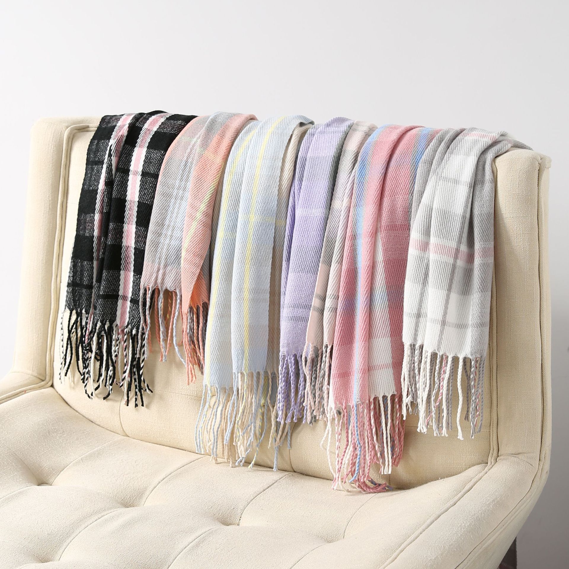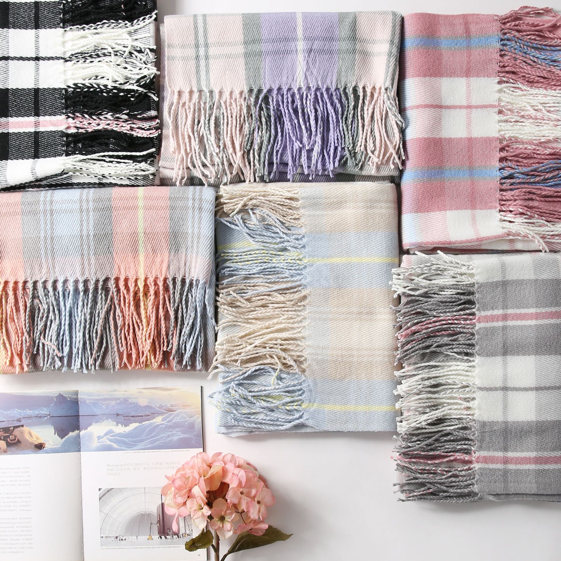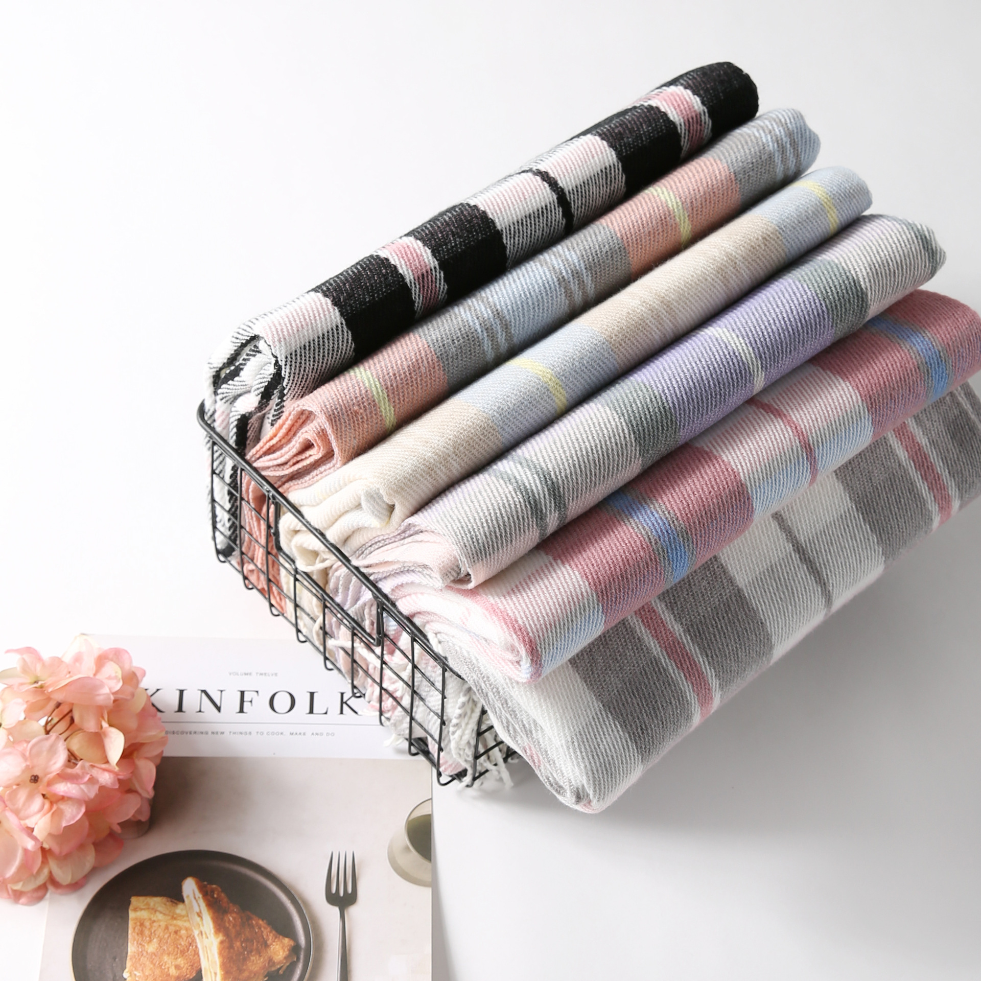 Autumn and winter mesh red matching plaid scarf women new plus thick scarf imitation cashmere warm literature and art shawl
