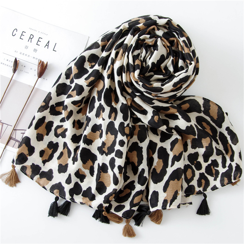 Classic fashion leopard scarf spring and autumn winter long section of Joker ladies cotton linen scarf dual-use shawl