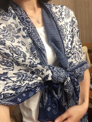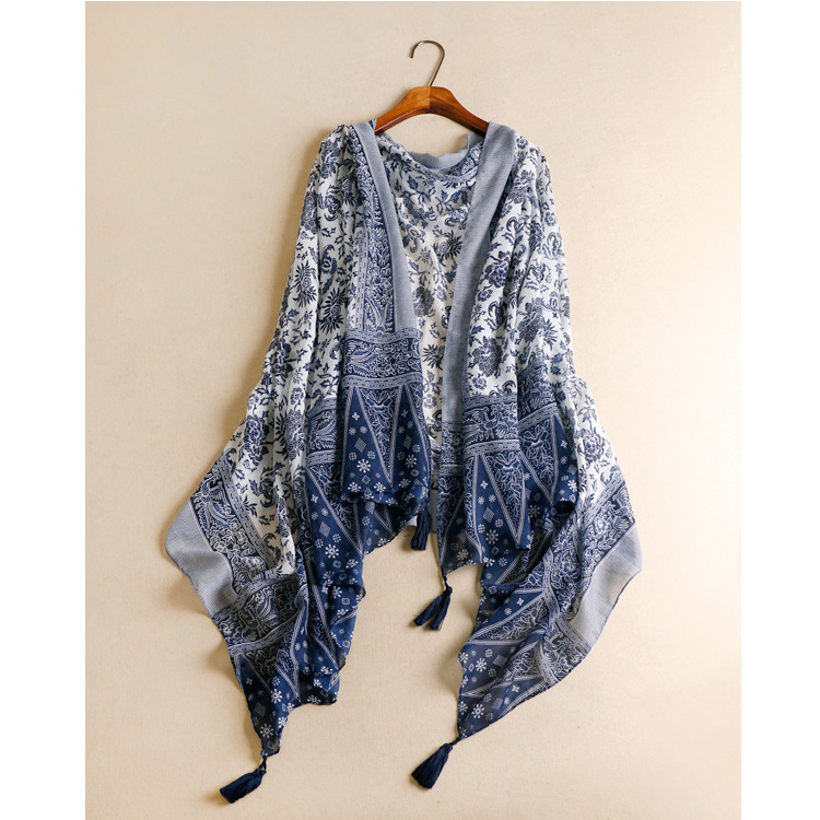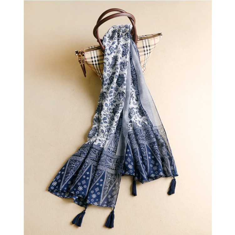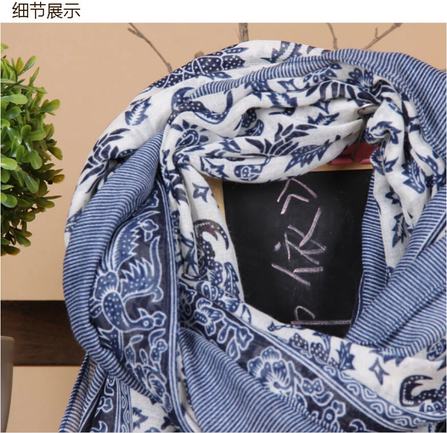 Fashion the original single elegant blue and white porcelain female Su scarf cotton art silk scarf long section shawl