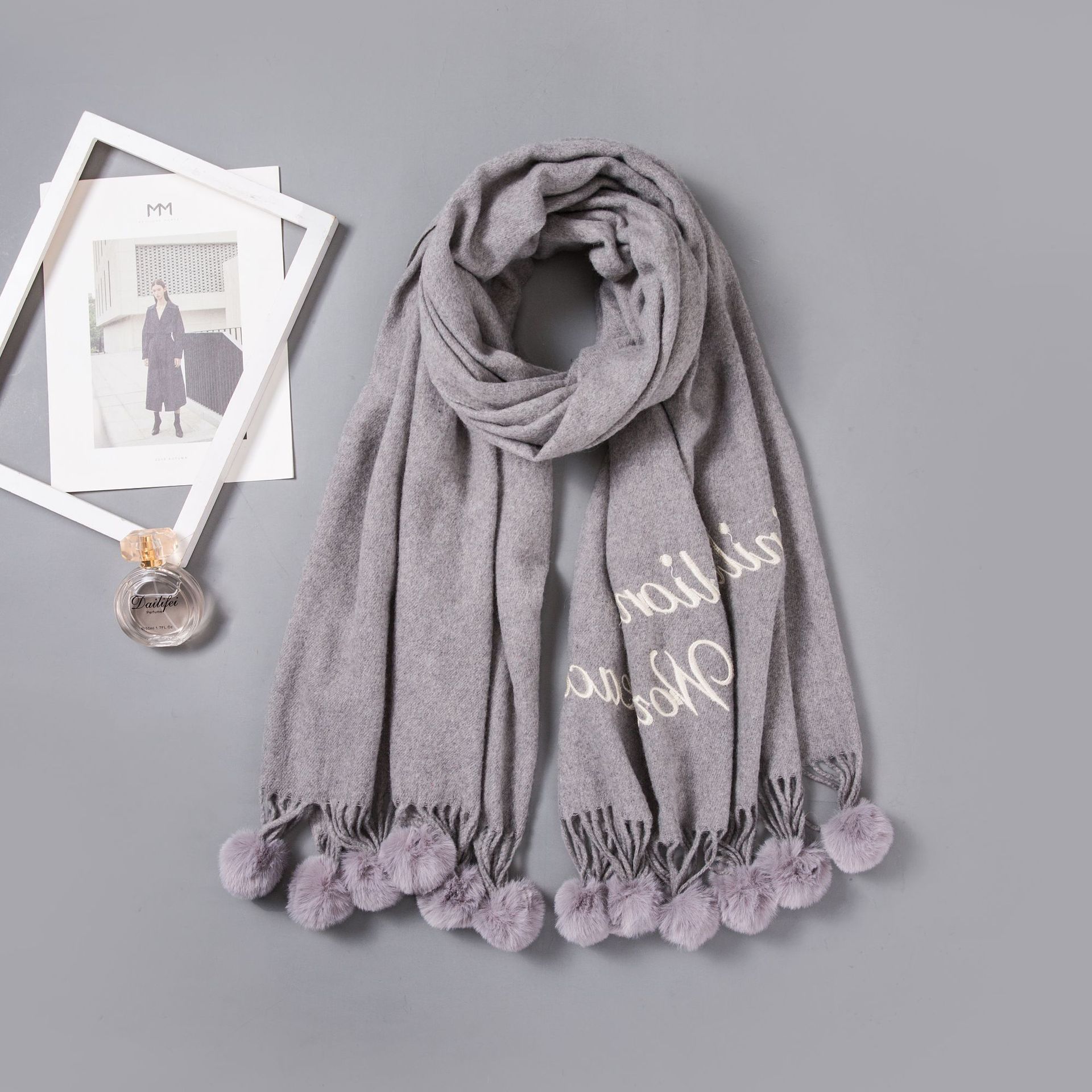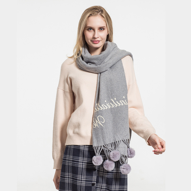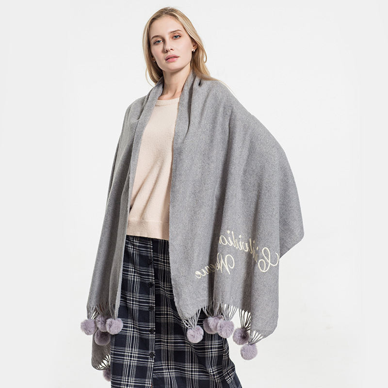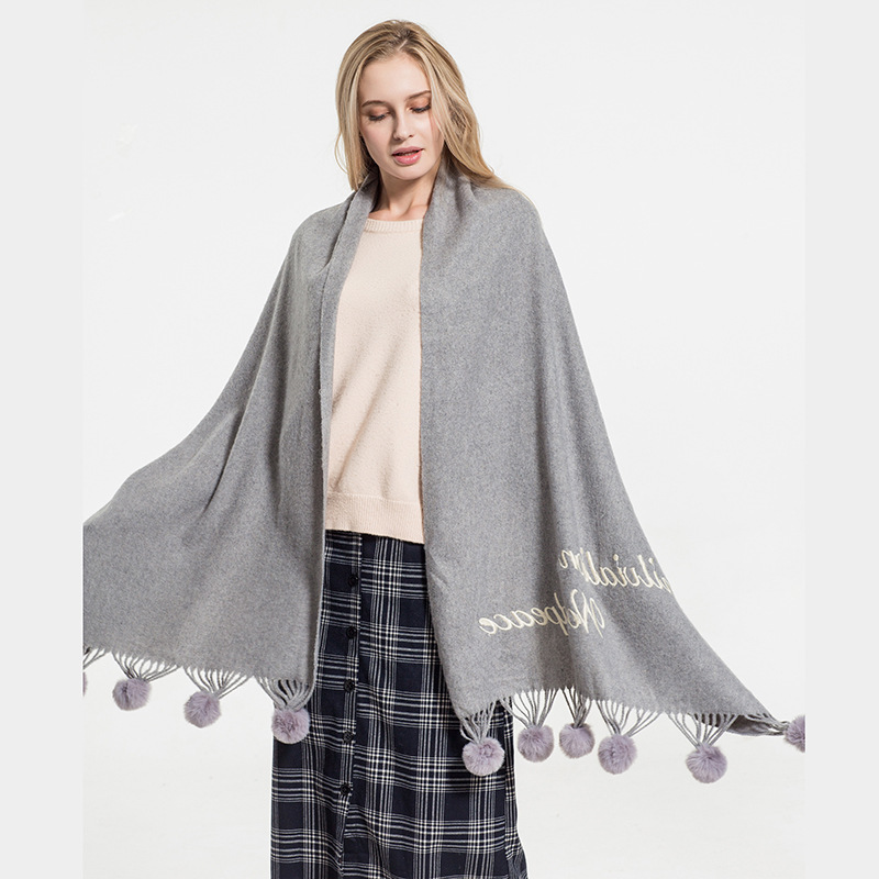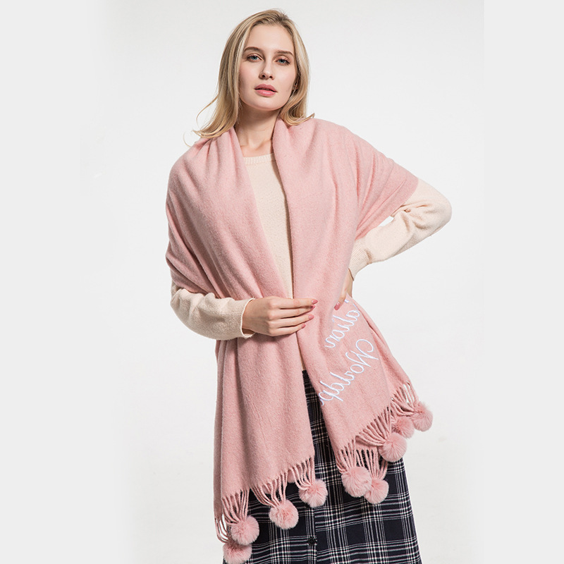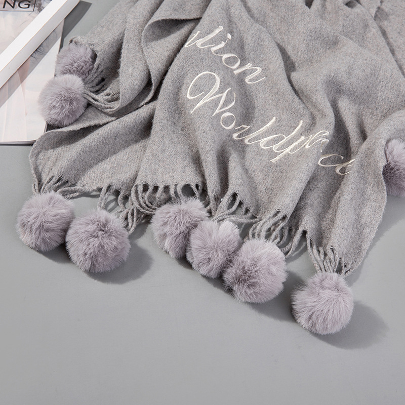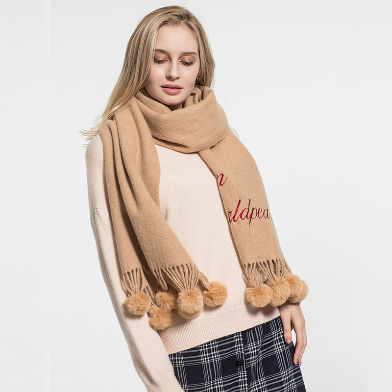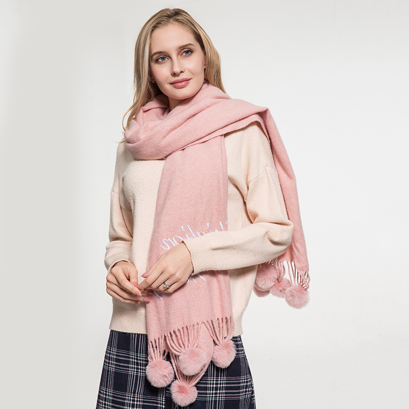 Hair ball autumn and Winter new warm scarf women versatile windproof collar long paragraph thickened shawl wholesale
