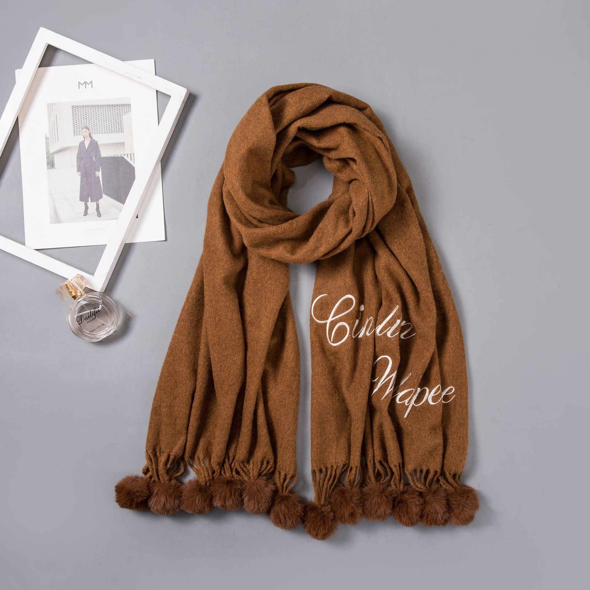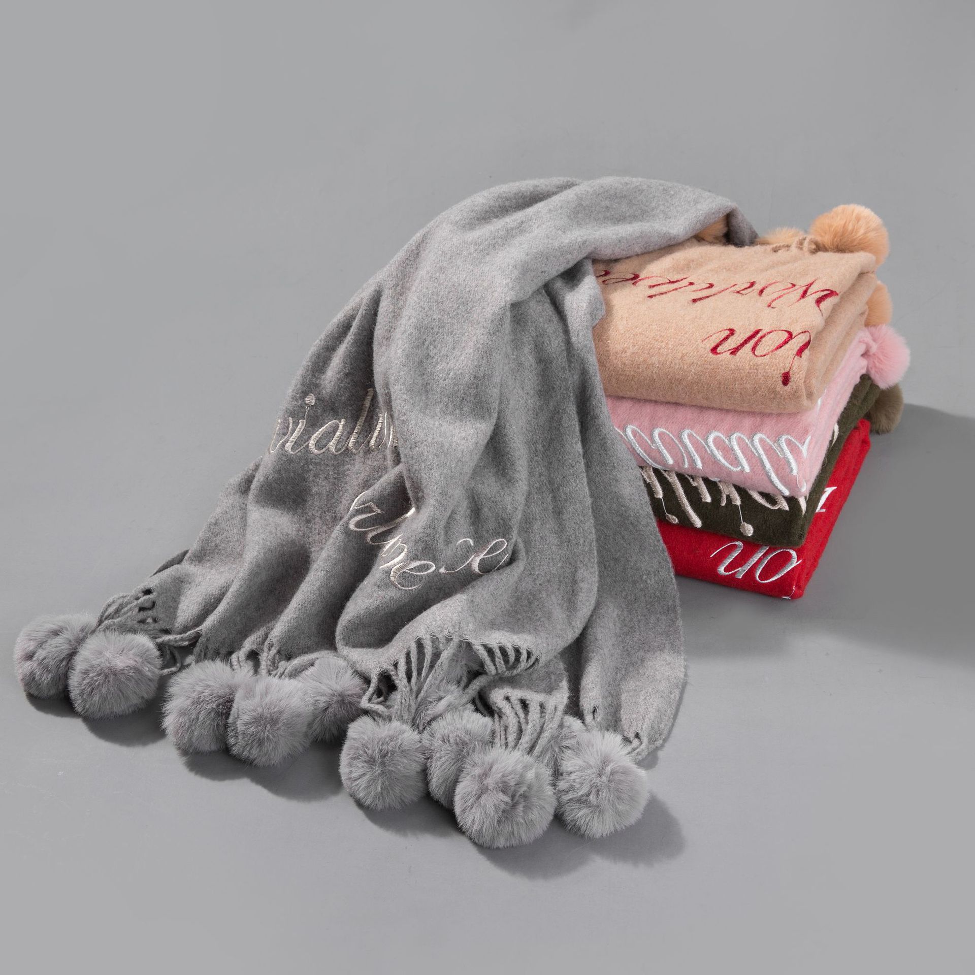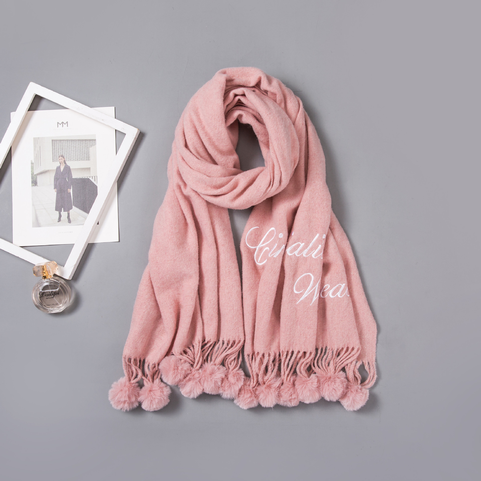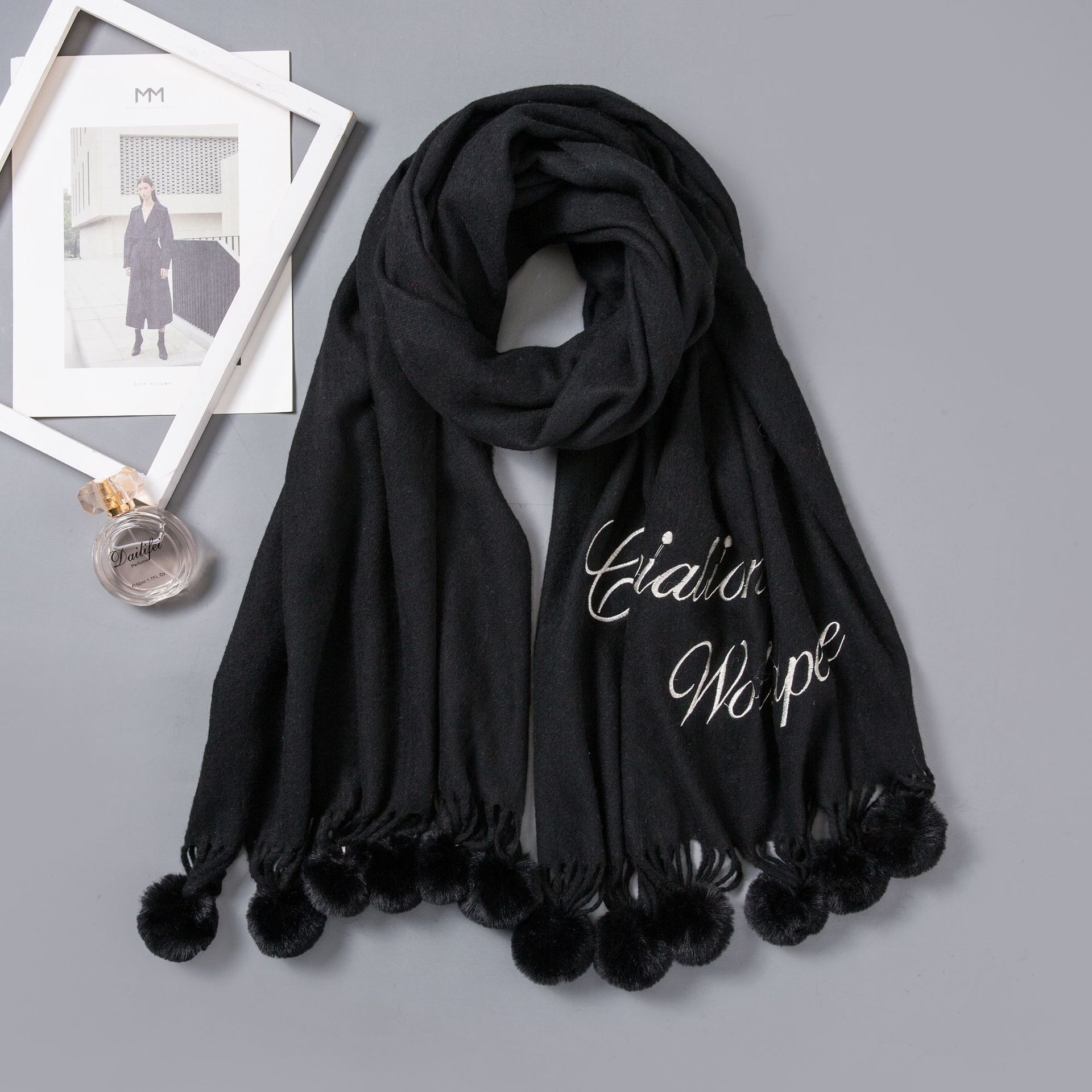 Hair ball autumn and Winter new warm scarf women versatile windproof collar long paragraph thickened shawl wholesale