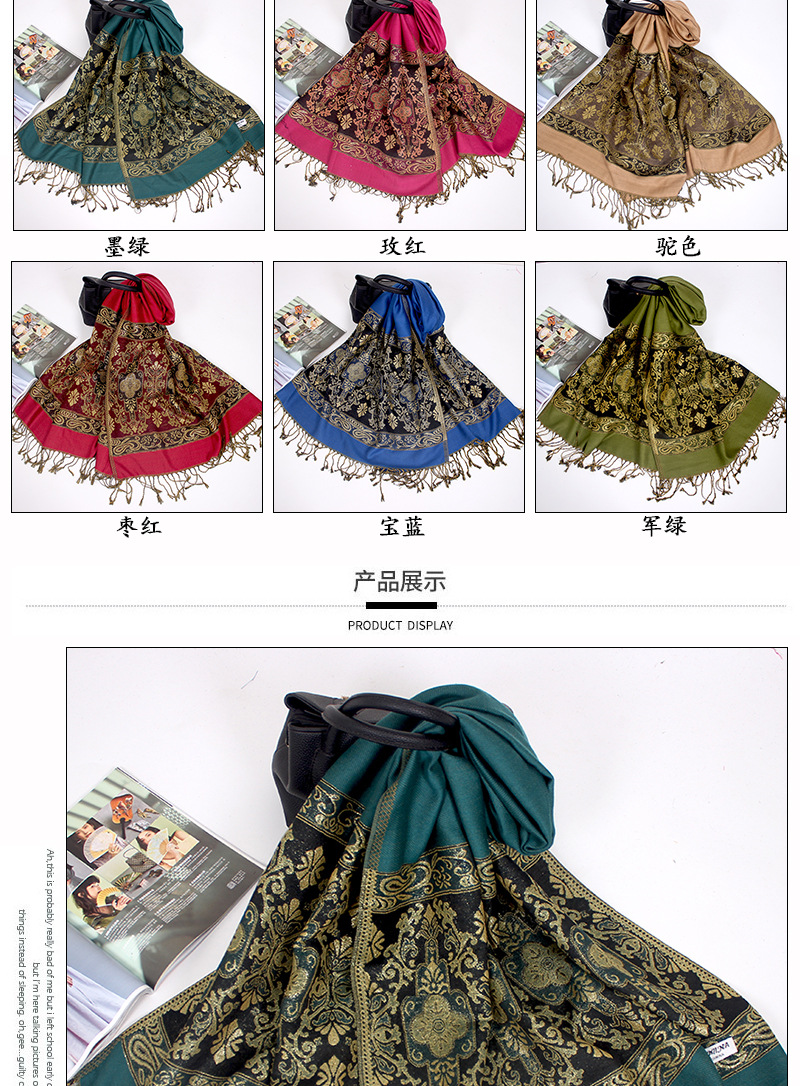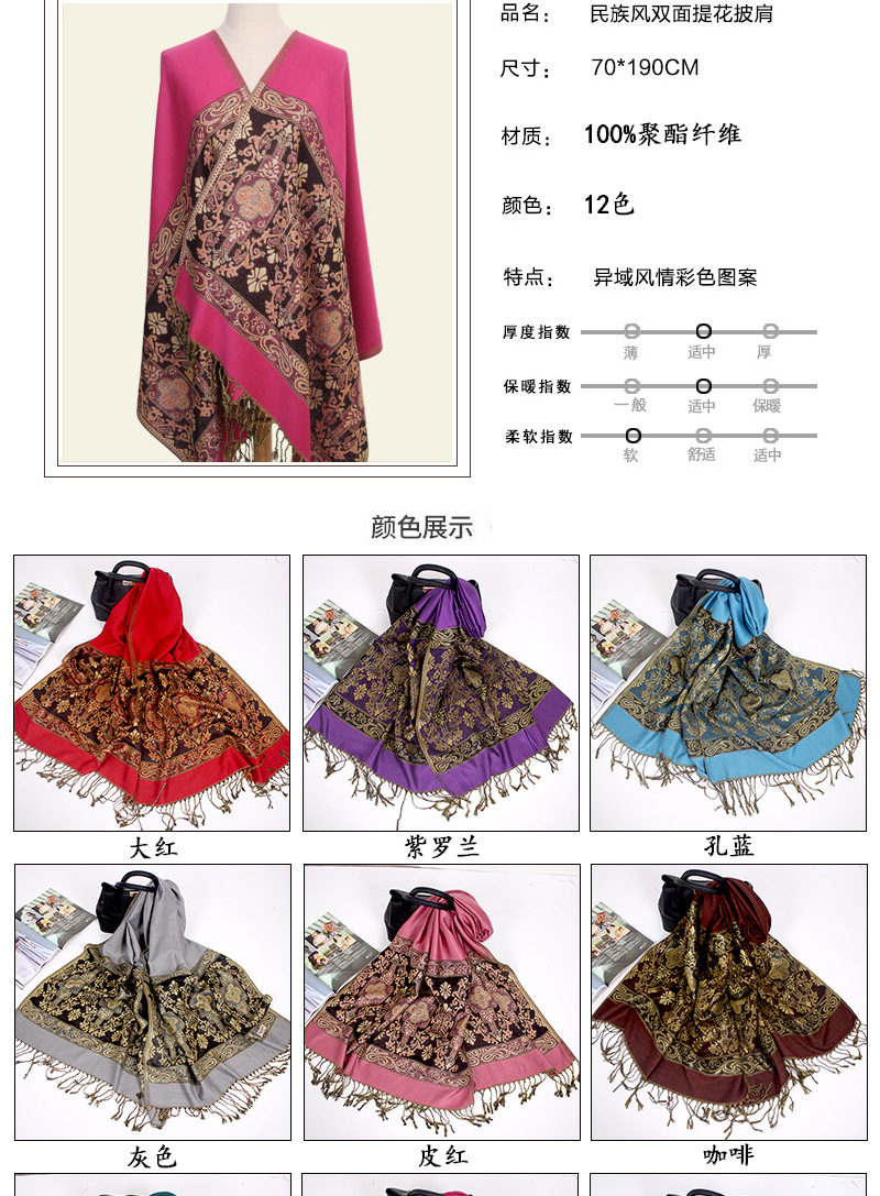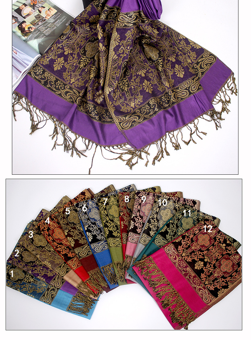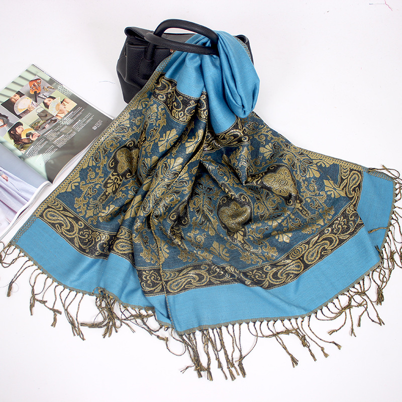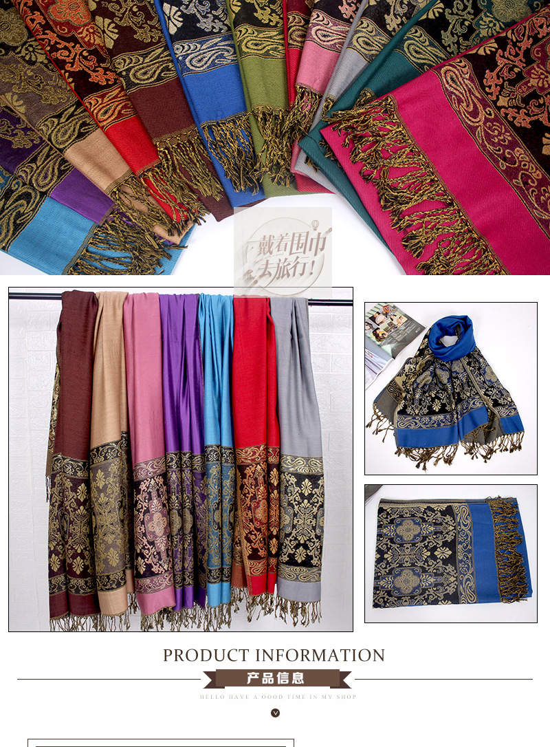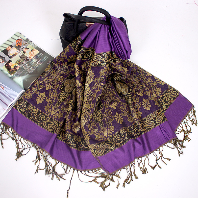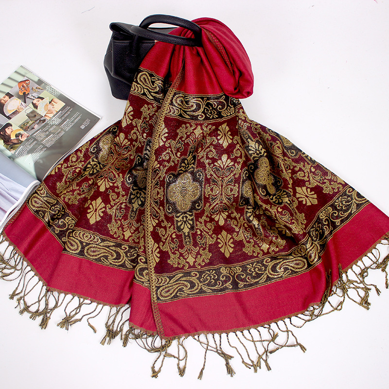 Manufacturers wholesale Bohemian autumn and winter ultra-eldest daughter with Disabilities National Wind jacquard fringed scarf shawl dual-use