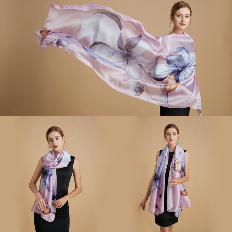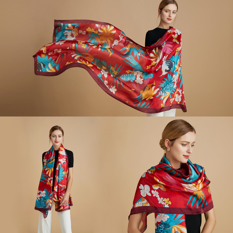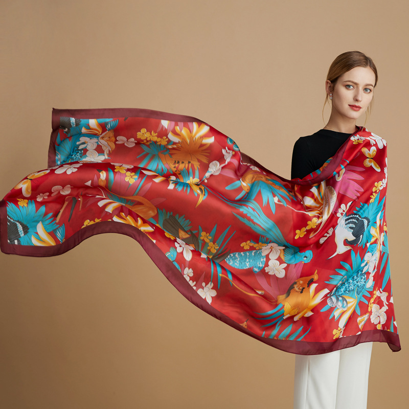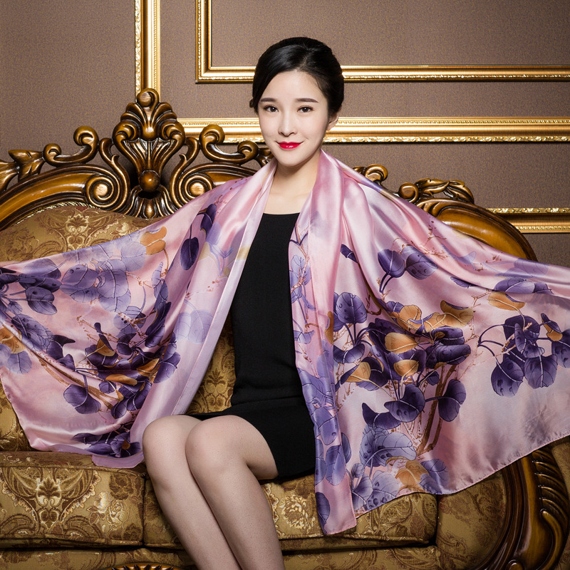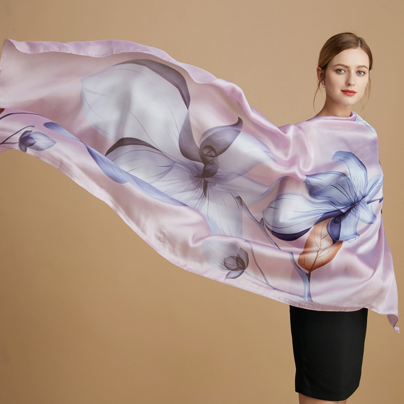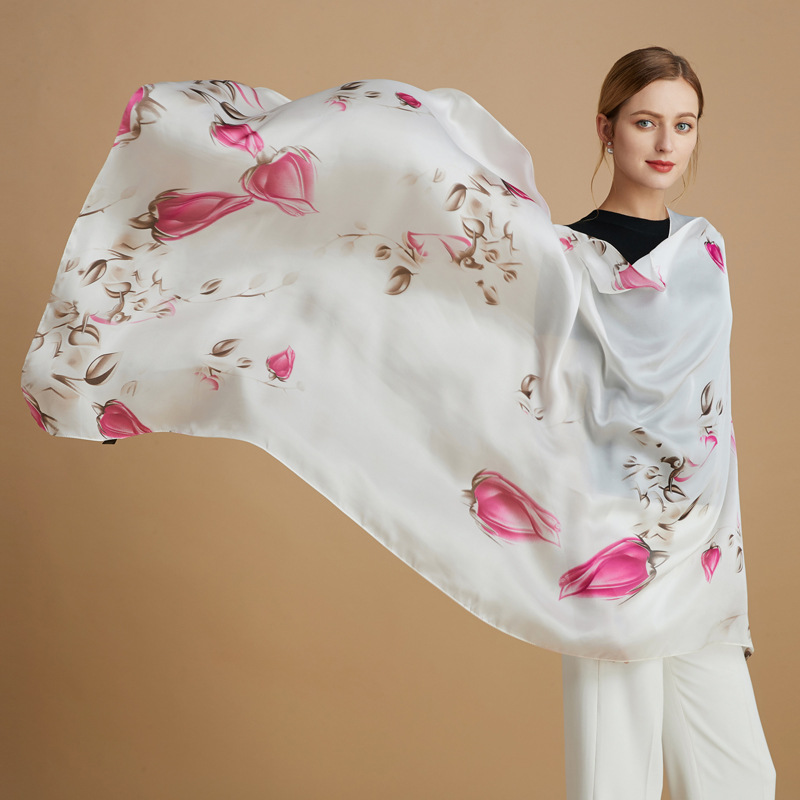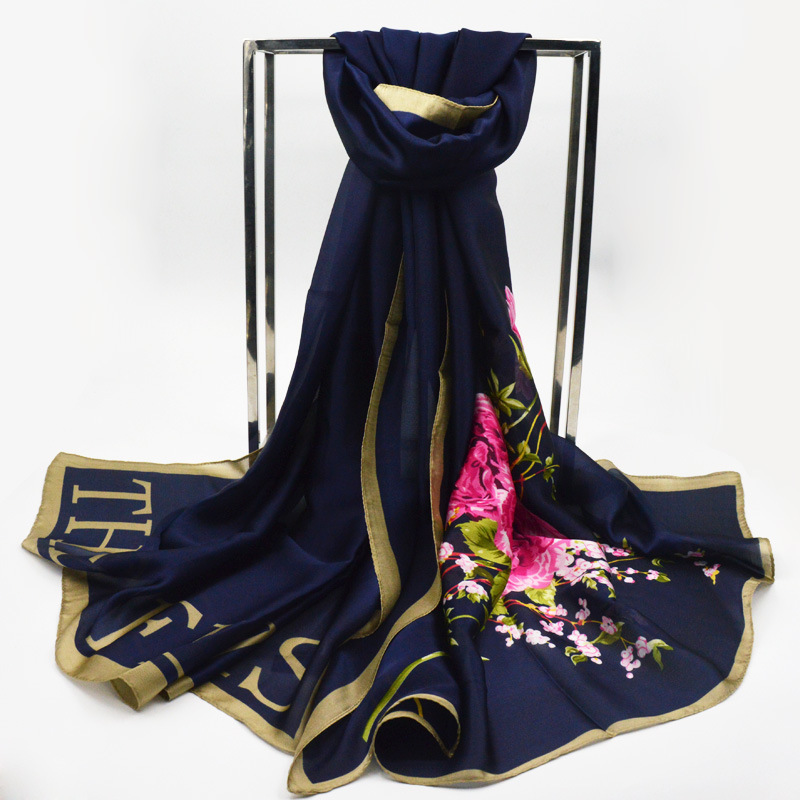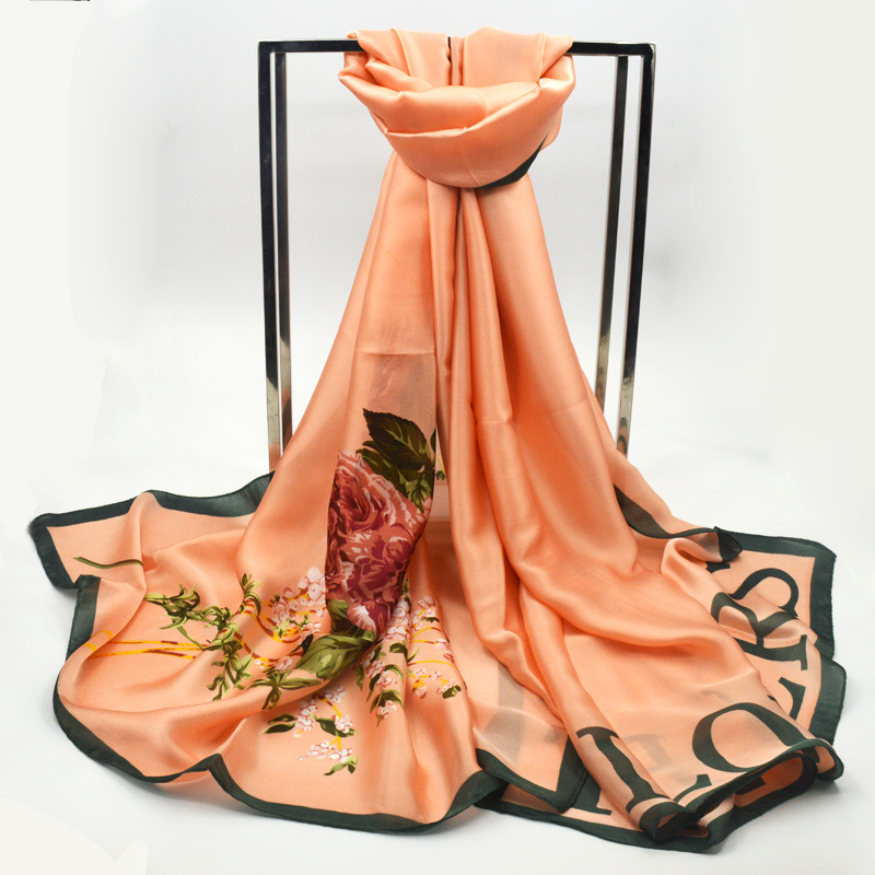 New floral print satin silk scarf female silk sunscreen beach towel autumn and winter silk scarf Cape dual-use