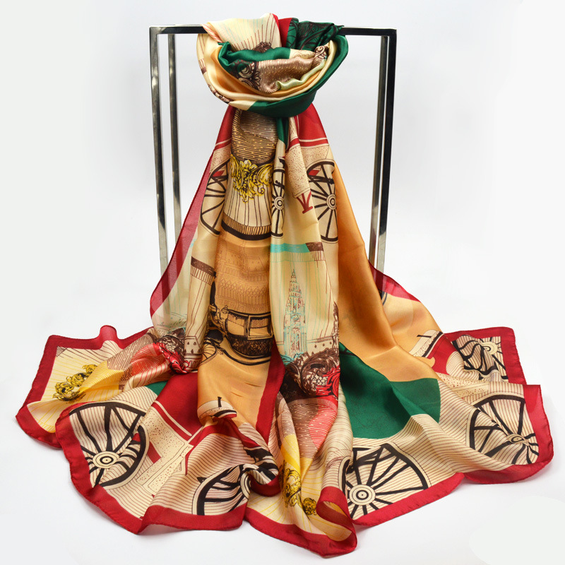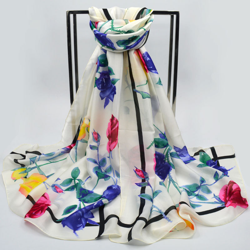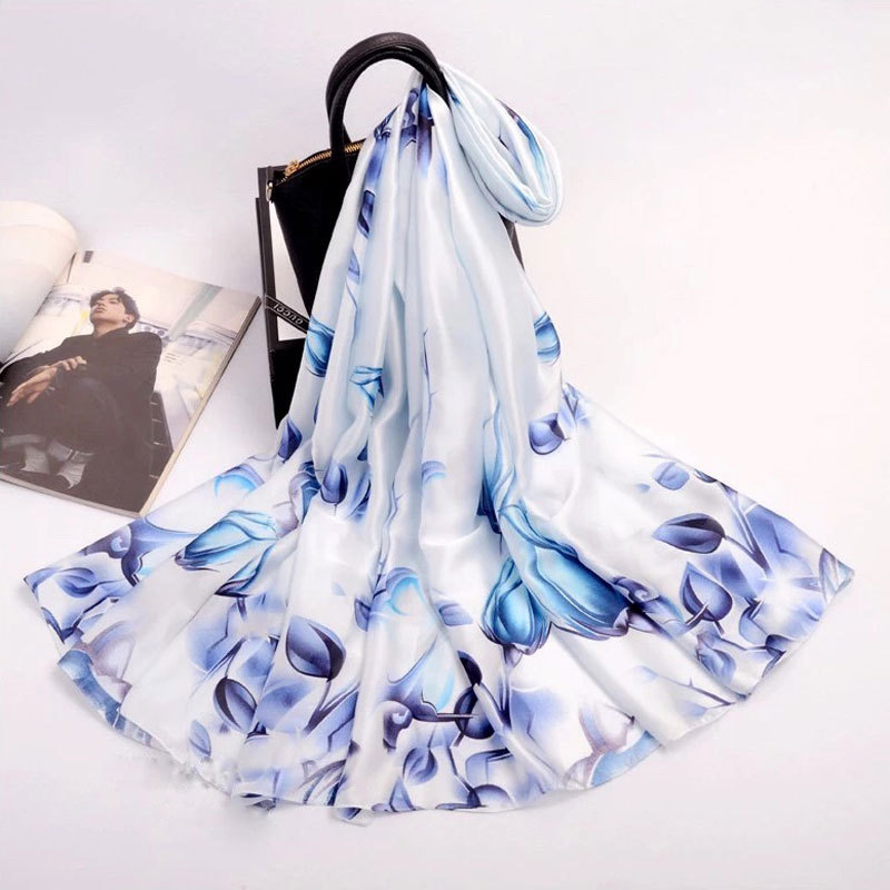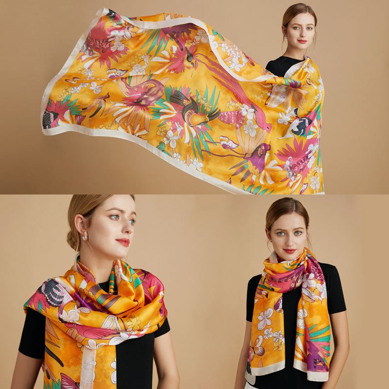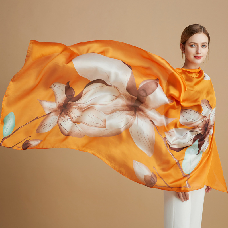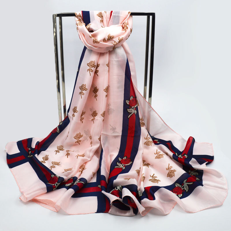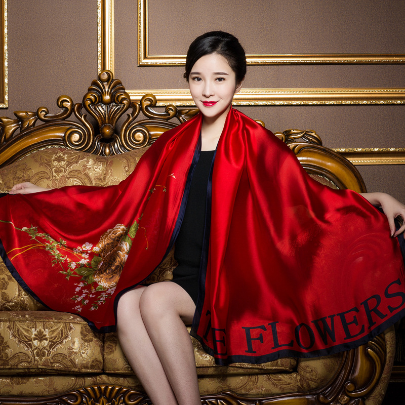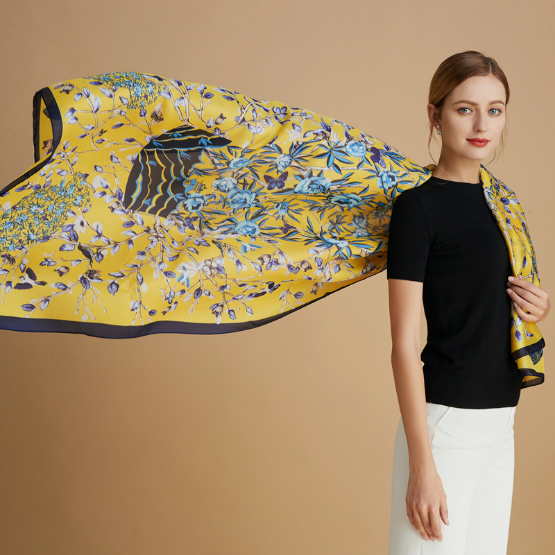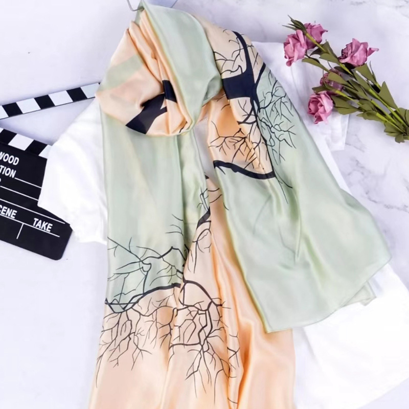 New floral print satin silk scarf female silk sunscreen beach towel autumn and winter silk scarf Cape dual-use