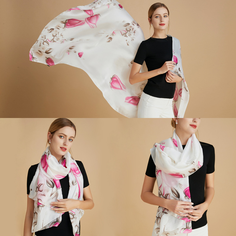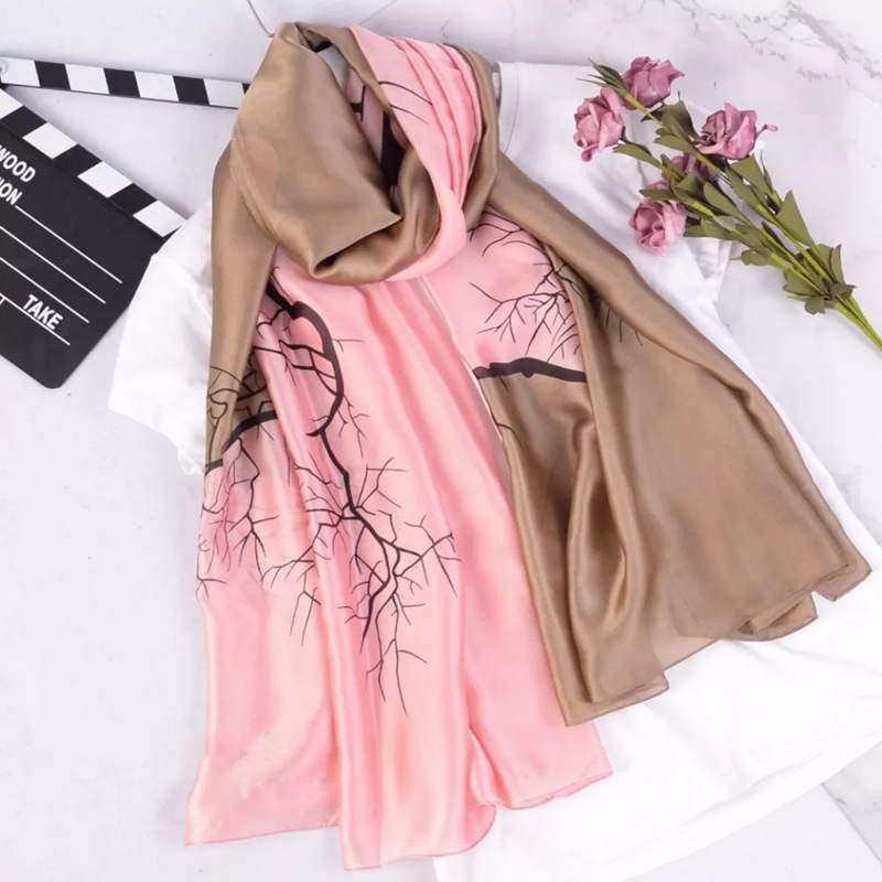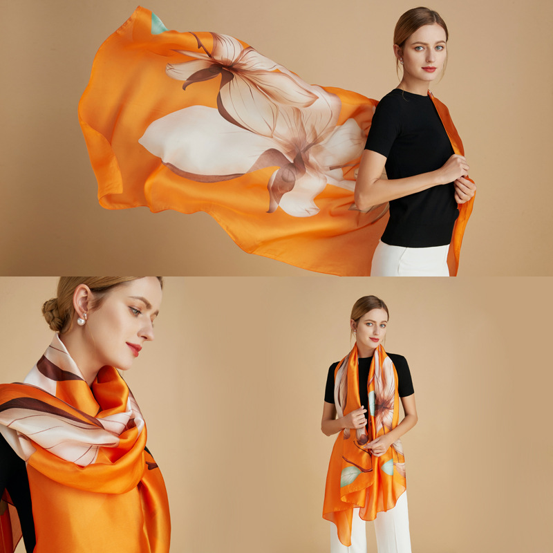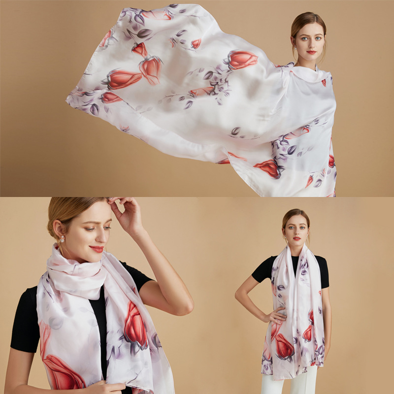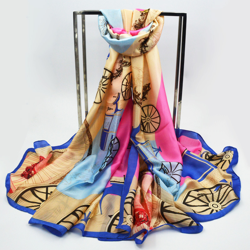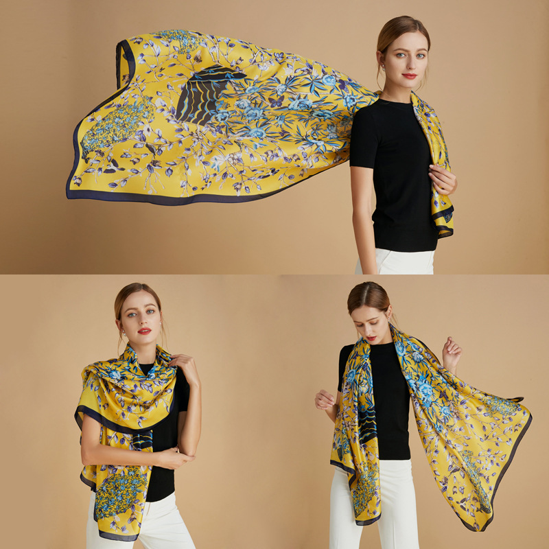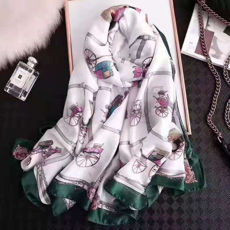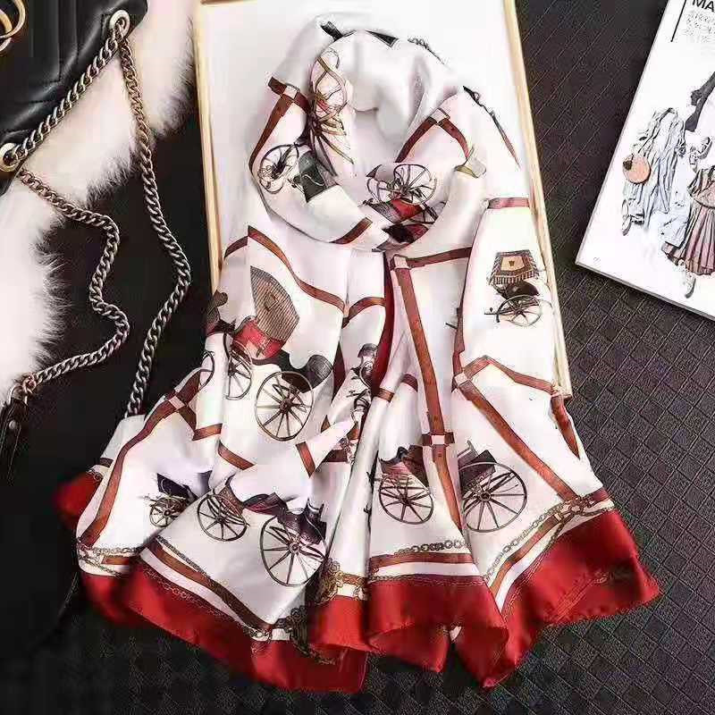 New floral print satin silk scarf female silk sunscreen beach towel autumn and winter silk scarf Cape dual-use