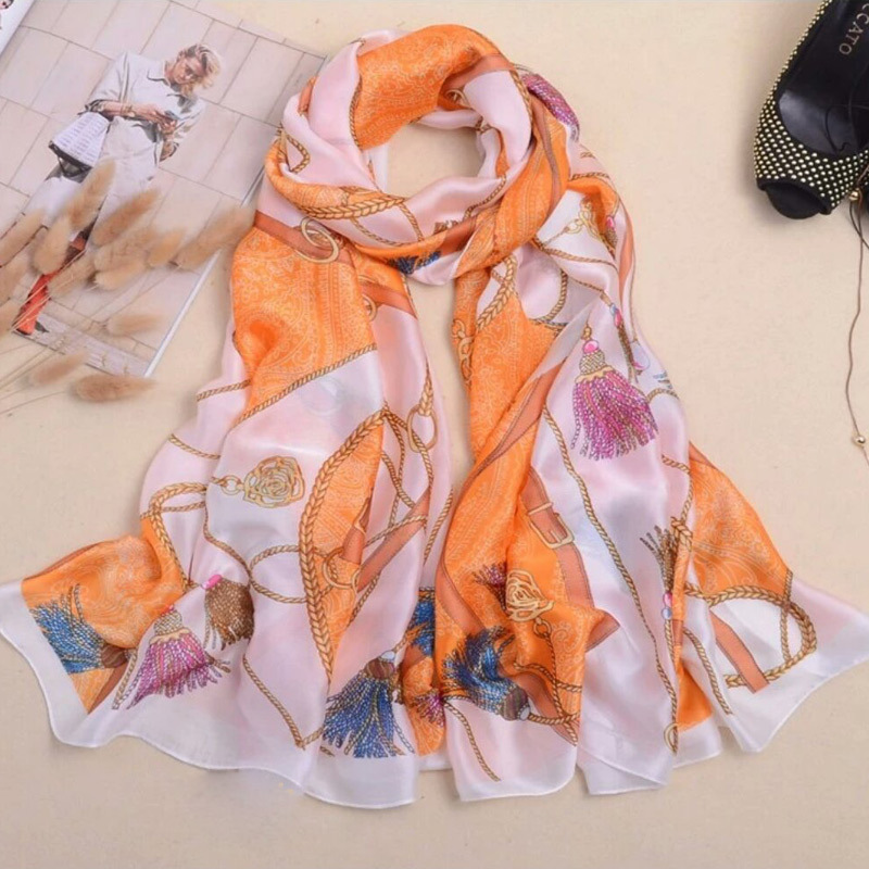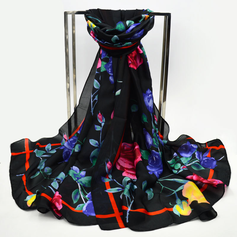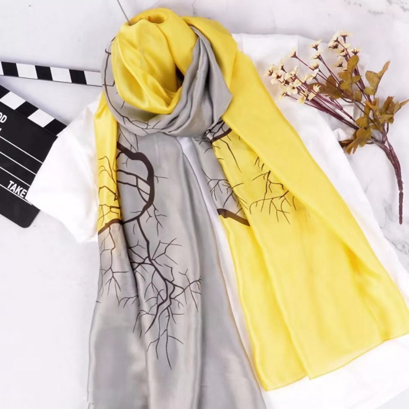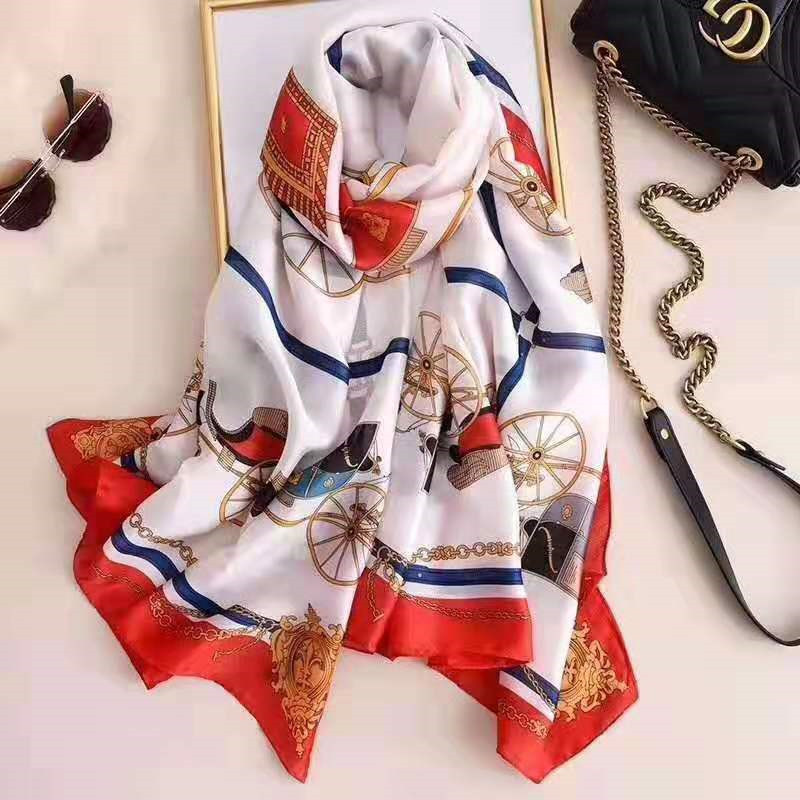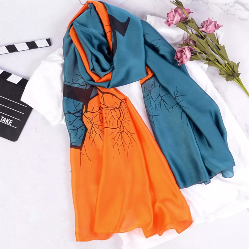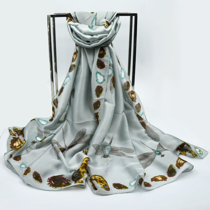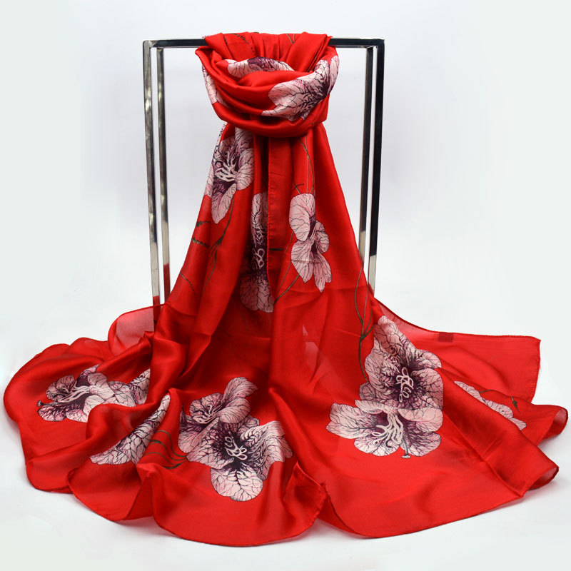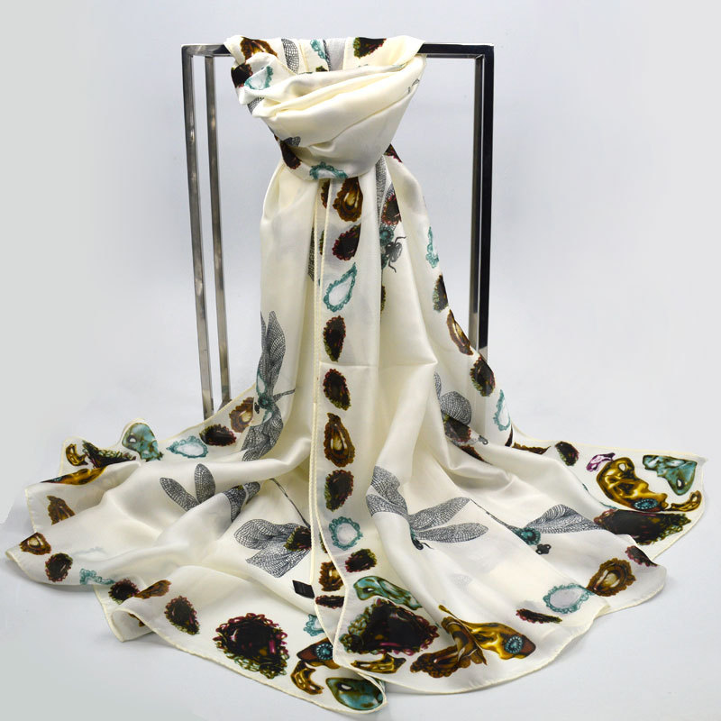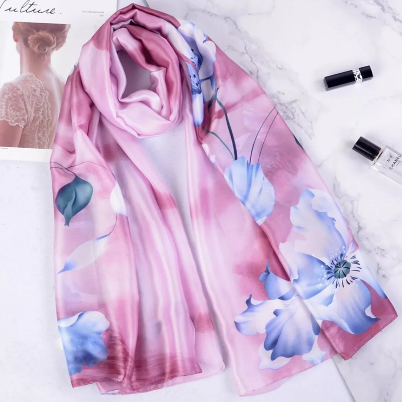 New floral print satin silk scarf female silk sunscreen beach towel autumn and winter silk scarf Cape dual-use