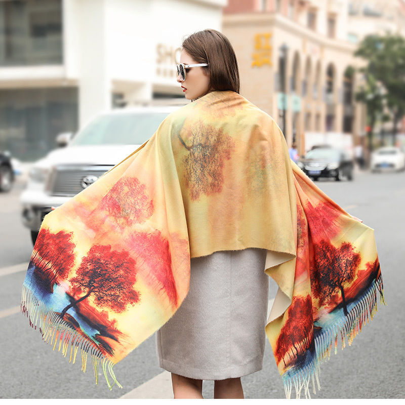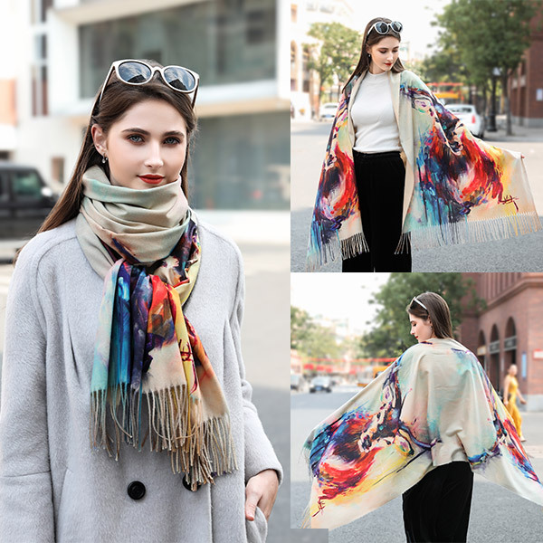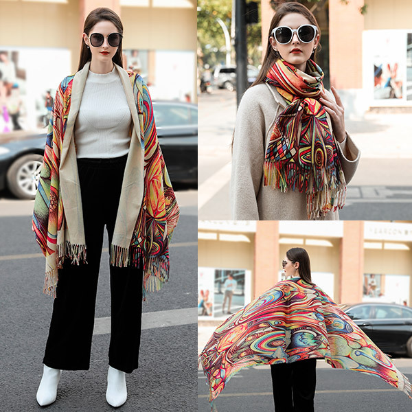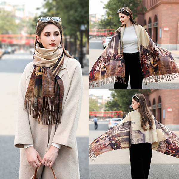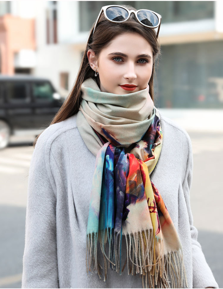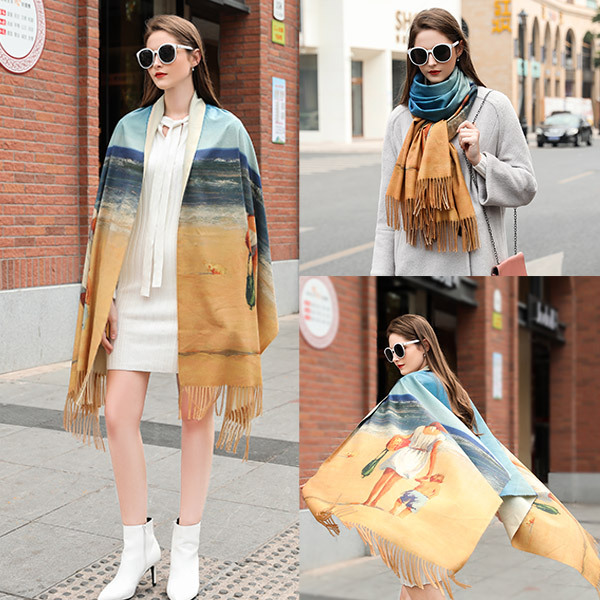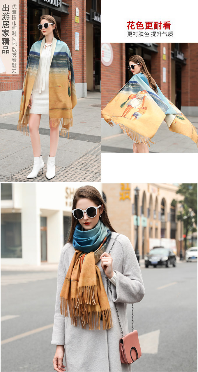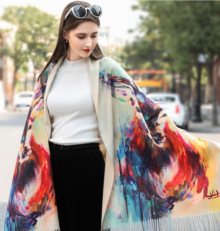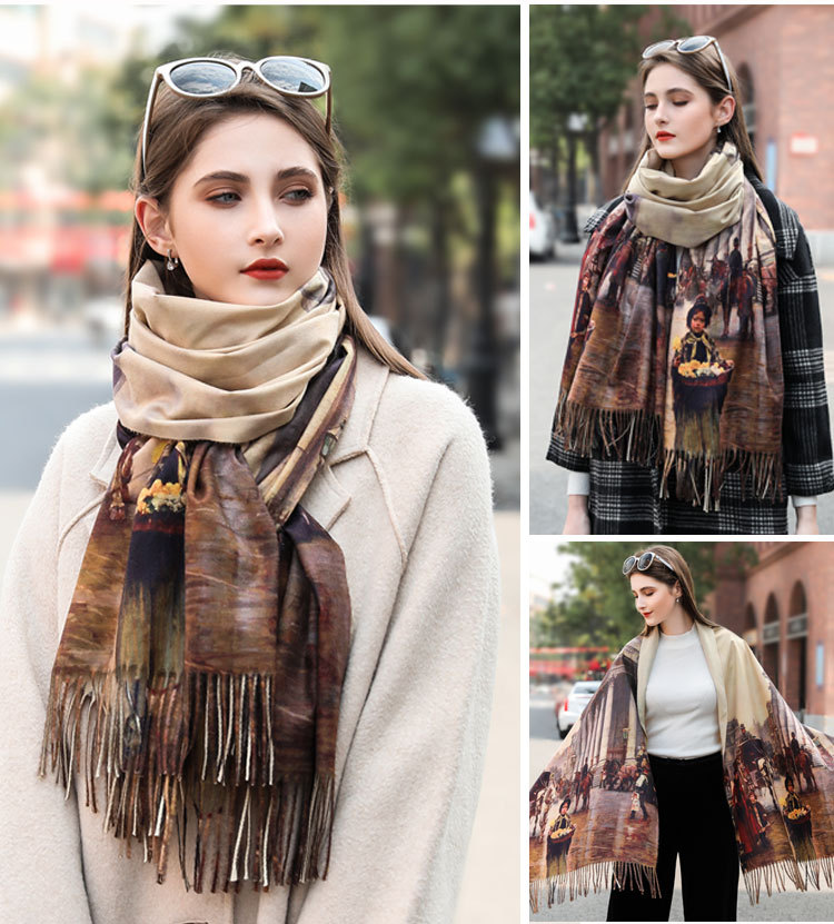 New scarf female Winter retro style Joker digital comic based temperament shawl warm scarf shawl dual-use