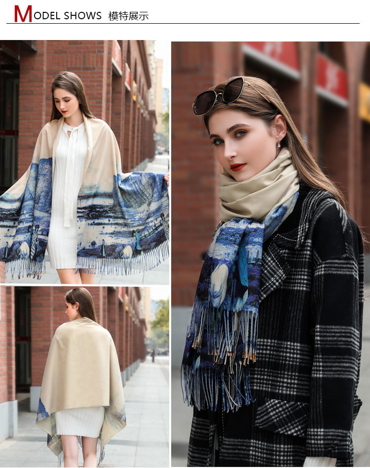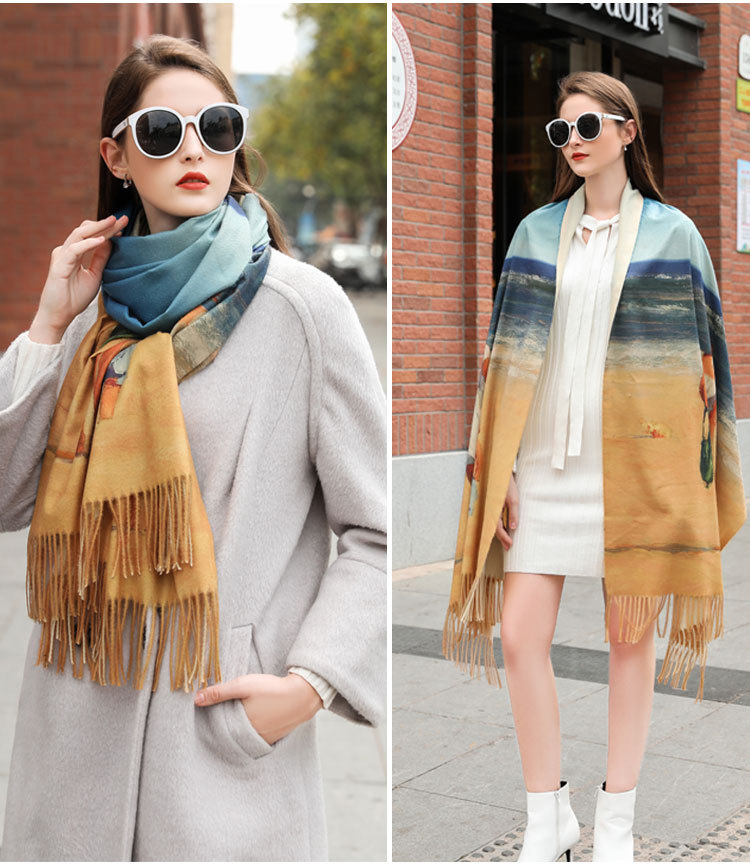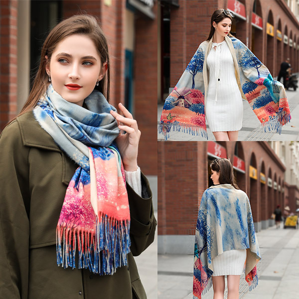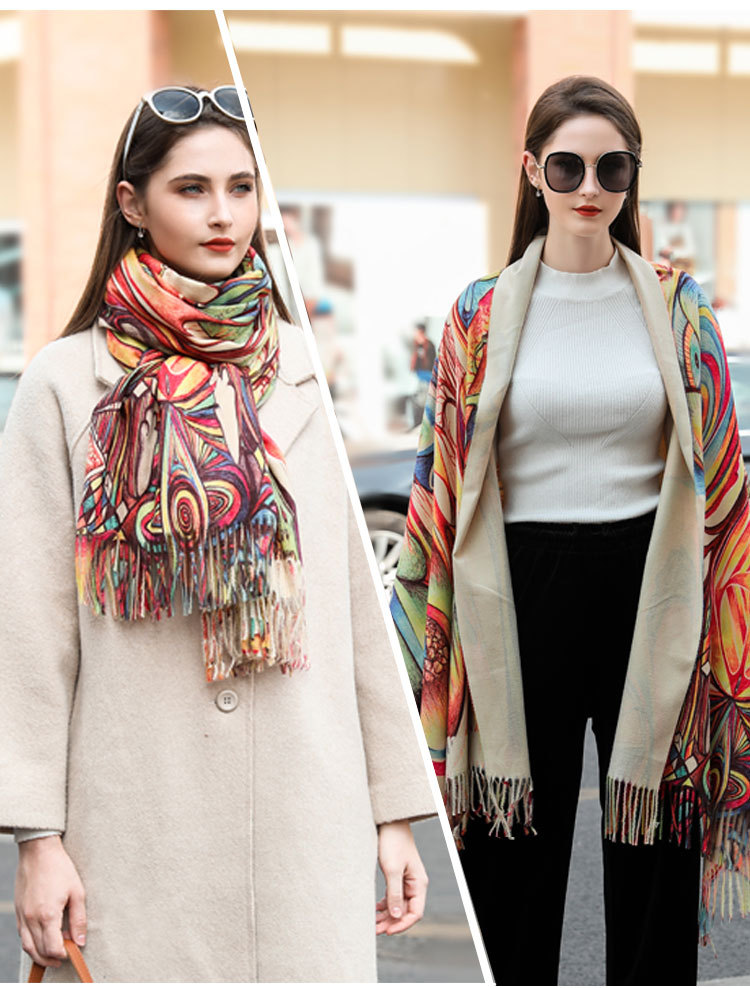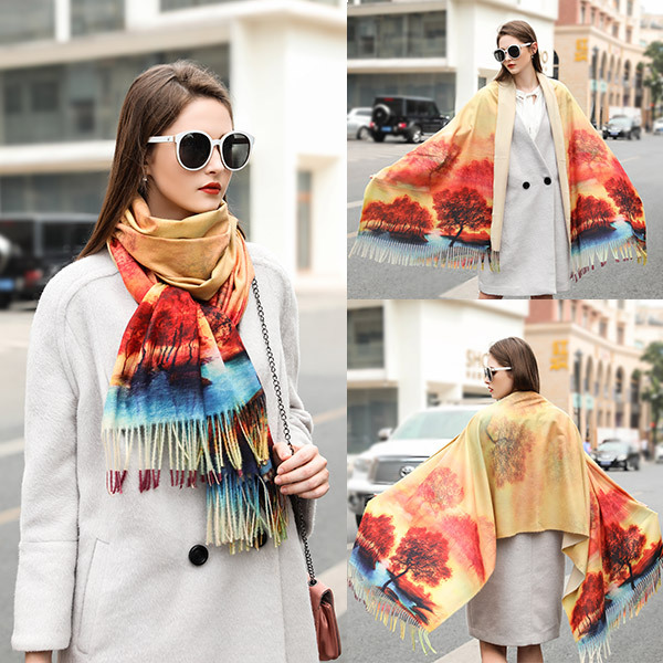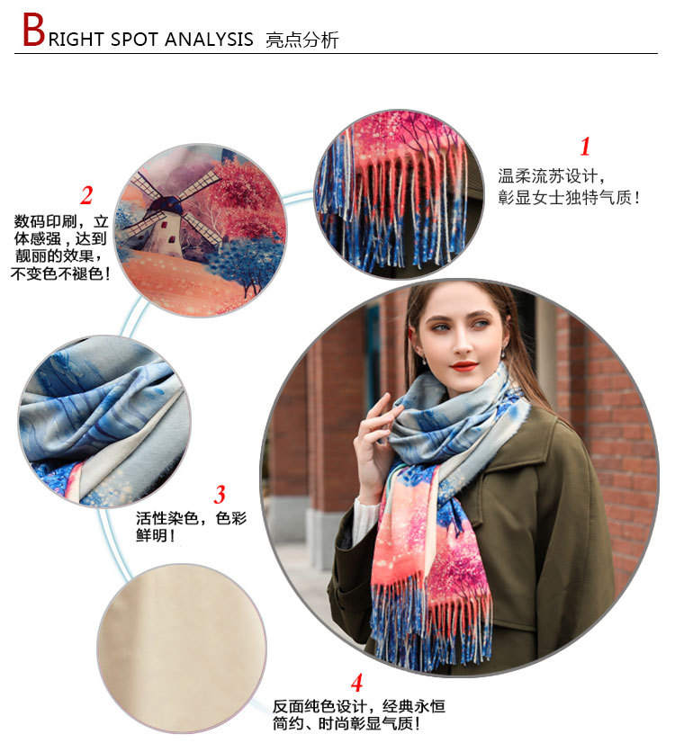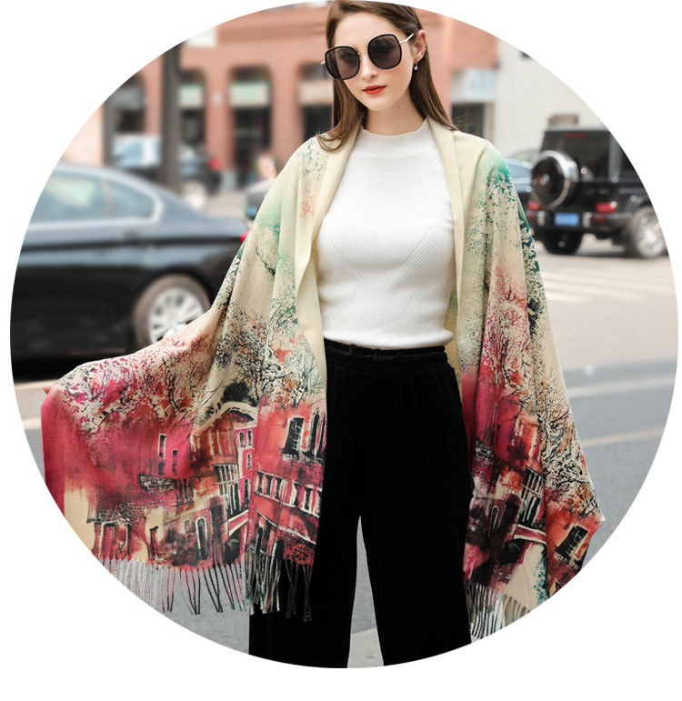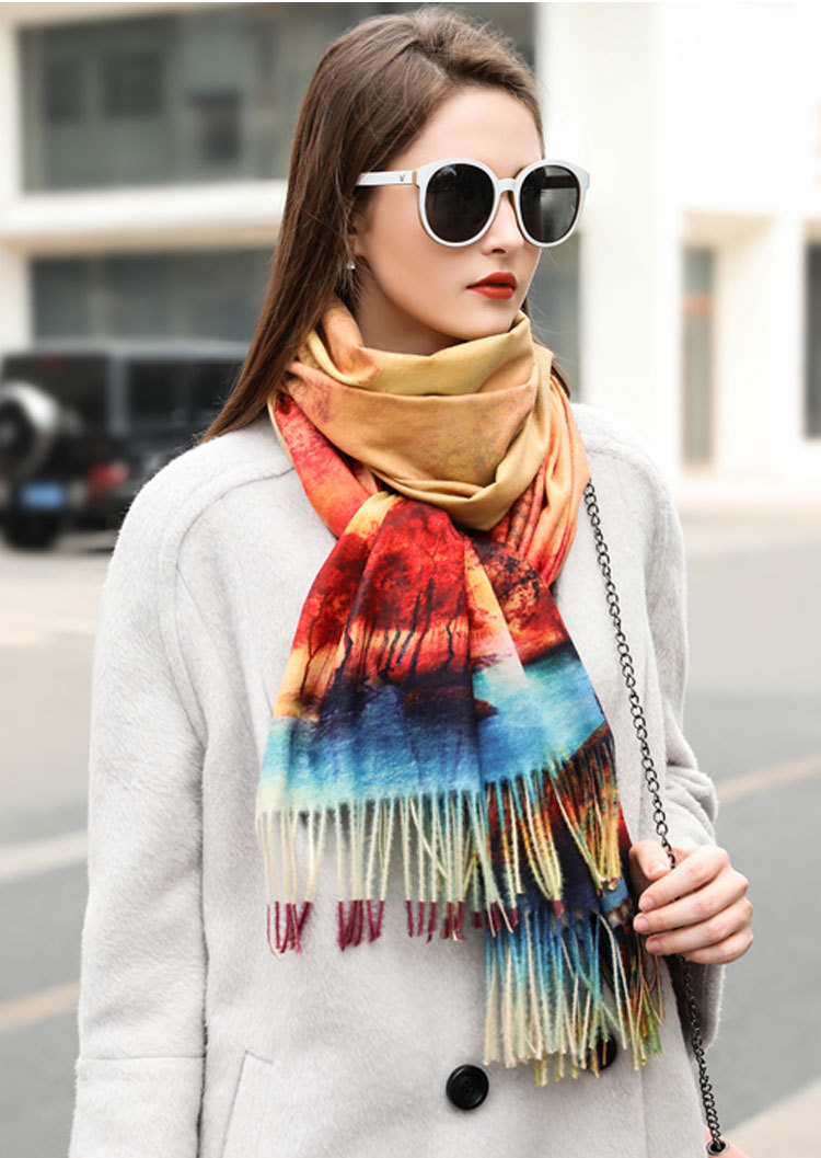 New scarf female Winter retro style Joker digital comic based temperament shawl warm scarf shawl dual-use