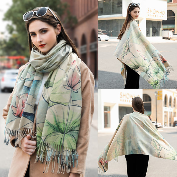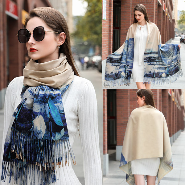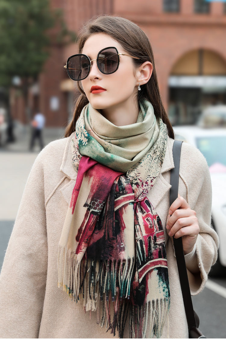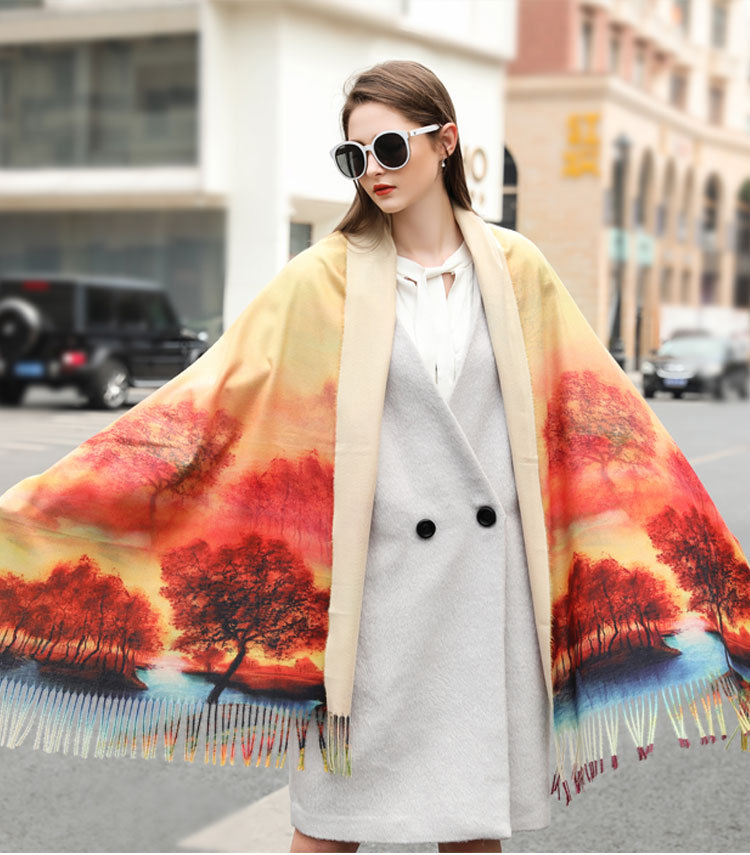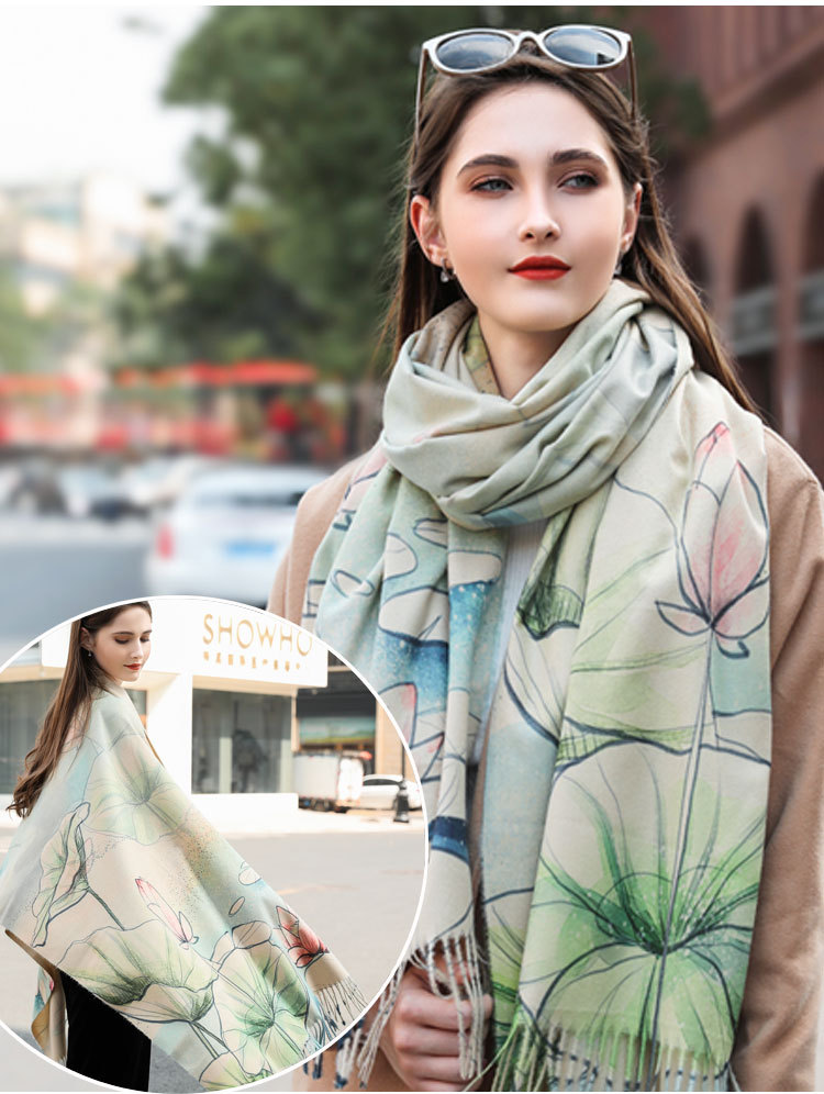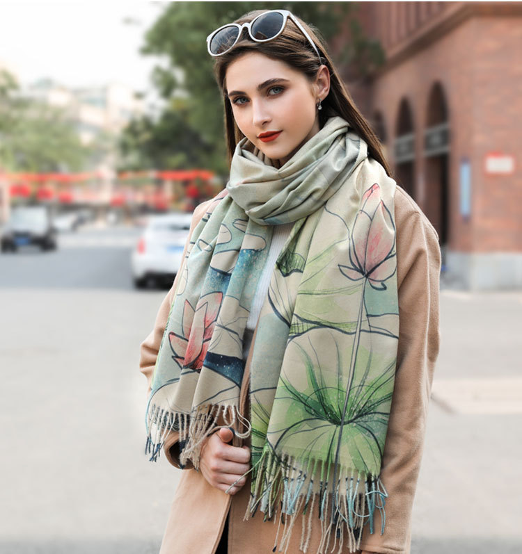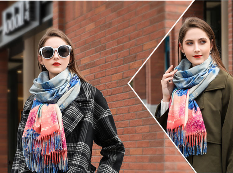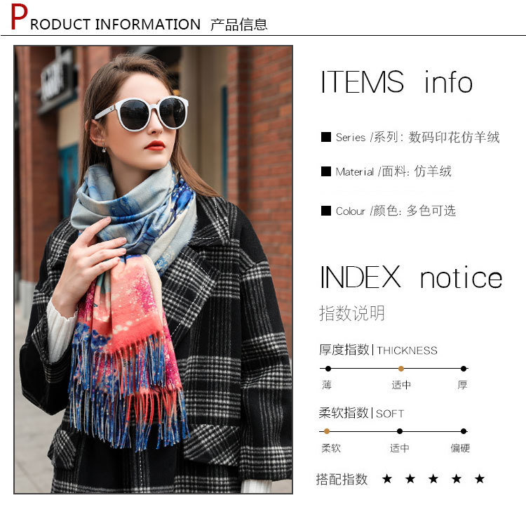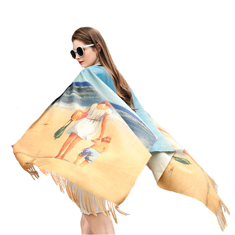 New scarf female Winter retro style Joker digital comic based temperament shawl warm scarf shawl dual-use