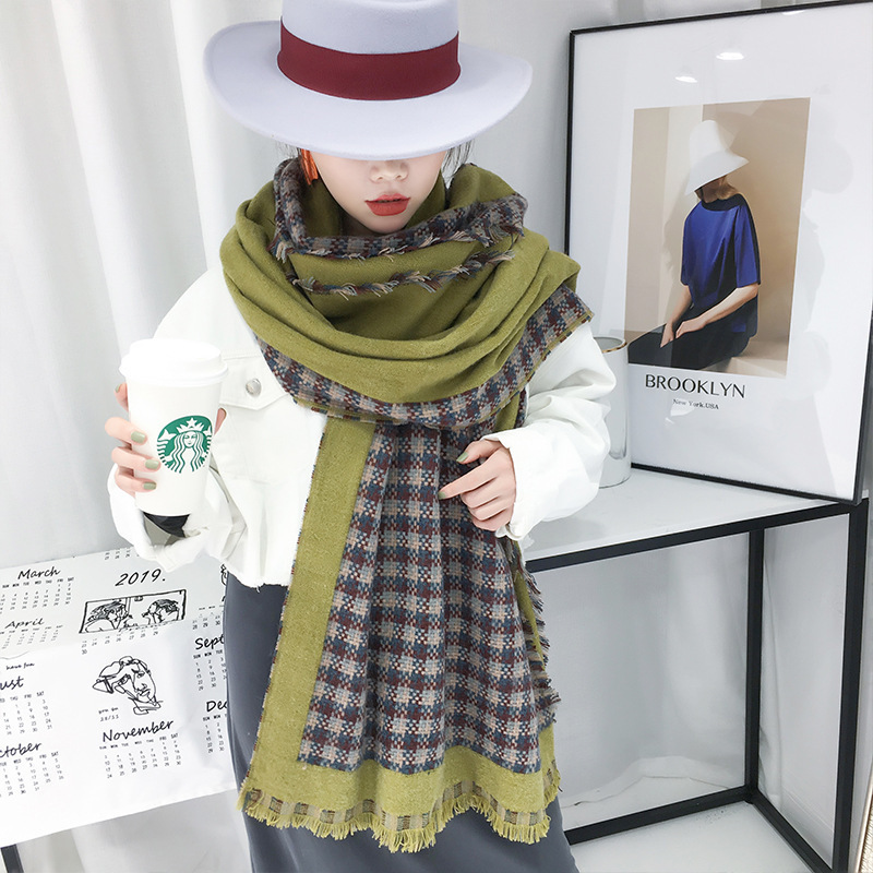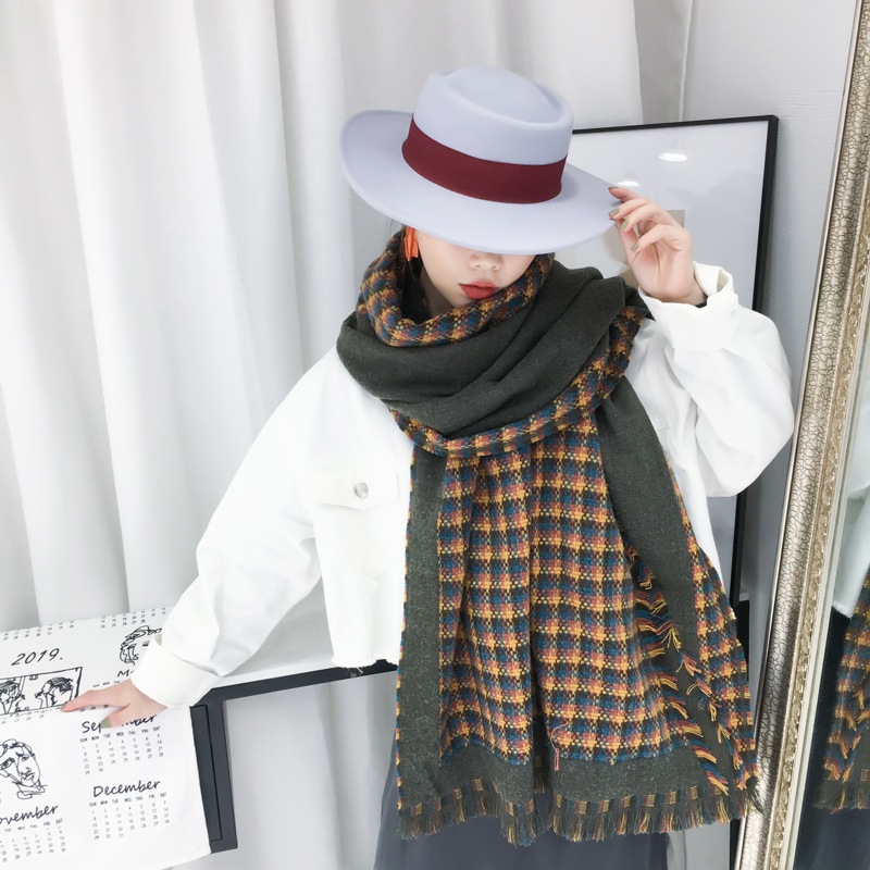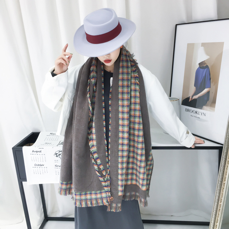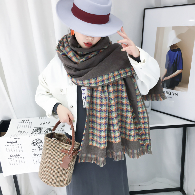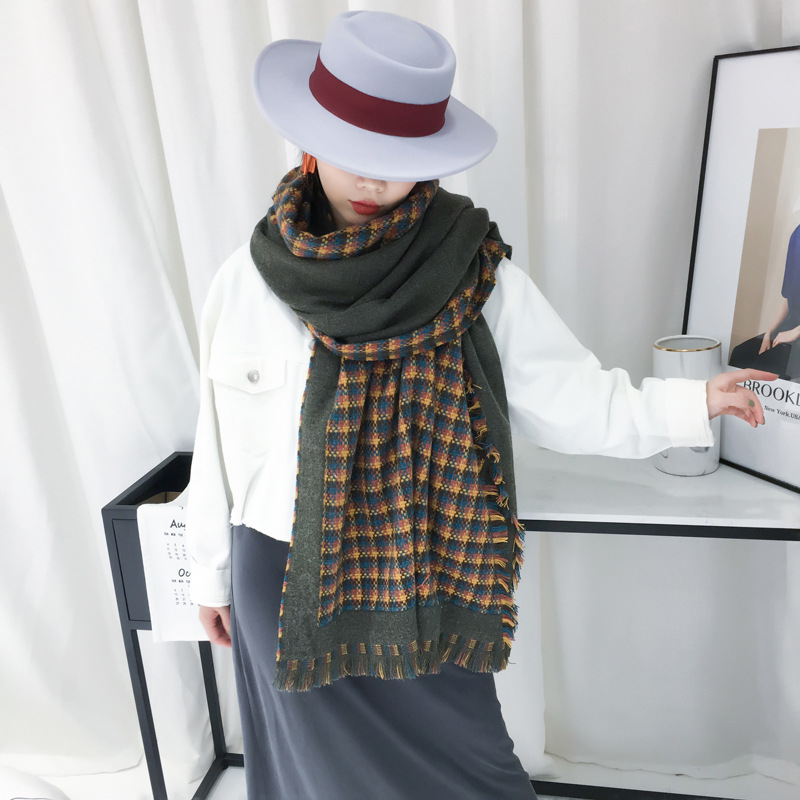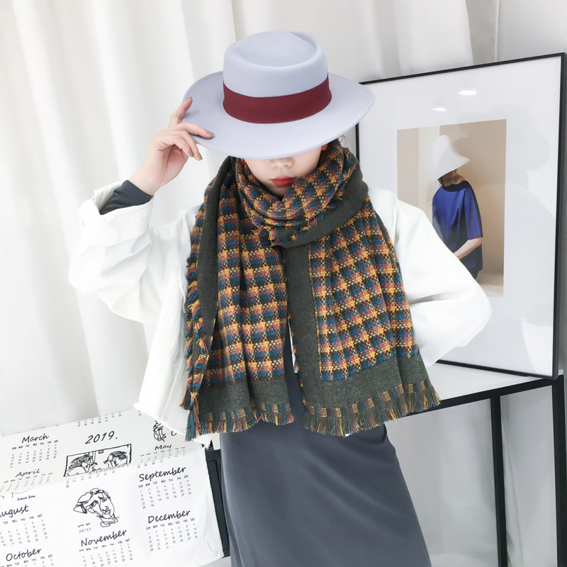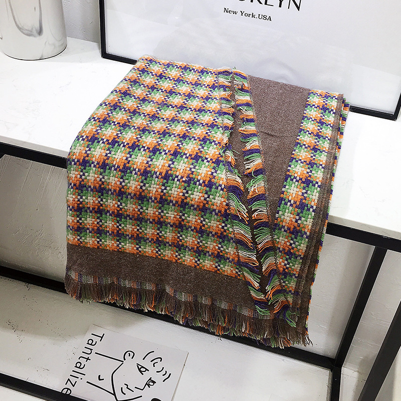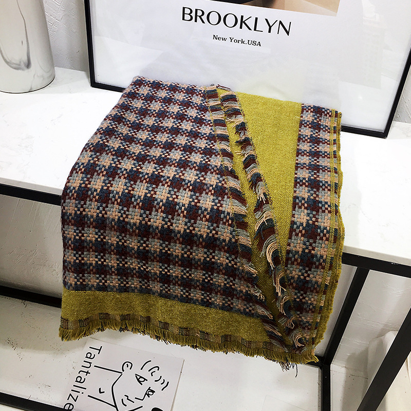 New winter plus thick shawl fashion Wild hit color woven cashmere scarf spell color dispersion to be dual-use bib