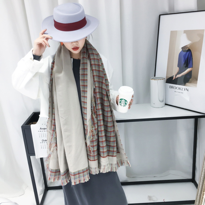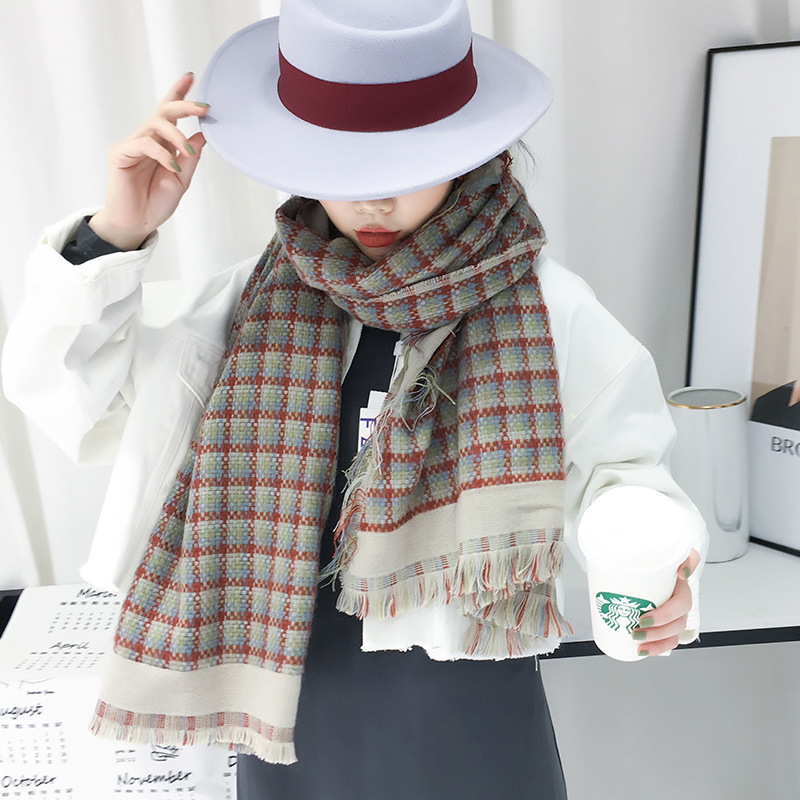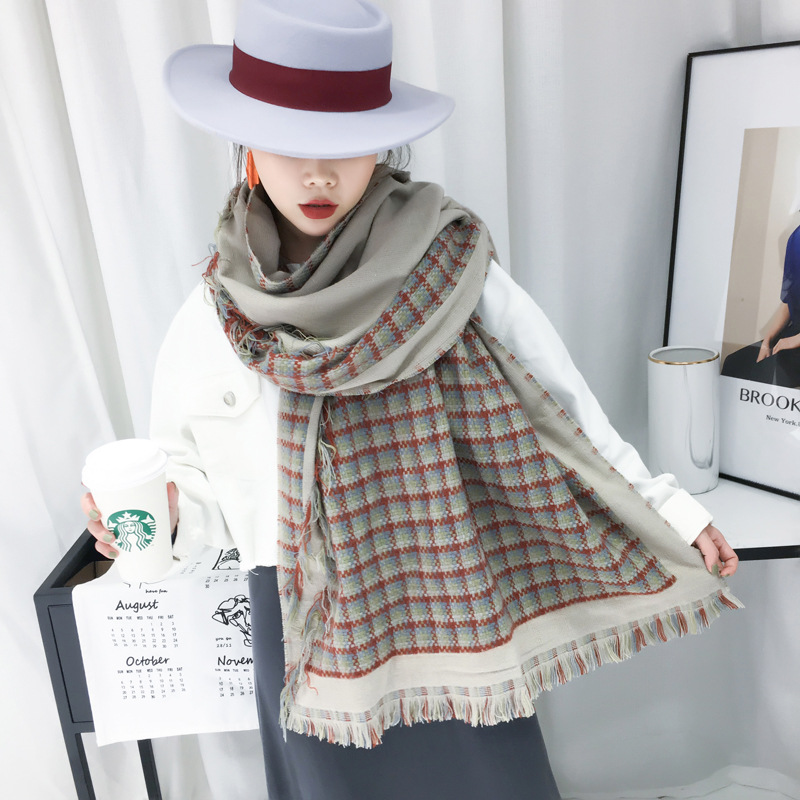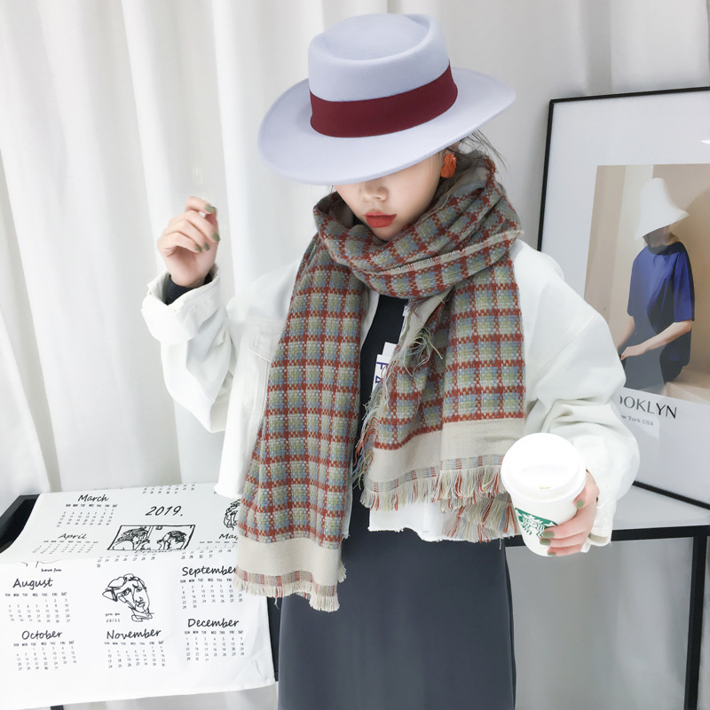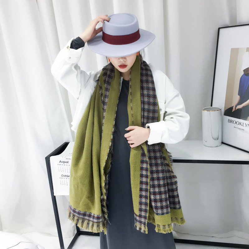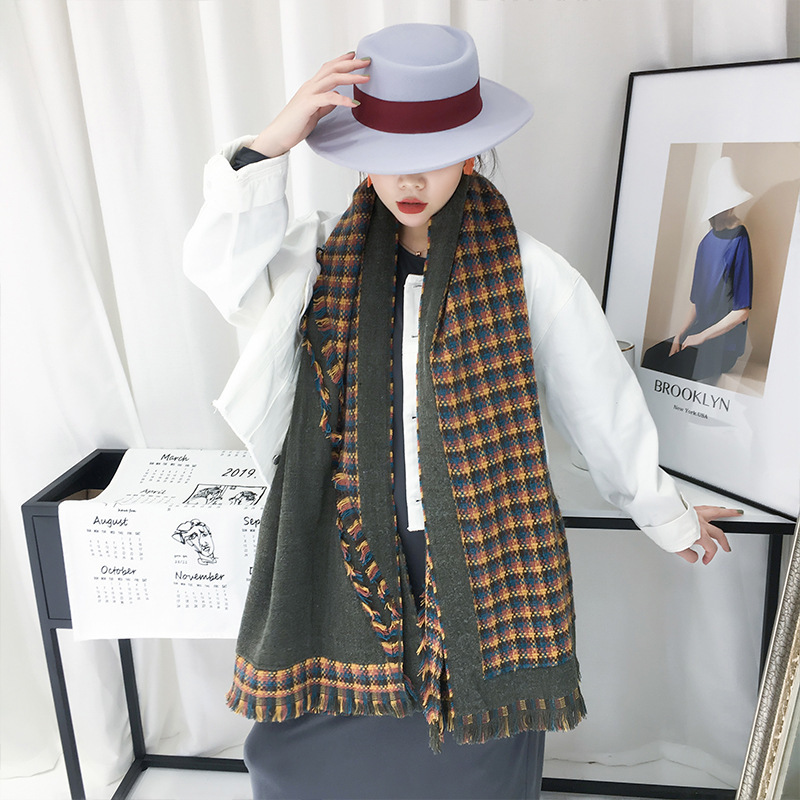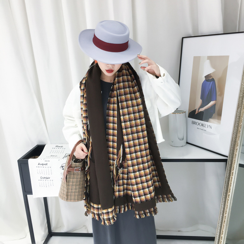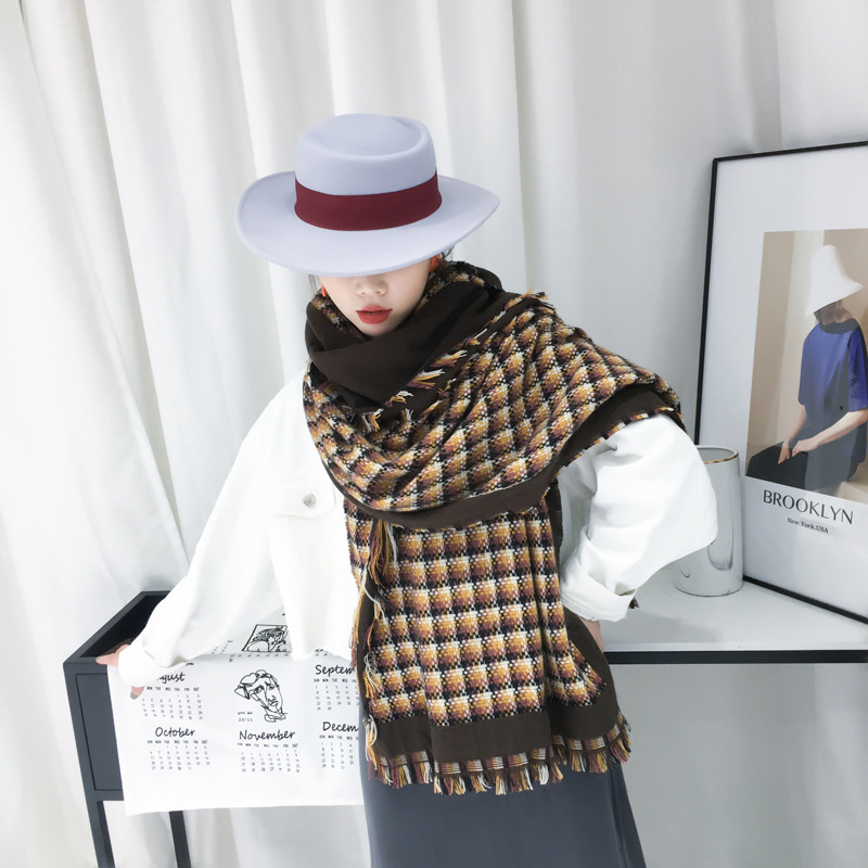 New winter plus thick shawl fashion Wild hit color woven cashmere scarf spell color dispersion to be dual-use bib