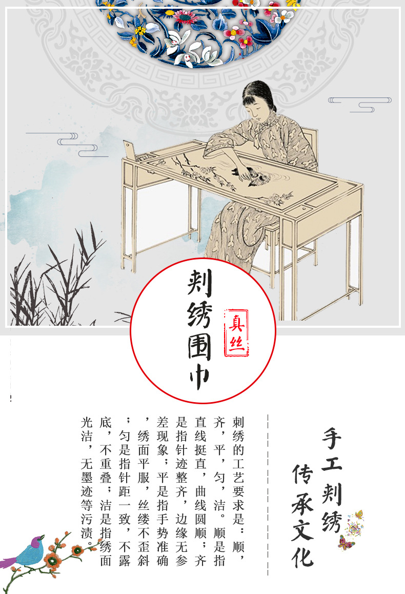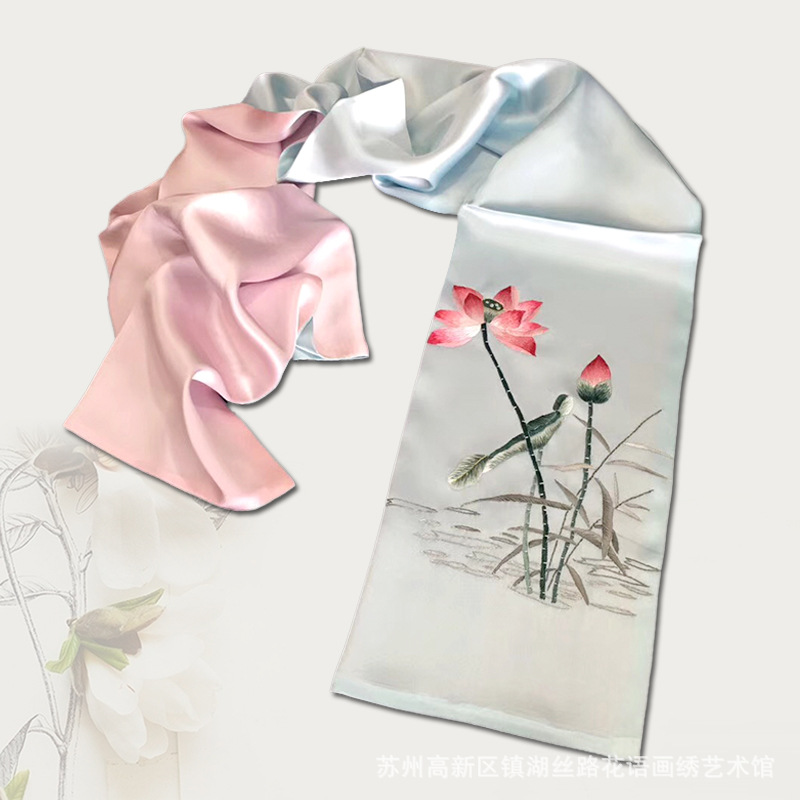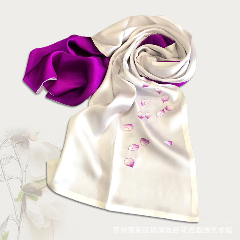 Su embroidery high end silk scarves hand embroidery scarves female shawl boutique embroidery scarf luxury scarf gift box