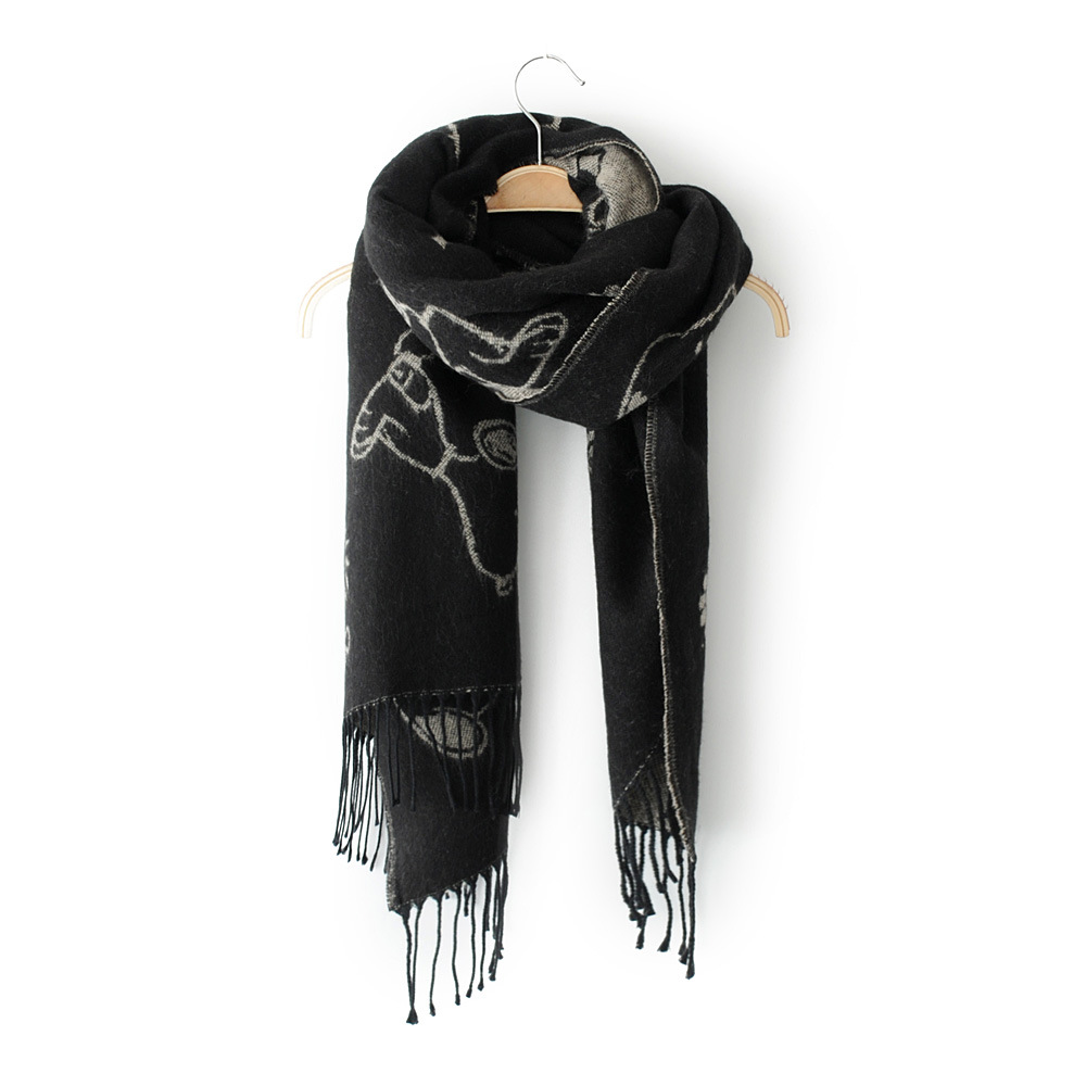 The new Japanese single cute dog tassel scarf shawl winter imitation cashmere students cartoon scarf