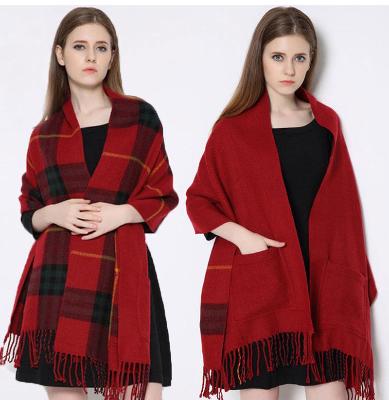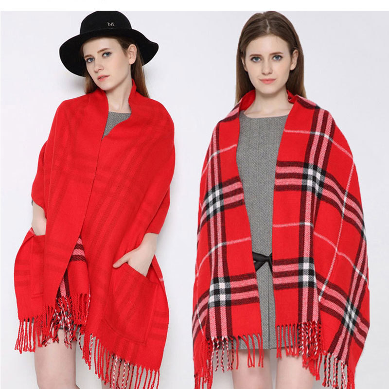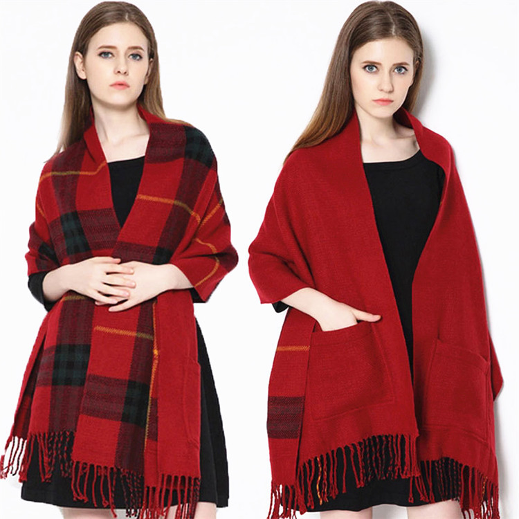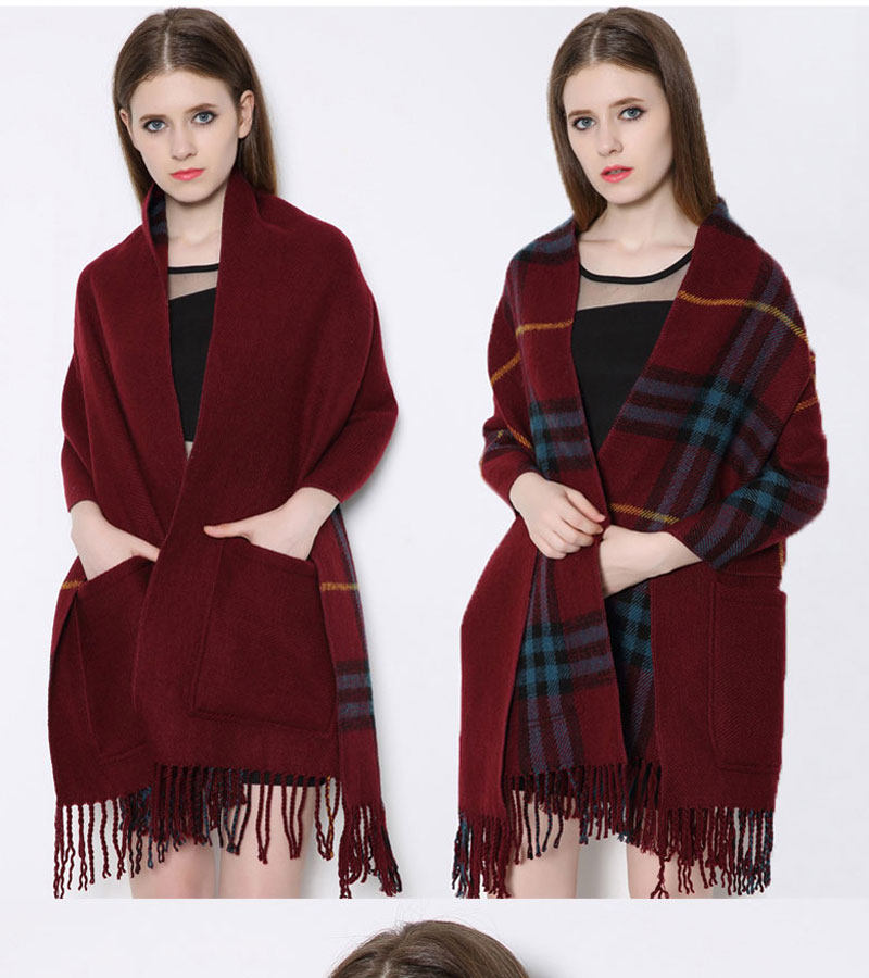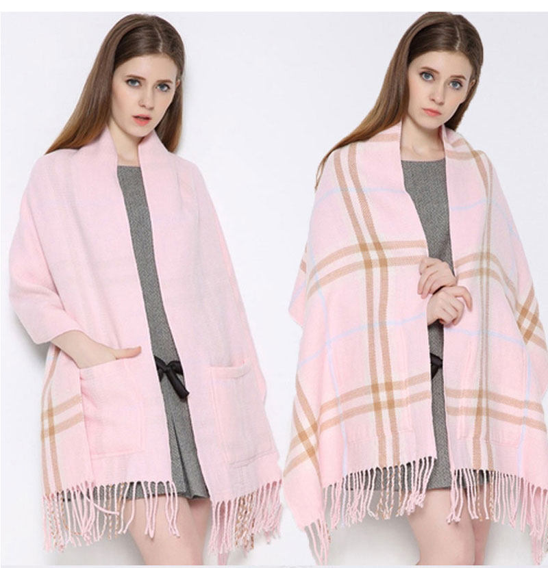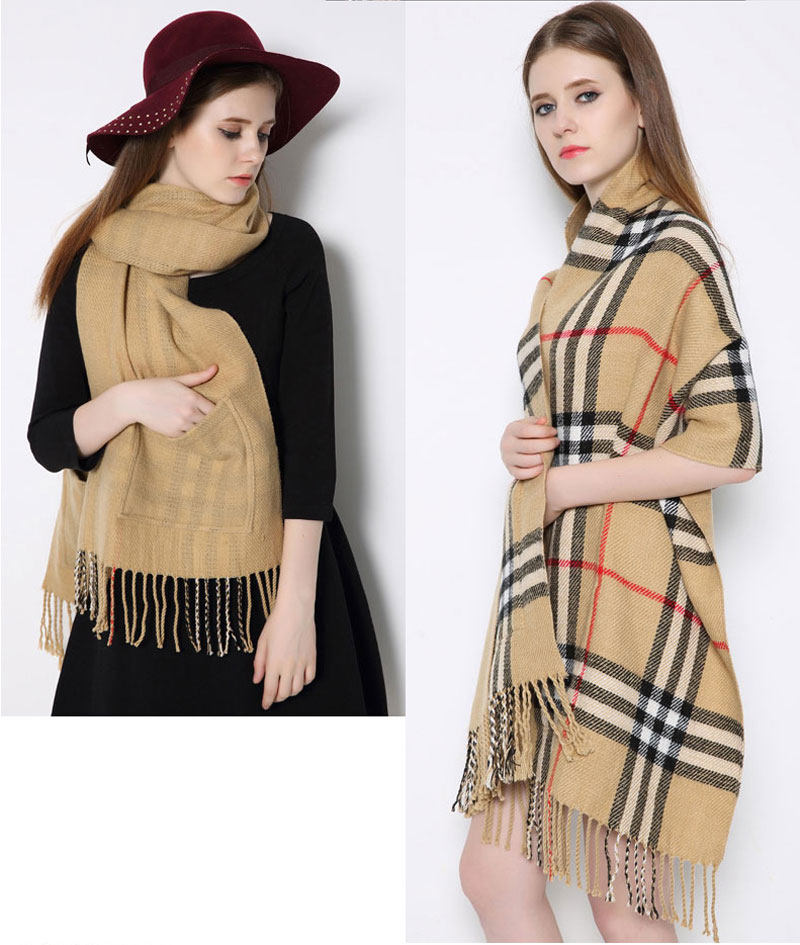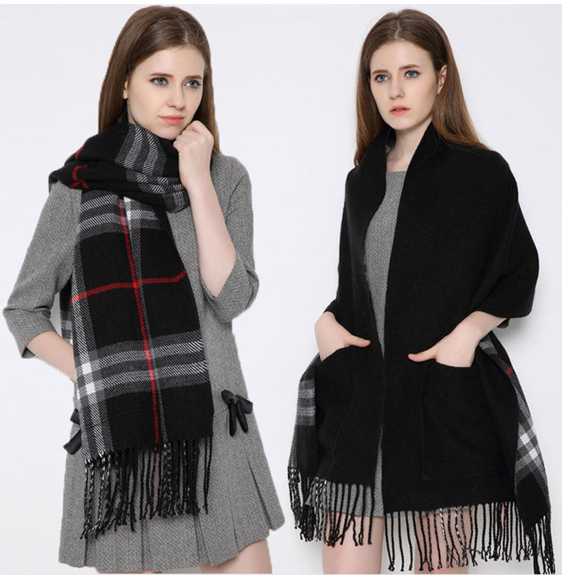 The new pocket woolen yarn autumn and winter female scarf shawl plaid cashmere shawl British double-sided thermal custom