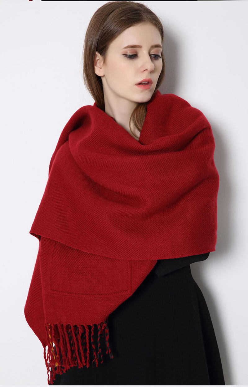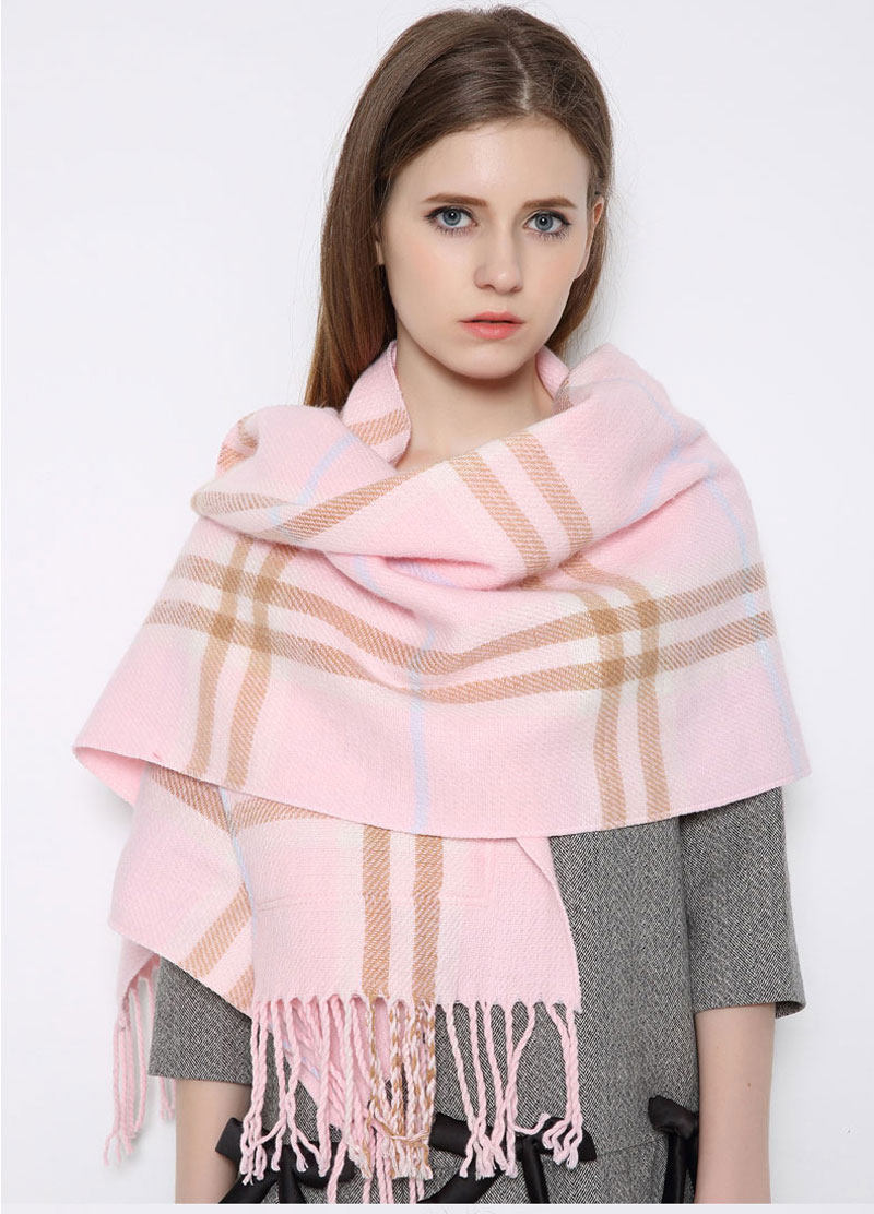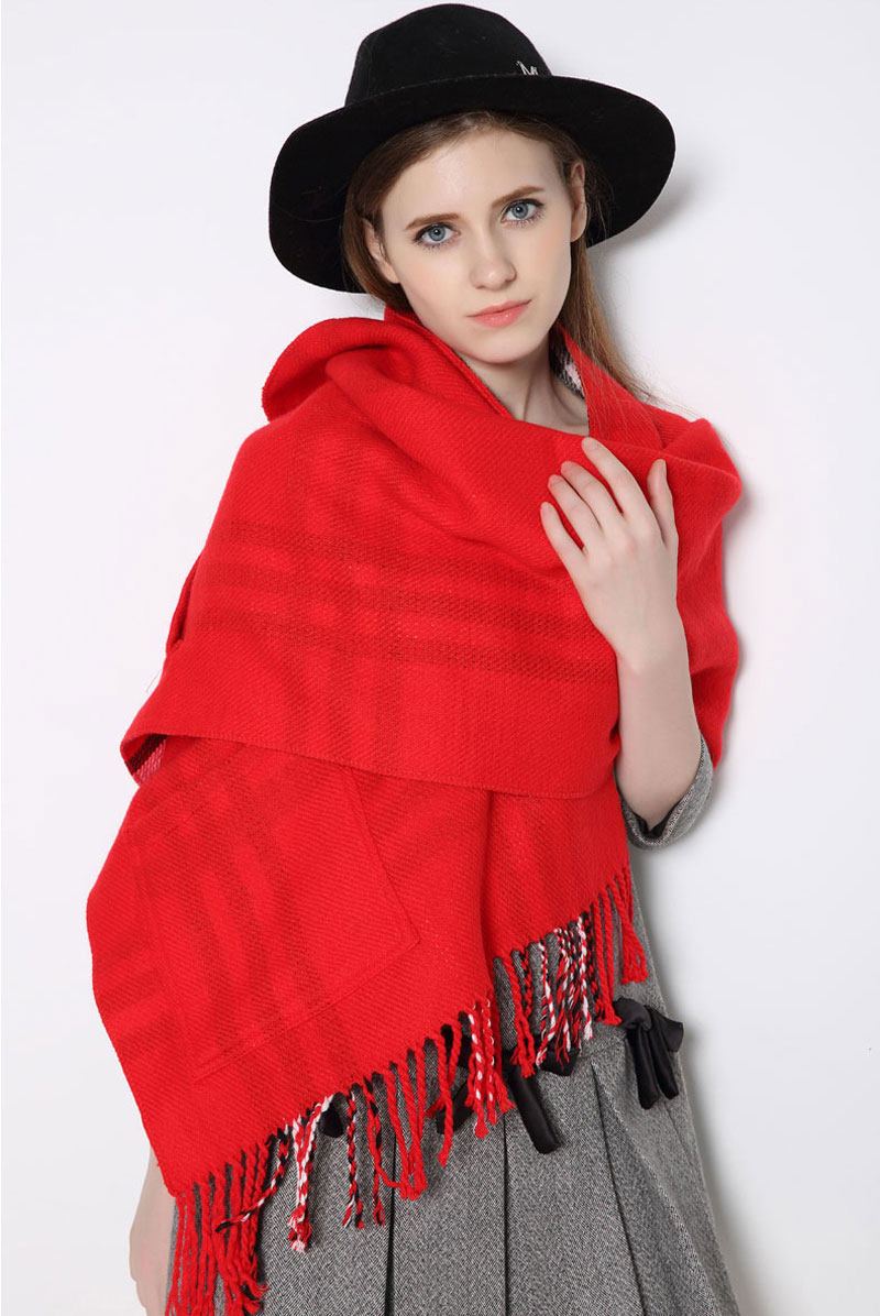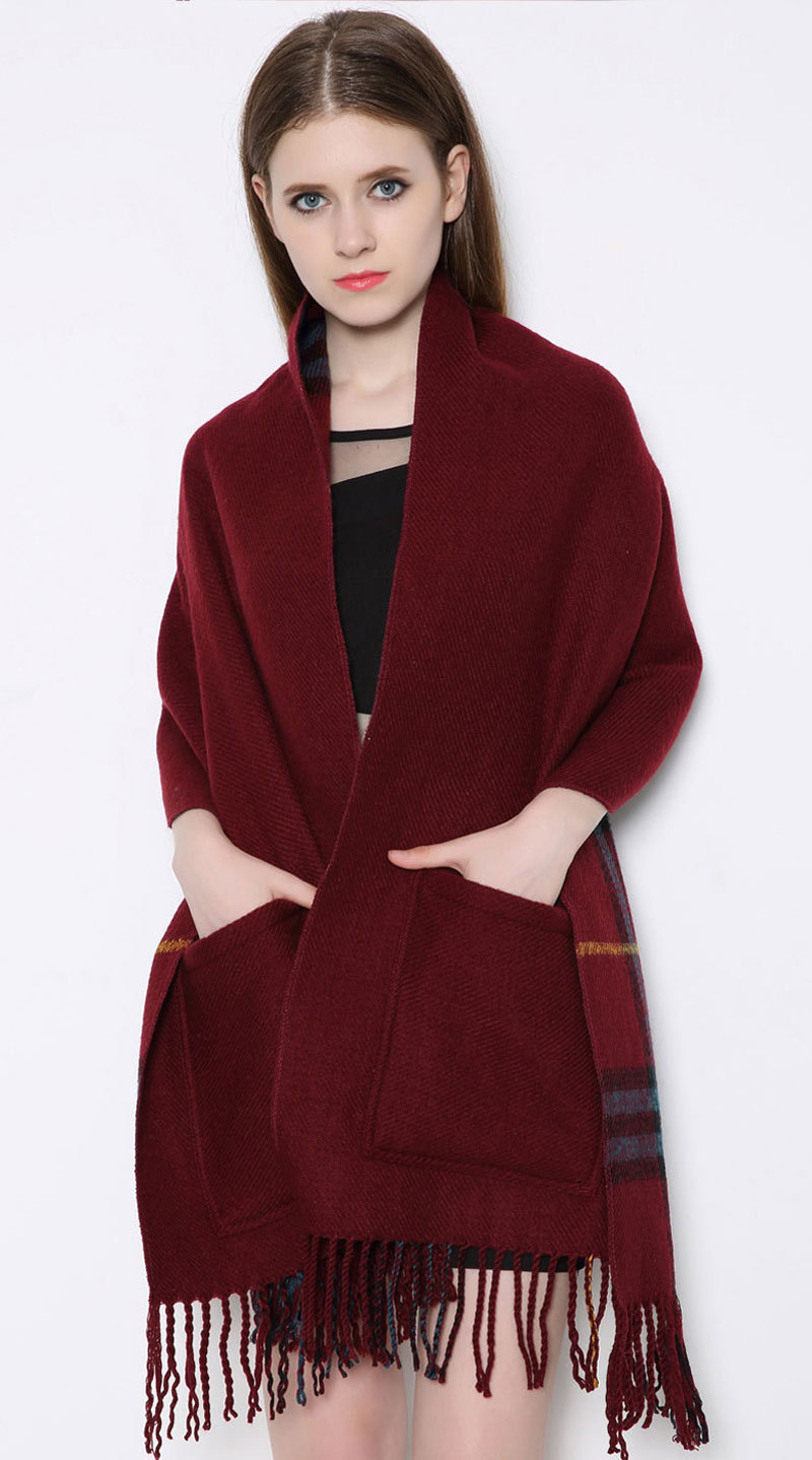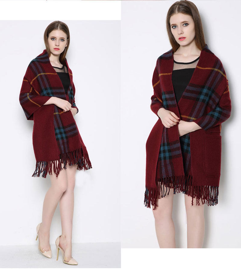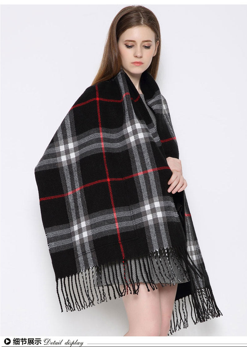 The new pocket woolen yarn autumn and winter female scarf shawl plaid cashmere shawl British double-sided thermal custom