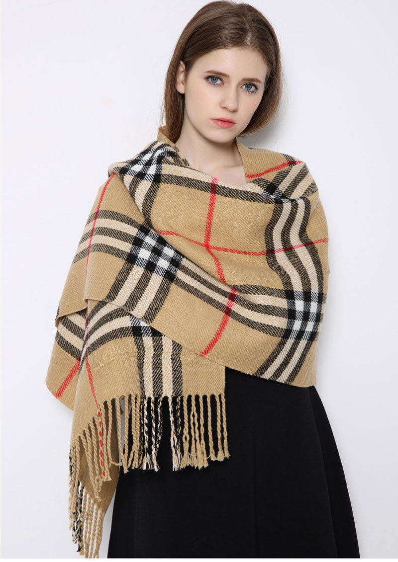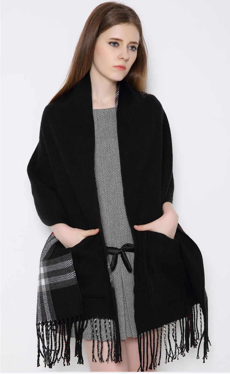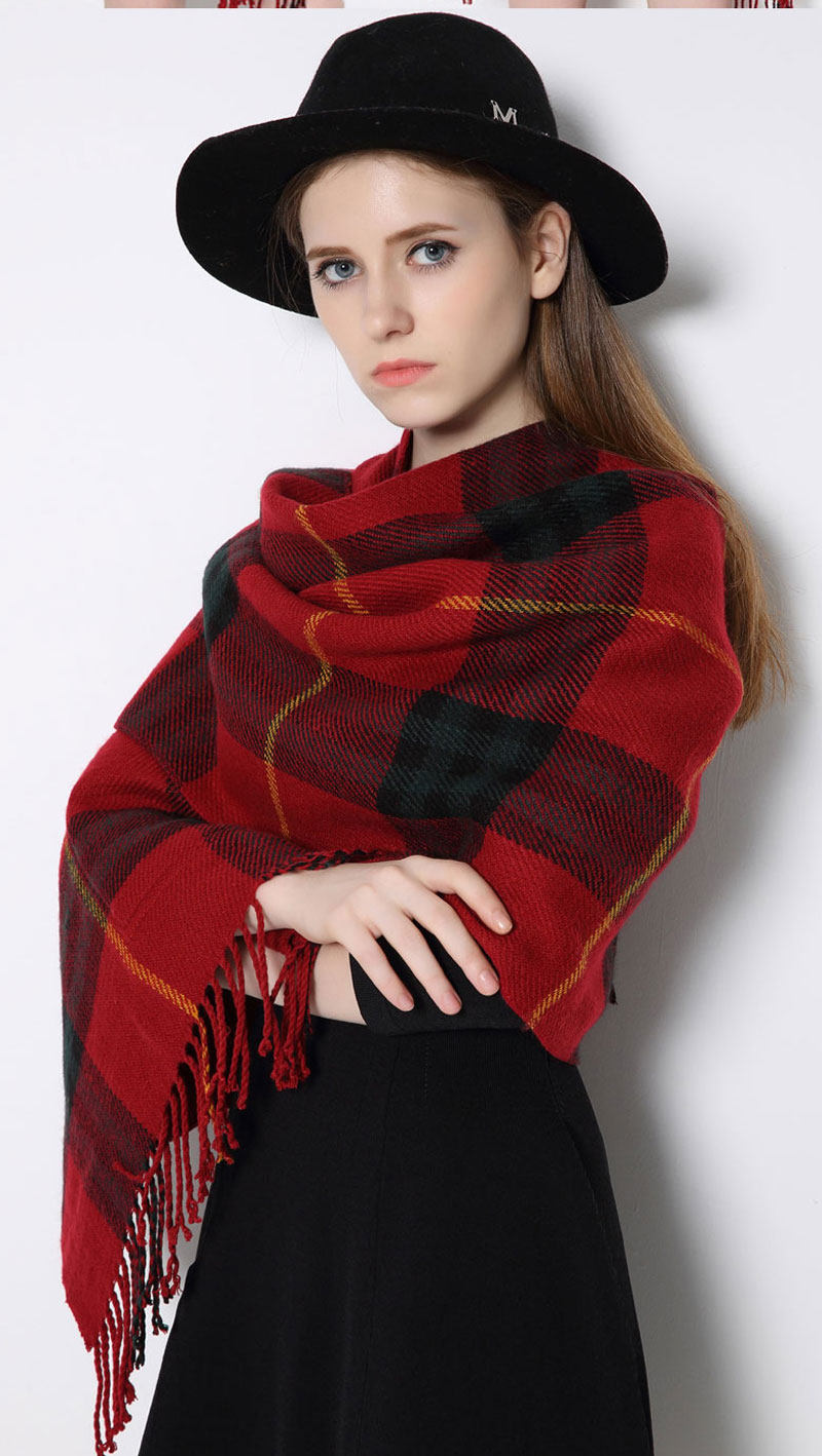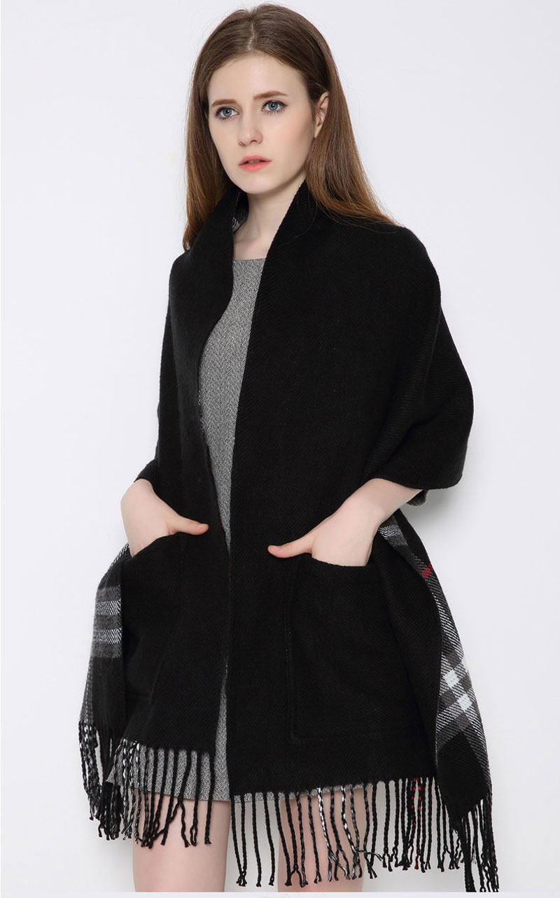 The new pocket woolen yarn autumn and winter female scarf shawl plaid cashmere shawl British double-sided thermal custom