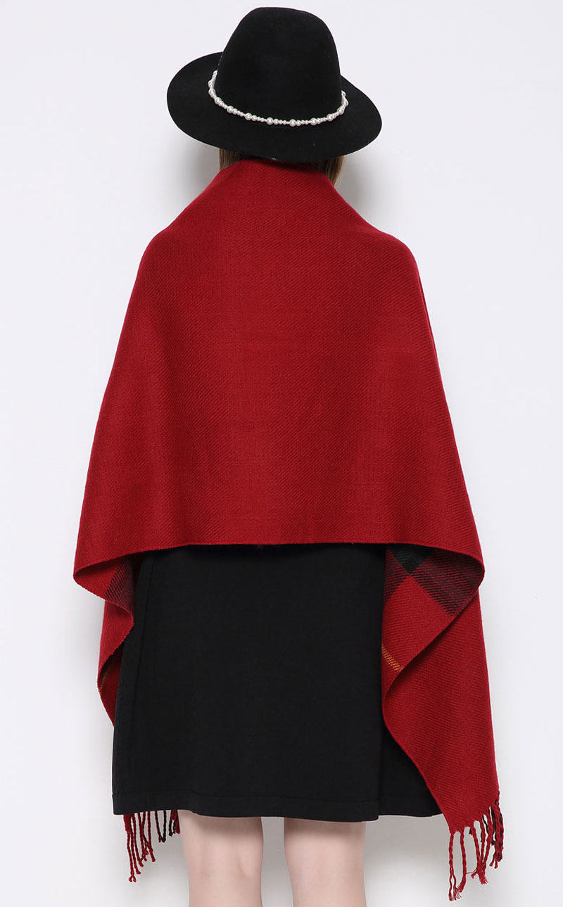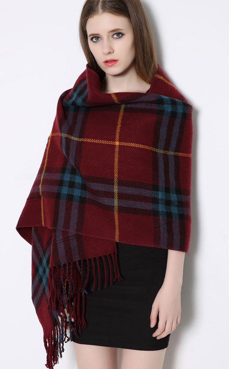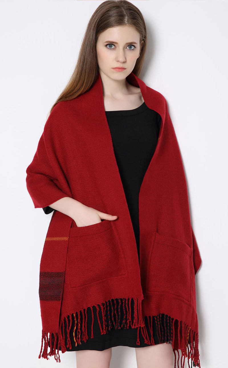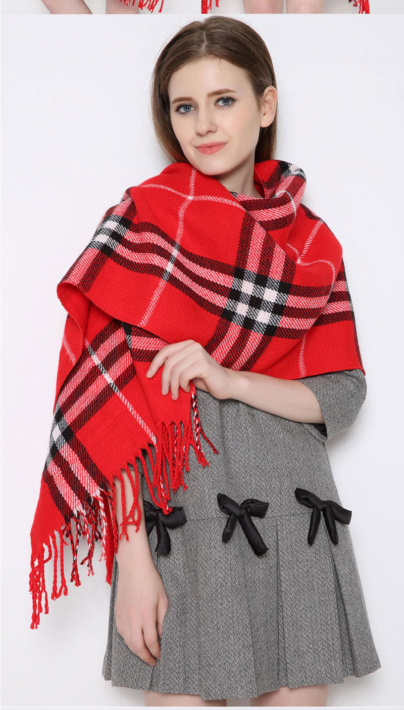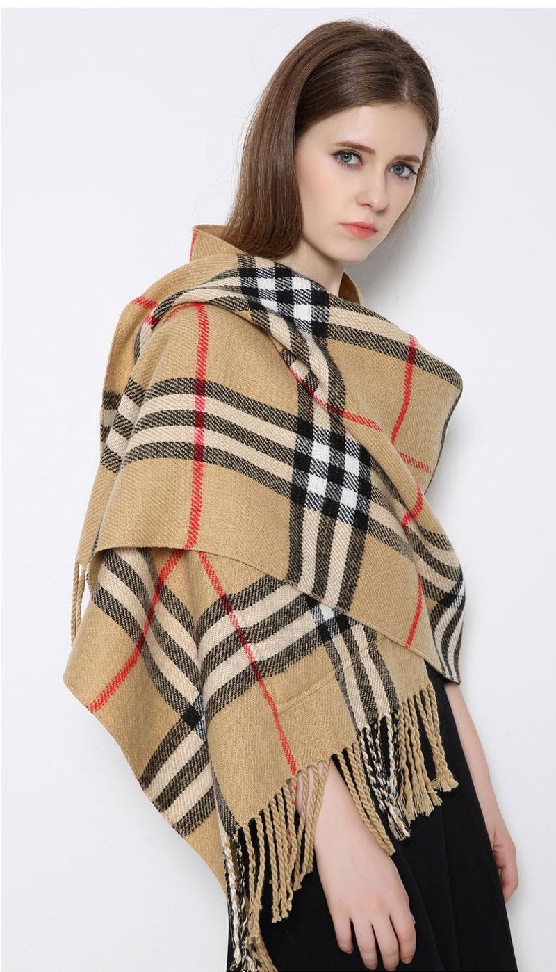The new pocket woolen yarn autumn and winter female scarf shawl plaid cashmere shawl British double-sided thermal custom