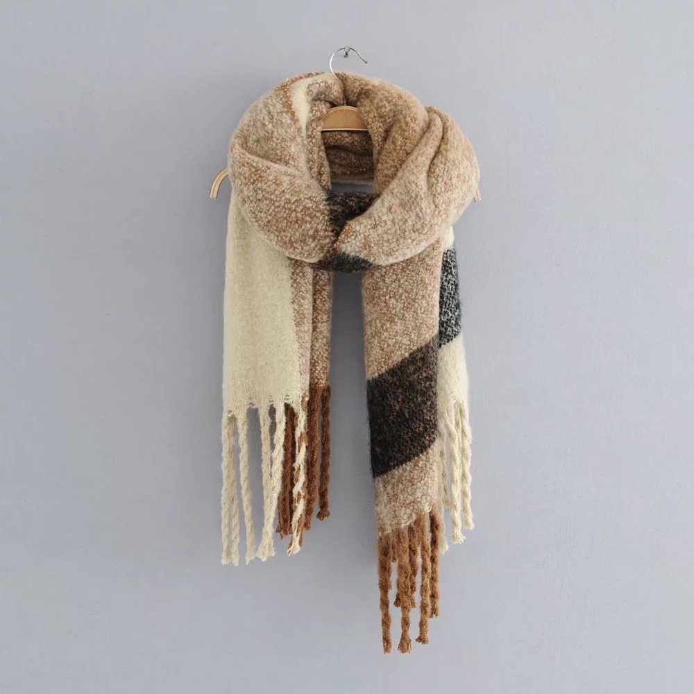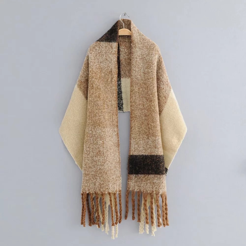 Wind a single camel plaid soft warm comfortable thickening tassel scarf shawl wild female wholesale