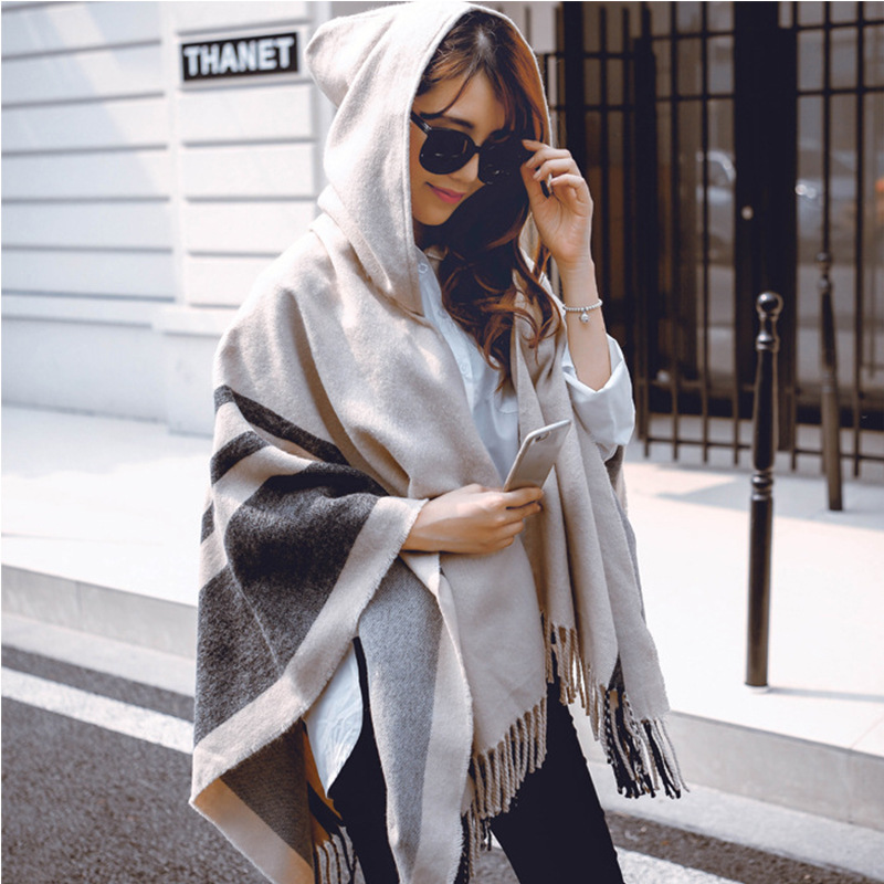Wind new winter scarf women hooded imitation cashmere scarf Cape shawl thicken warm plaid scarf